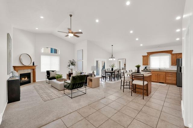 Step into refined, low-maintenance living in this beautifully updated home within a sought-after gated community. Fresh paint and brand-new carpet create a bright, inviting interior, while the open main-floor layout offers both comfort and ease. The spacious kitchen features solid surface countertops, a gas range, ample prep space, and a walk-in pantry, flowing seamlessly into the dining area and welcoming family room with a cozy fireplace. The main-level primary suite provides a private retreat with a soaking tub, separate shower, and large walk-in closet. Upstairs, a dedicated office with built-ins offers the perfect space for work or quiet focus. The fully finished lower level, with its own private entrance, offers excellent potential as a mother-in-law apartment. It expands your living space with a large family room, second fireplace, wet bar with fridge, bonus area, two bedrooms, full bath, and abundant storage. Enjoy outdoor living on the covered patio with gas BBQ hookup, overlooking a private, fenced yard with mature trees. Community amenities include a clubhouse, exercise room, pool, and hot tub-offering a lifestyle of comfort, convenience, and connection. Agent related to seller.