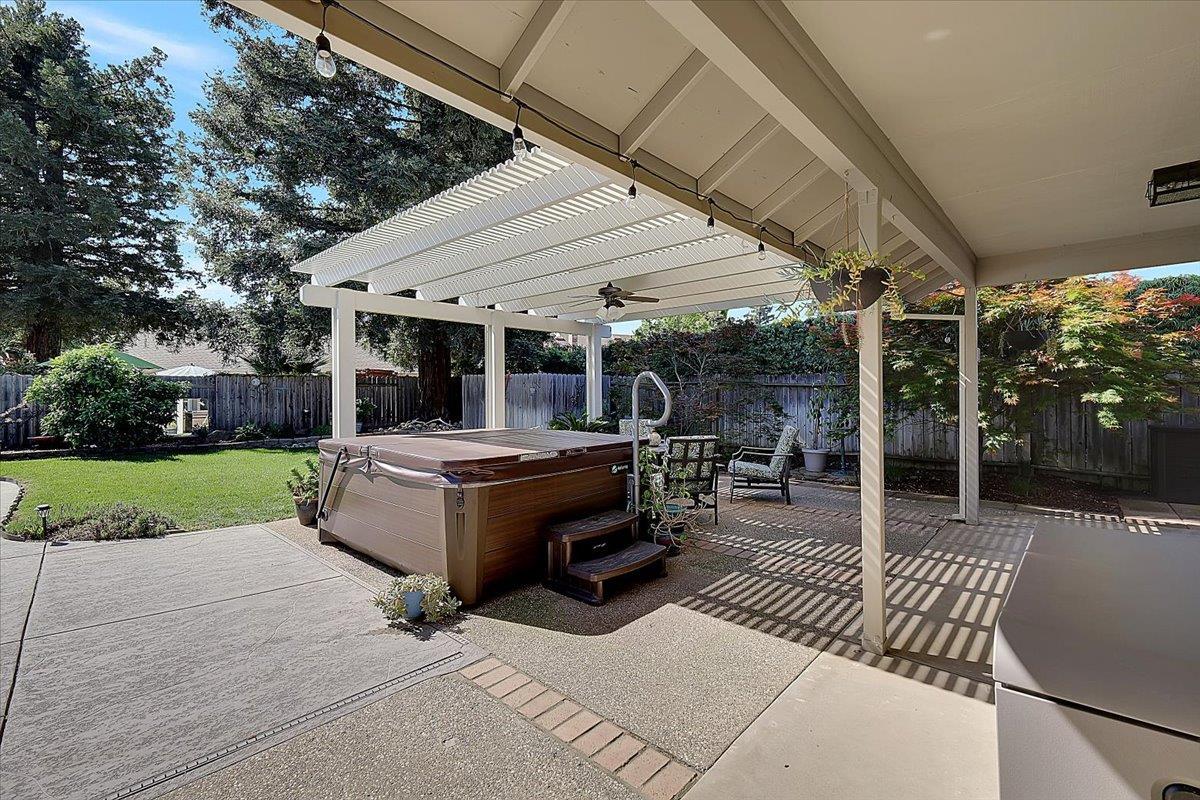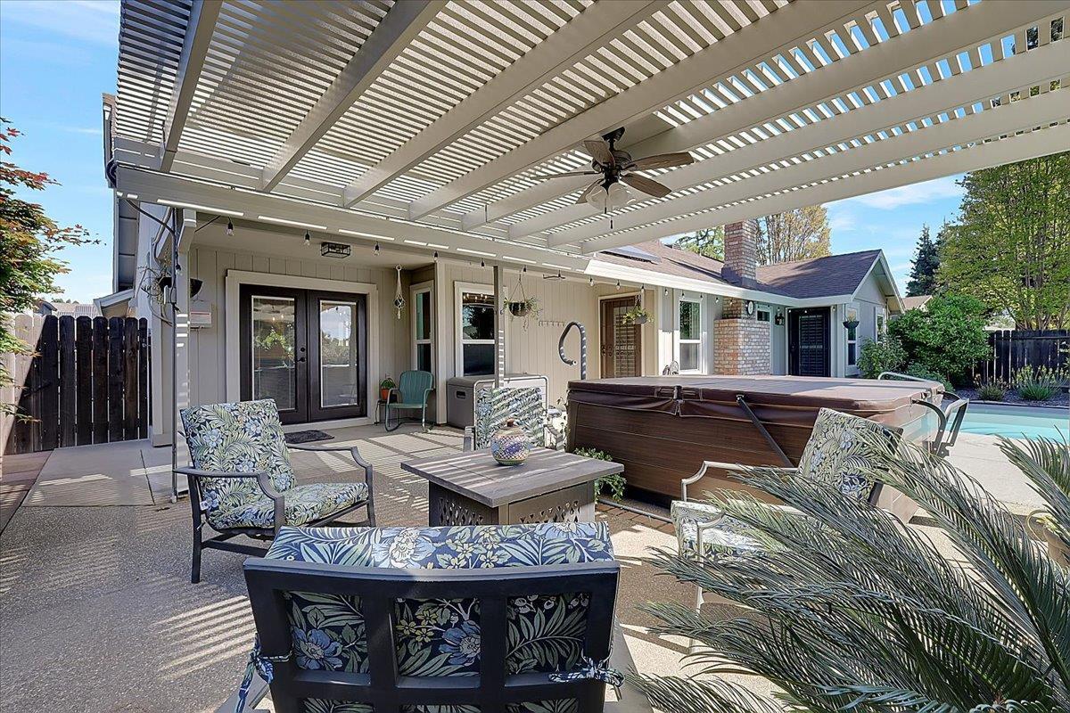 Beautifully maintained and home shows pride of ownership. This inviting home is ideally situated on a desirable corner lot in a quiet cul-de-sac and offers comfort, style, and thoughtful updates throughout. Inside, youll find dual pane vinyl windows, beautiful new ceiling fans, and a cozy fireplace that creates a warm and welcoming living space. The kitchen offers abundant cabinet storage along with updated appliances, making it both functional and appealing. Step outside to your own private retreat featuring a beautifully landscaped yard, covered patio, spa/jacuzzi, and a sparkling pool enhanced with an Energy wise pool pump and system, plus the pool has been recently resurfaced pool. The beautiful private backyard is an entertainers delight featuring mature and beautiful landscaping with a covered spa. Additional features include leased solar and low-flow toilets in the bathrooms for added efficiency. This is a wonderful opportunity to own a lovingly cared-for home with exceptional indoor and outdoor living.