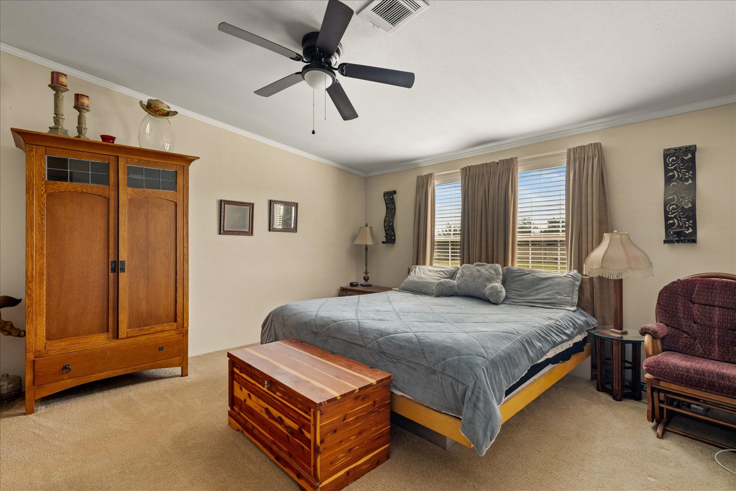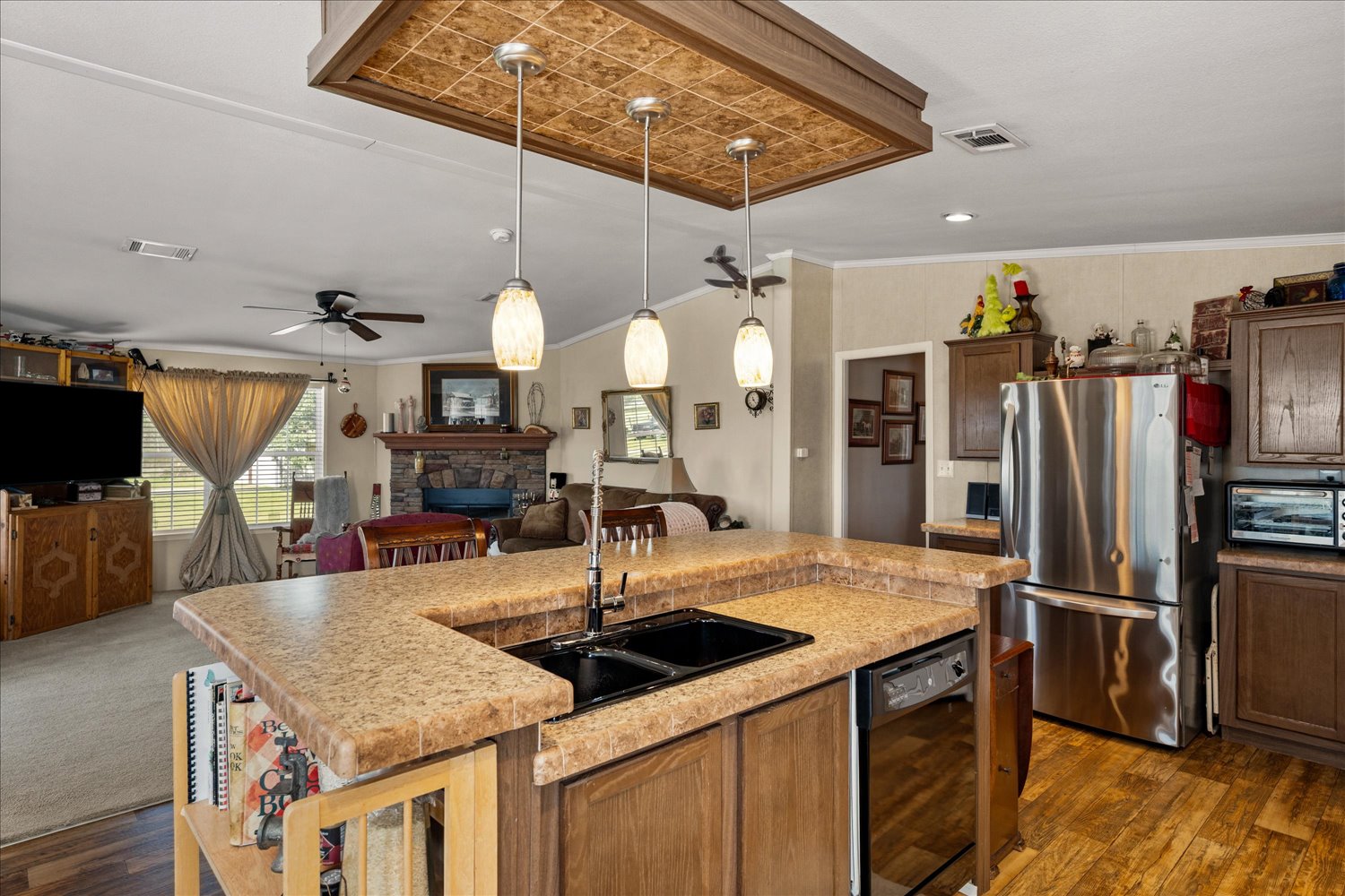 Beautifully maintained and home shows pride of ownership. This inviting home is ideally situated on a desirable corner lot in a quiet cul-de-sac and offers comfort, style, and thoughtful updates throughout. Inside, youll find dual pane vinyl windows, beautiful new ceiling fans, and a cozy fireplace that creates a warm and welcoming living space.