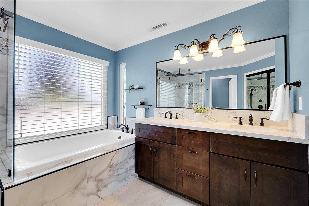 Welcome to this beautifully maintained 5-bedroom home offering space, functionality, and thoughtful upgrades throughout! The main level features hardwood floors, with a MAIN level primary suite complete with a luxurious ensuite bathroom showcasing upgraded tile, a corner soaking tub, oversized shower, and dual walk-in closets.