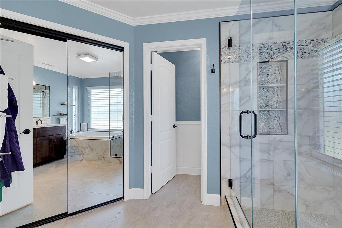 Welcome to this beautifully maintained 5-bedroom home offering space, functionality, and thoughtful upgrades throughout! The main level features hardwood floors, with a MAIN level primary suite complete with a luxurious ensuite bathroom showcasing upgraded tile, a corner soaking tub, oversized shower, and dual walk-in closets. The gourmet kitchen is perfect for both everyday living and entertaining, featuring ample cabinetry, a butlers pantry, and seamless flow into the formal dining room and open-concept living room. Upstairs, youll find three generously sized bedrooms, including a junior suite with its own private bathroom and walk-in closet. Ideal for guests or multi-generational living. The finished basement offers a large, open recreation space, a fifth bedroom with your 4th full bathroom, and a dedicated storage room, providing flexibility for a variety of needs. Enjoy the outdoor living on the composite deck, fenced in yard, and sprinkler system. Pride of ownership shines throughout!