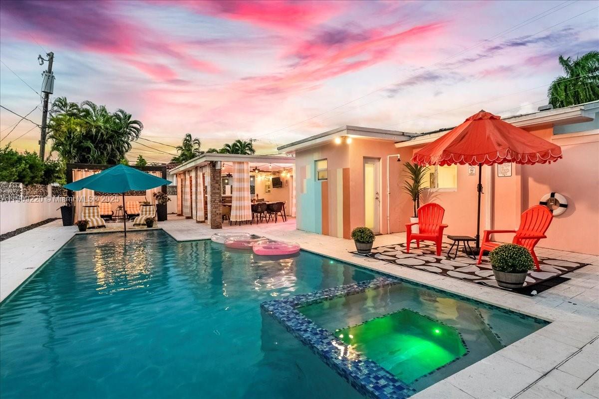 Sophisticated Miami villa perfectly situated minutes from Brickell, Coconut Grove, Coral Gables, and the beaches. This fully furnished and designer-finished home blends modern elegance with resort-style comfort. The open layout flows seamlessly to a private solar heated pool and jacuzzi spa, outdoor kitchen, and lush landscaped terrace ideal for entertaining.