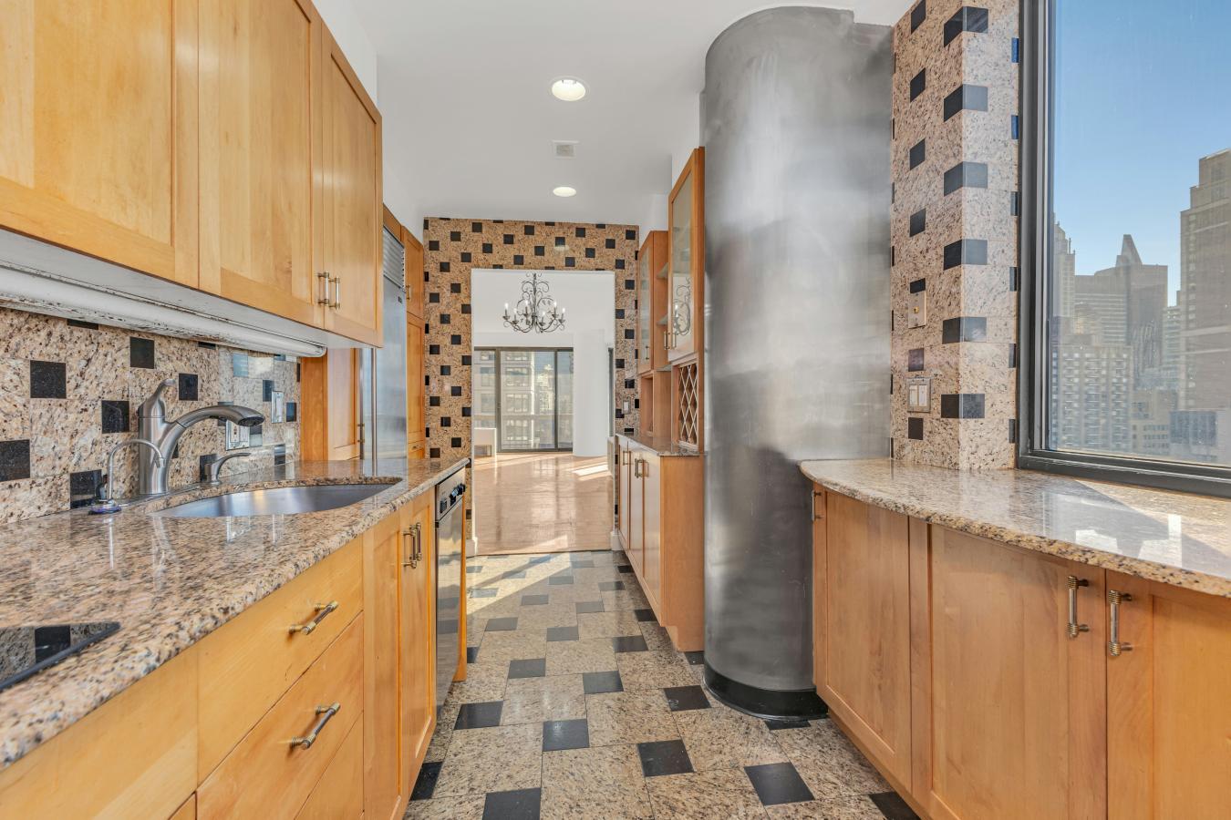 LUXURIOUS CONVERTIBLE 2-BEDROOM WITH TERRACE & PANORAMIC VIEWS! TENANT IN PLACE. Perfect for Investment or 1031 Exchange. Welcome home to this oversized, high-floor corner residence perched on the 31st floor of the prestigious Churchill, offering breathtaking river and skyline views from every room. This exquisitely designed 1-bedroom home with a private terrace is easily convertible to a 2-bedroom or home office. Step into a gracious entry foyer that leads into a massive 34-foot-long living and dining space, bathed in natural light from expansive windows. The dining area seamlessly converts into a second bedroom or office, making this home as versatile as it is beautiful. The modern pass-through windowed kitchen is a showstopper, featuring top-of-the-line stainless steel appliances; Italian Carrera marble countertops, backsplash, and flooring; and custom cabinetry and designer finishes. The king-sized primary bedroom offers room to relax and unwind with plenty of space for additional furnishings. The spa-like bathroom is appointed with custom stone tiles and marble finishes. Additional highlights include a private terrace with dramatic city and river views. Deep closets and custom built-ins and hardwood floors throughout. Designer lighting and a separate bar with a stainless steel wine refrigerator and washer/dryer conveniently located on the floor. The Churchill is a white-glove, full-service building offering an array of premier amenities: 24-hour doorman and concierge. Rooftop pool and two sundecks with panoramic views. Fully equipped fitness center and sauna. Resident lounge, garage, and bike room. Valet/dry cleaning and laundry on every floor. Flexible condo rules: No board approval required. Subletting is allowed since day one. Perfect for end users, investors, co-purchasers, and pied-terre buyers. Pet-friendly (one dog under 30 lbs. allowed). Prime Midtown East location near Grand Central, fine dining, shopping, and everyday conveniences. Monthly assessment of 658 in place through October 31, 2026.