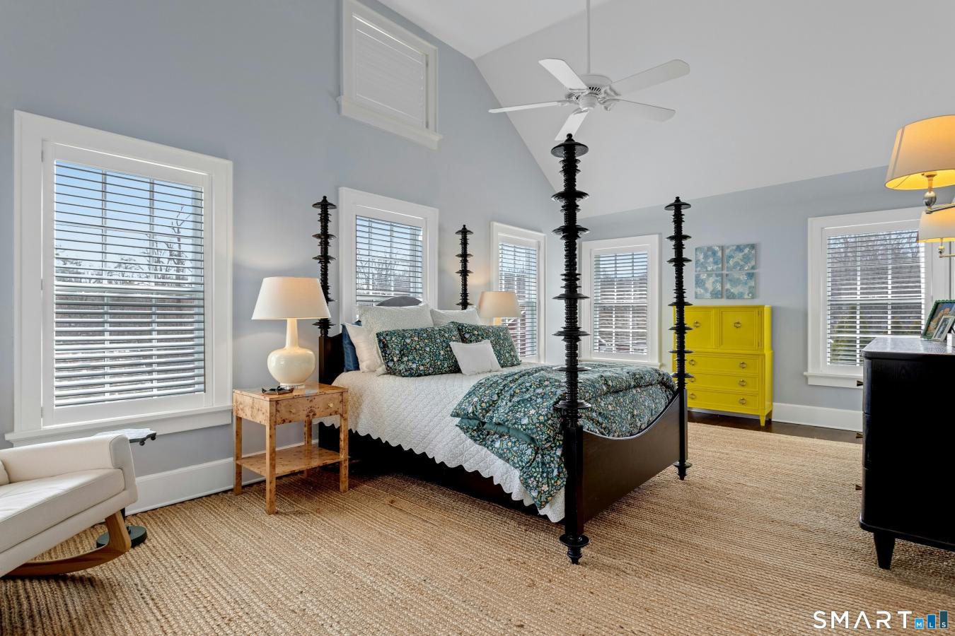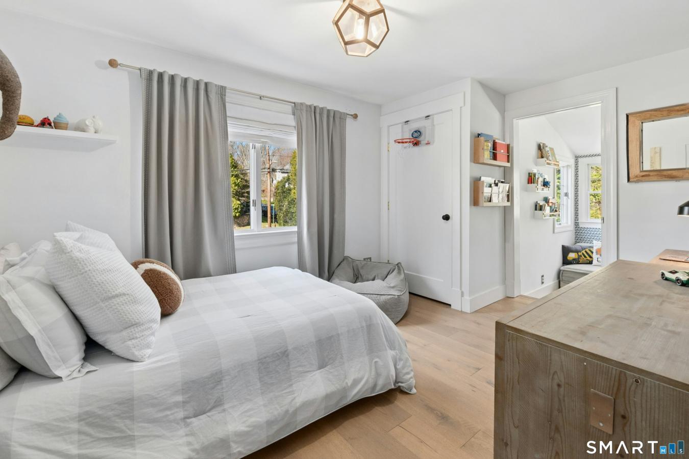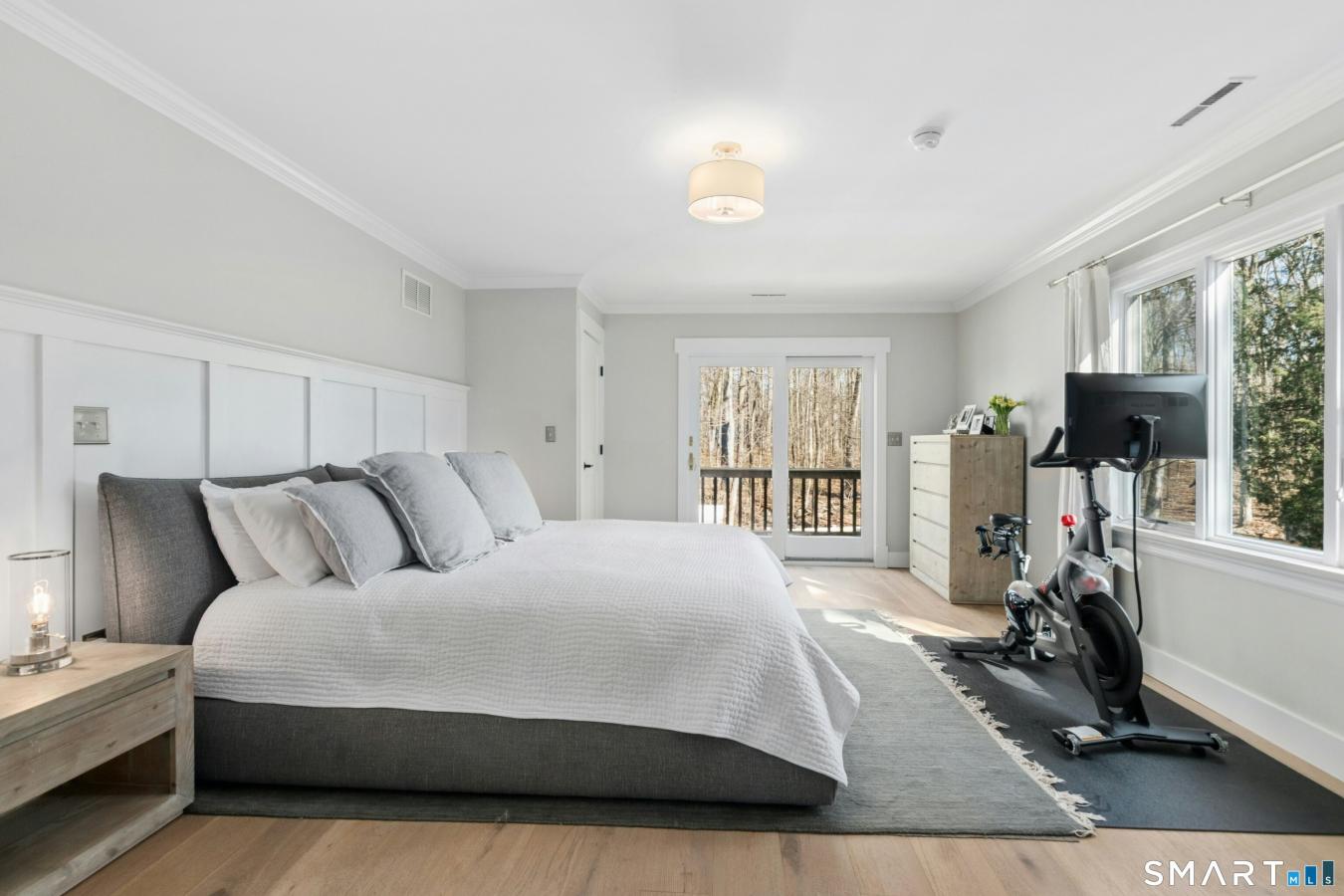 This gem of a home, in a prime Darien location, is ideal for both entertaining and casual living! As the charming entry sweeps you in, you immediately are surprised by the vaulted ceilings in the spacious living room which is centered around a soaring wood burning fireplace, clad in shiplap and marble. The library serves both as a place to read a book or grab a drink while entertaining in the adjoining family room which is flooded with light and made cozy by a gas fireplace. The dining area is spacious enough for large gatherings and opens to the updated and well-equipped kitchen, with adjacent mudroom and laundry area. Upstairs, the primary suite has a spacious dressing area, an updated bath, and a treasured balcony overlooking the property and providing tranquil sunset views. There are three additional bedrooms, an updated, full bath and the most picturesque, interior balcony where you can grab a moment away. Outside the patio is a favorite gathering spot and overlooks the fully fenced yard with plenty of space to play catch or kick a soccer ball. Getting your steps in, playing fetch with your dog, or simply enjoying the peaceful privacy afforded by Woodland Park Nature Preserve adds to the allure of this home. 1-car garage. Walk to schools, restaurants and the train, this fresh and modern cape is one you shouldnt miss.