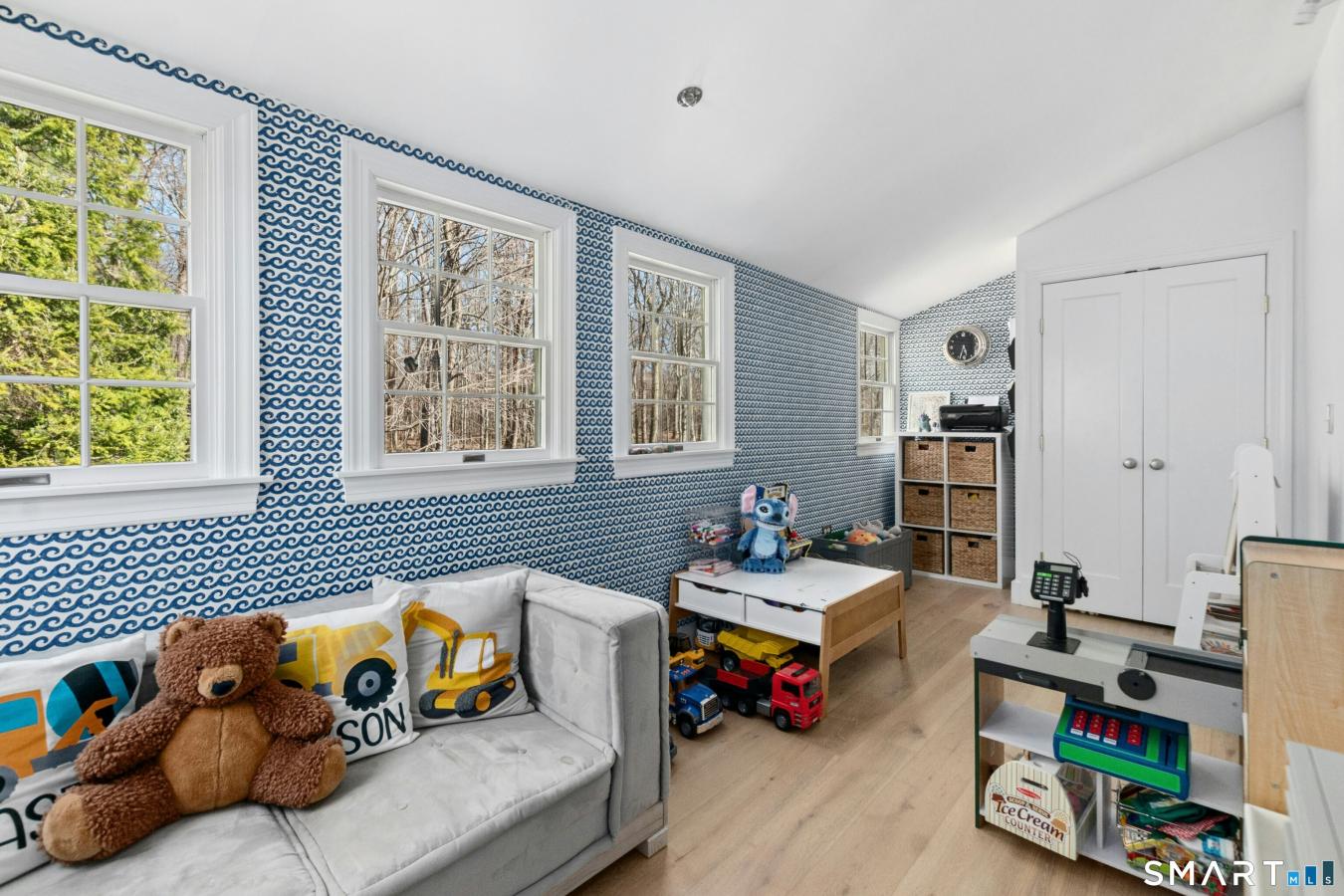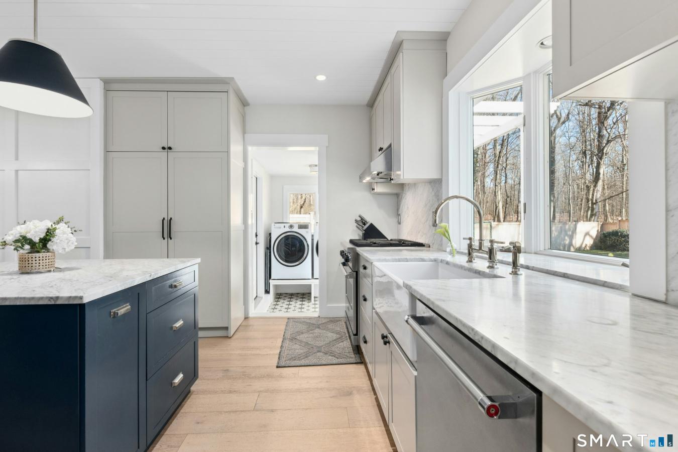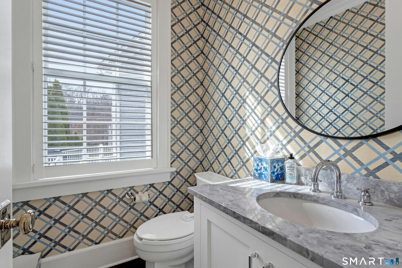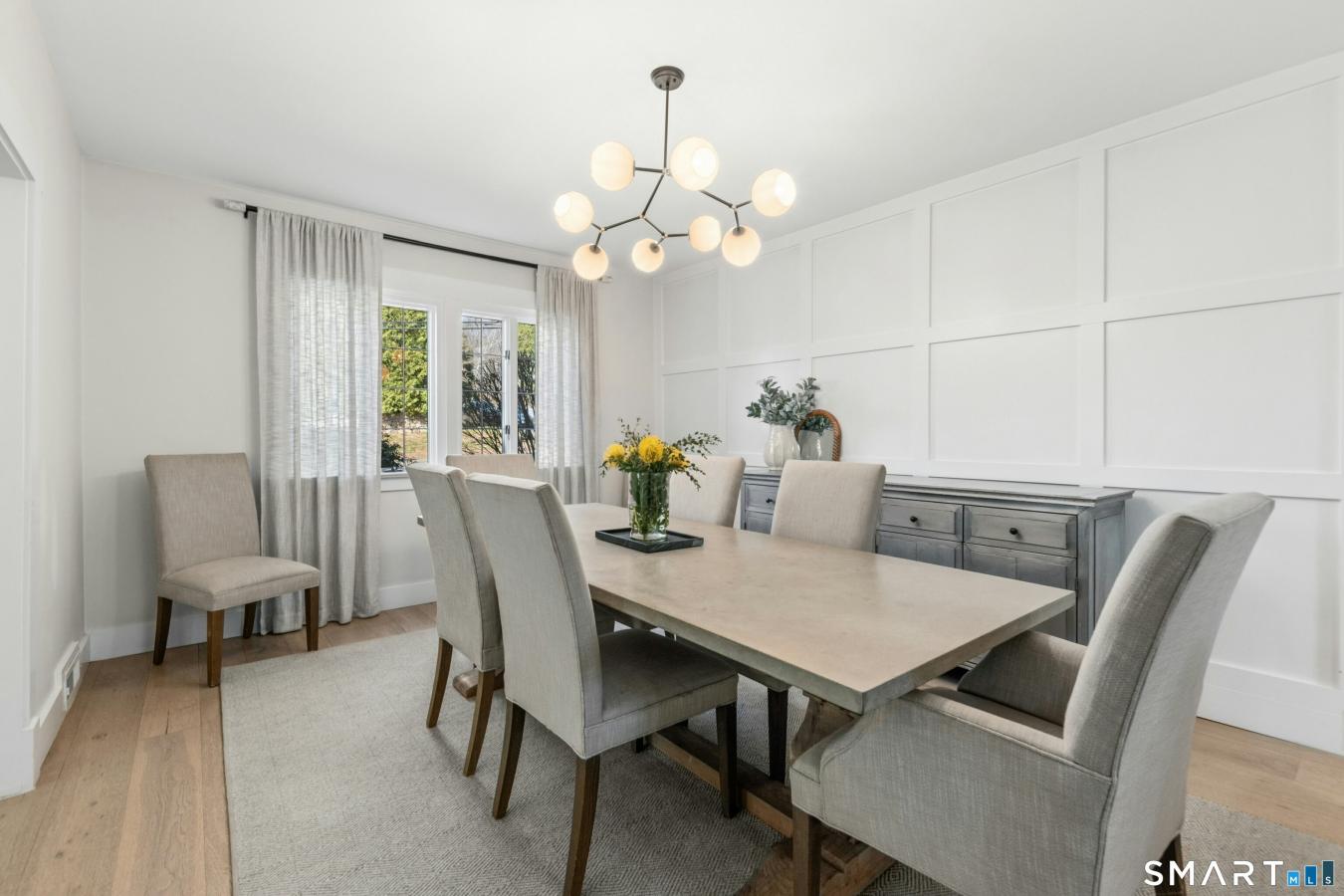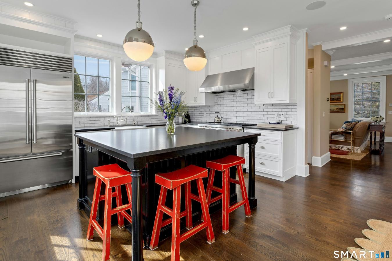 This gem of a home, in a prime Darien location, is ideal for both entertaining and casual living! As the charming entry sweeps you in, you immediately are surprised by the vaulted ceilings in the spacious living room which is centered around a soaring wood burning fireplace, clad in shiplap and marble.