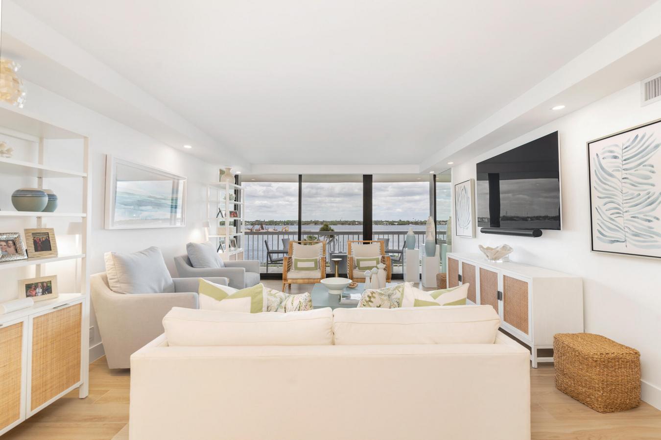 UNOBSTRUCTED Intracoastal and sunset views from living areas and both bedrooms. Enjoy spectacular sunsets and water vessels from inside or from your spacious terrace. This stunning home offers wood-like porcelain floors, custom wallpaper, an open kitchen with a breakfast bar, and virtually brand new Viking appliances, including an induction stove/oven.