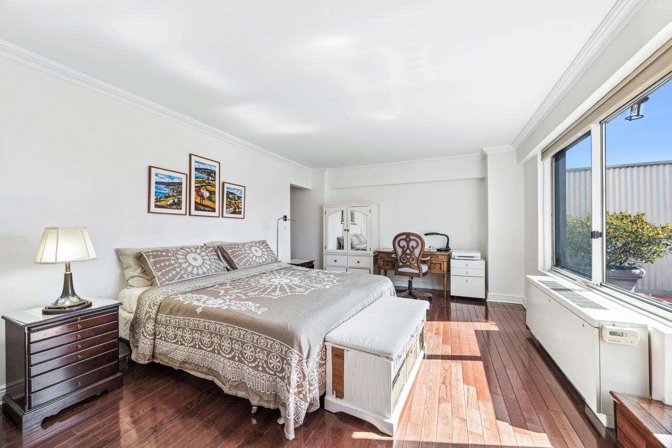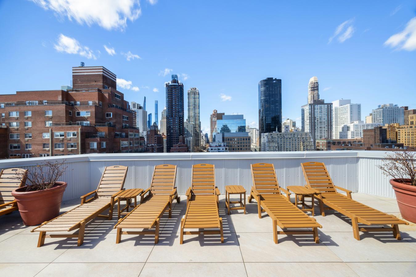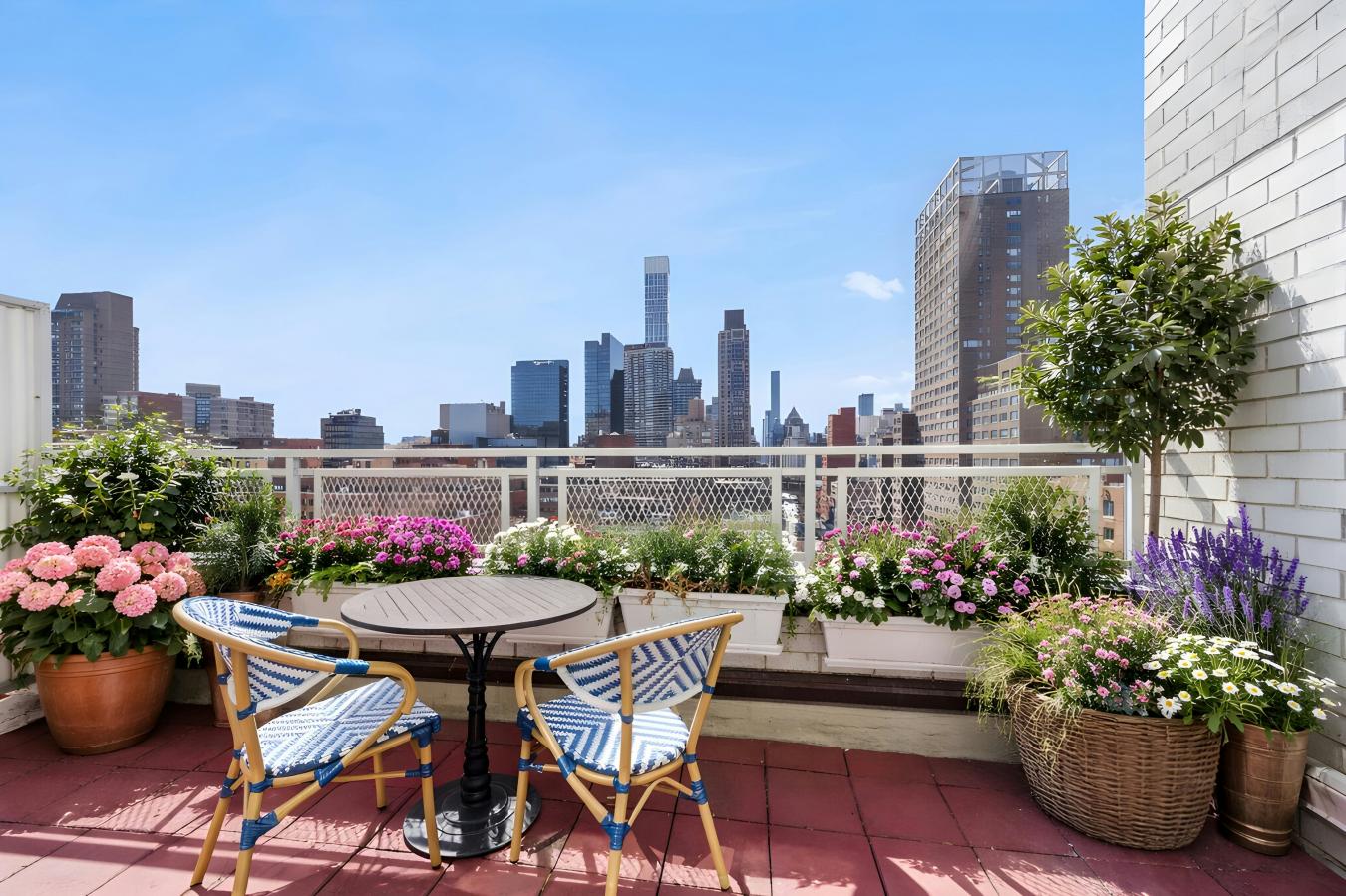 Welcome to this exceptional residence at 401 East 65th Street, a full-service cooperative offering refined living in one of the Upper East Sides most desirable enclaves. A gracious entry foyer with expansive custom closets leads into a sun-drenched, west-facing living room with massive city views and a separate dining area designed for elegant entertaining. The open kitchen is beautifully appointed with custom cherry wood cabinetry, granite countertops, and stainless steel appliances by GE Profile and Bosch, complemented by abundant storage and a large counter allowing for additional seating. The serene primary suite features a wall of south-facing windows, an en suite bath, and a dedicated dressing area with extensive California closets. From here, step onto your private terrace-an extraordinary outdoor oasis offering sweeping southern exposures and open skyline views. A spacious second bedroom enjoys dual exposures to the south and west, along with generous closets. Both bathrooms have been updated and have been kept in pristine condition. Residents enjoy white-glove services, including a 24-hour doorman, live-in superintendent, roof deck, gym, laundry room, and bike storage. The monthly maintenance fee stays low as the co-op receives rent from Gristedes Supermarket. Co-purchasing, gifting, and pied a terres are allowed with board approval as well as pets. Subletting is allowed with board approval after 2 years of ownership for 5 years maximum.