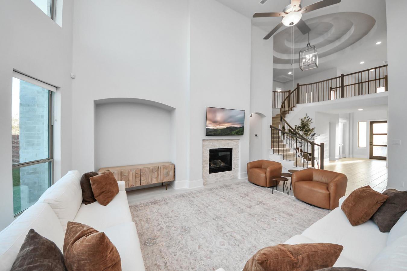 Drees Custom Home, this exceptional 5-bedroom, 4-bath residence offers luxury living with breathtaking views toward Dell Ranch in Senna Hills, one of the most desirable areas near Austin. Situated on a peaceful cul-de-sac, the home enjoys a remarkably quiet setting throughout the day and especially serene evenings and early mornings.