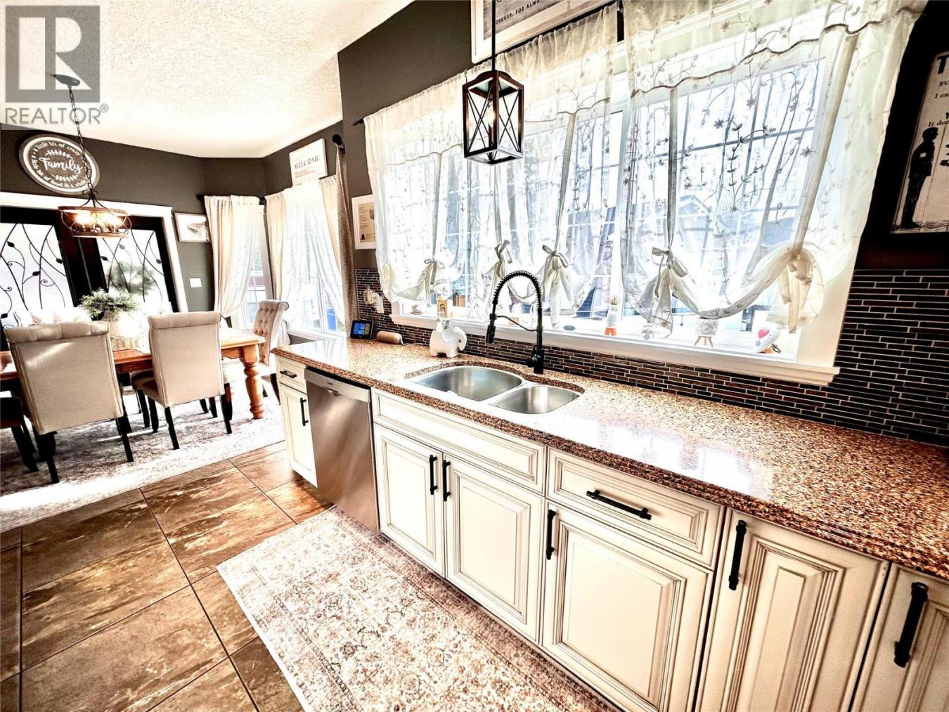 Looking for your dream escape in the mountains? Discover this stunning 8-bedroom home tucked away in the peaceful community of Tumbler Ridge, BC, where natural beauty meets modern comfort. Surrounded by trees and breathtaking mountain views, this upper-bench home offers the perfect blend of luxury and tranquility. Step through the grand entrance into a bright, open living room featuring large curved picture windows and a beautiful gas fireplace, the perfect spot to unwind after a day of adventure. The chef-inspired kitchen boasts granite countertops, abundant cabinetry, and a new gas range, seamlessly connecting to the spacious dining area. From here, walk out to the covered deck ideal for summer barbecues or cozy winter mornings with a coffee in hand or head out to a large second deck to soak in your soothing hot tub. Upstairs features a primary suite designed for pure relaxation, complete with a window seat overlooking the snowy landscape, a walk-in closet, heated floors, a luxurious soaker tub, a walk-in shower, and a double-sided gas fireplace shared between the ensuite and bedroom. Downstairs, the fully finished lower level offers a spacious family room with a cozy wood stove, two more bedrooms, and another full bathroom perfect for guests or a growing family. This property is a dream for anyone who loves their toys, featuring a triple-car attached garage and a double detached garage, both equipped with in-floor boiler heating. (id: 58753)