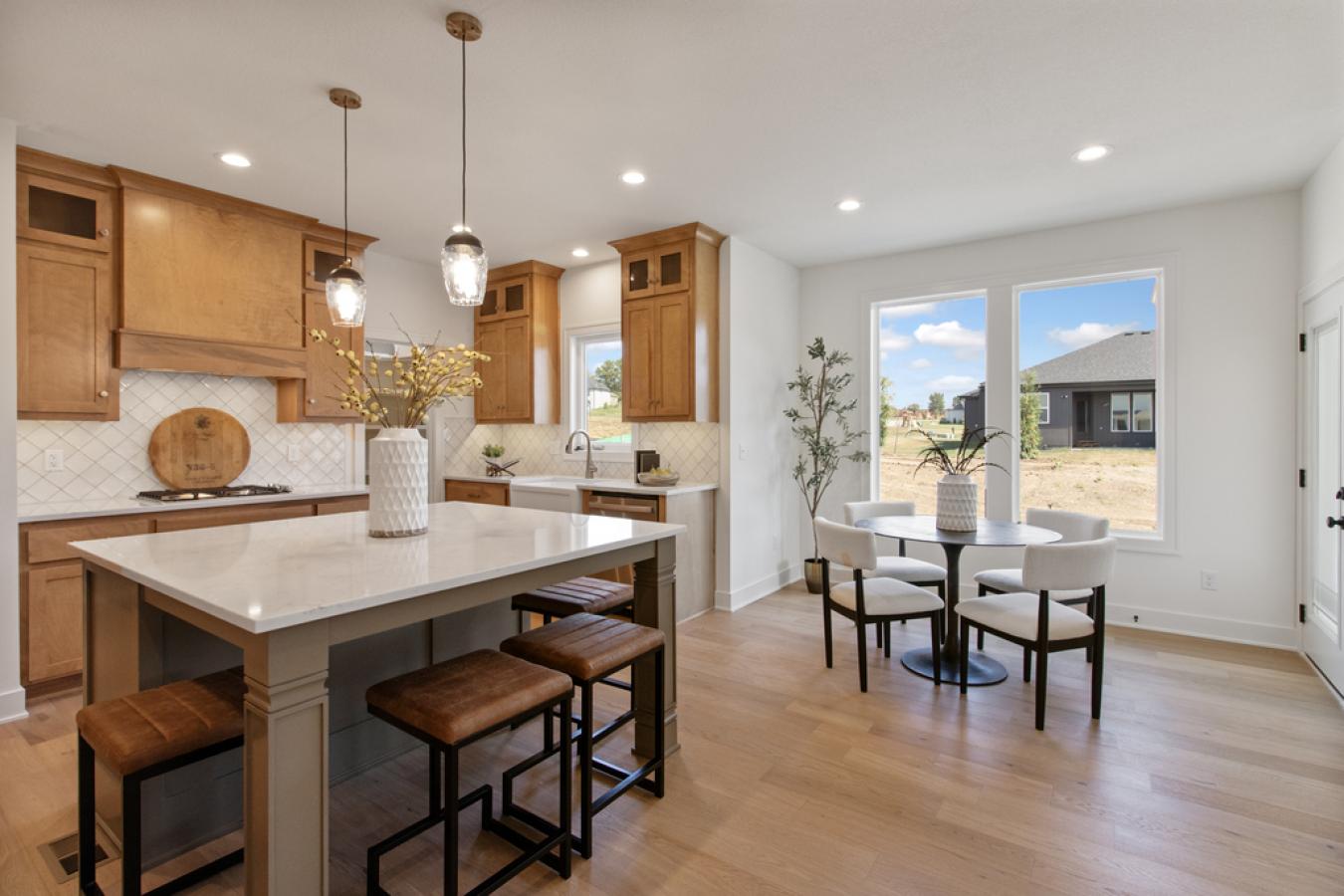 Welcome to the Laurelwood by Titan Custom Homes. This beautiful 2-story home offers a functional layout designed for modern living. The main level features a welcoming foyer, a formal dining room that could easily serve as a home office or playroom, and a stunning kitchen with quartz countertops, a large island, walk-in pantry, and a bright breakfast room that walks out to the covered patio.