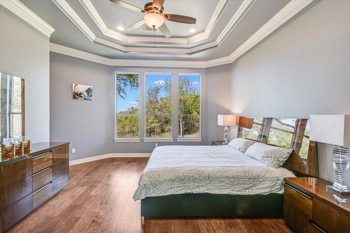 Drees Custom Home, this exceptional 5-bedroom, 4-bath residence offers luxury living with breathtaking views toward Dell Ranch in Senna Hills, one of the most desirable areas near Austin. Situated on a peaceful cul-de-sac, the home enjoys a remarkably quiet setting throughout the day and especially serene evenings and early mornings. Massive windows and soaring ceilings fill the open floor plan with natural light. The thoughtfully designed layout includes a main-floor primary suite and main-floor guest bedroom, ideal for comfort and convenience. The expansive living spaces feature high ceilings with beautiful natural acoustics, making the home particularly enjoyable for piano or music. Upstairs, a large open game and entertainment area provides an ideal gathering space for family activities, sports viewing, and entertaining, all complemented by elevated views. A long, versatile media room offers endless possibilities and can easily accommodate multiple lifestyle spaces such as a home theater, yoga or wellness area, office, or massage retreat. Additional highlights include piped propane service for added convenience, elegant architectural design, and generous living spaces throughout. Located just minutes from premier shopping and dining at Hill Country Galleria and close to the boutiques and restaurants of Westlake Hills, the property also offers easy access to downtown Austin. Zoned to the highly acclaimed Eanes Independent School District, consistently ranked among the top school districts in Texas. All appliances are conveyed, including W/D & 2 refrigerators.