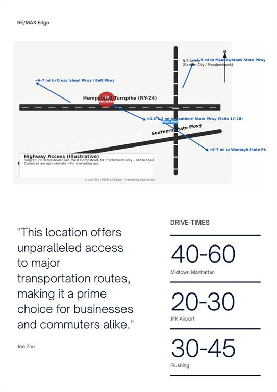 Exceptional opportunity to acquire a high-visibility commercial asset in the heart of West Hempstead. This approximately 9,204 SF building sits on a prime corridor along Hempstead Turnpike, offering strong traffic exposure and excellent accessibility.