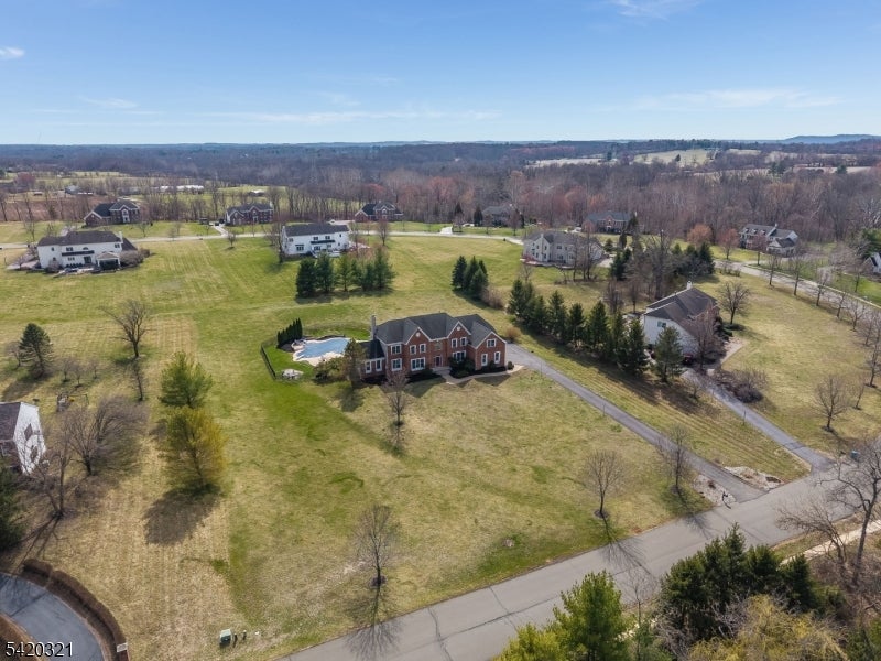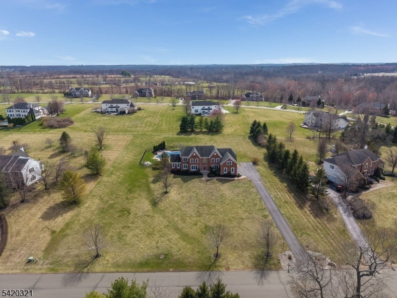 Impressively situated amid the rolling hills of Hopewell Valley, this stately home reflects a perfect balance of elegance and comfort. Soaring ceilings, abundant natural light, and a floorplan designed for effortless flow. Spectacular kitchen with stainless steel high-end appliances, island seating, and a generous breakfast area opening to a cozy sunroom. Entertaining is a breeze with an expansive patio surrounding a gunite pool & hot tub, enhanced by cool deck heat-reflective coating. Owned solar panels provide a respite from electric bills; owners report most months they have no electric bill at all, even with two EV chargers. First floor bonus rooms include a private home office and conservatory/game room. Formal powder room near the foyer. Convenient laundry/mud room with second powder room. Upstairs, the large master suite is a combined bedroom and relaxing informal sitting room, with a large walk-in closet. Its ensuite bathroom features two separate vanity areas, a corner jacuzzi tub, and a Japanese commode. Four additional bedrooms serviced by two Jack & Jill bathrooms. Immense walk-out basement is ready for finishing. Enjoy the advantages of a prestigious enclave of homes, High Pointe at Hopewell community in Pennington. Spectacular location overlooking beautiful open space: a nature trail maintained by Friends of Hopewell Valley is directly across the street.