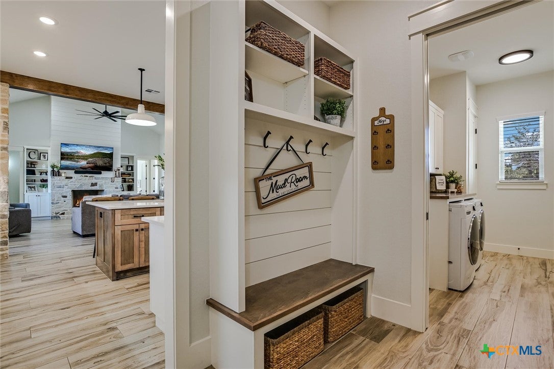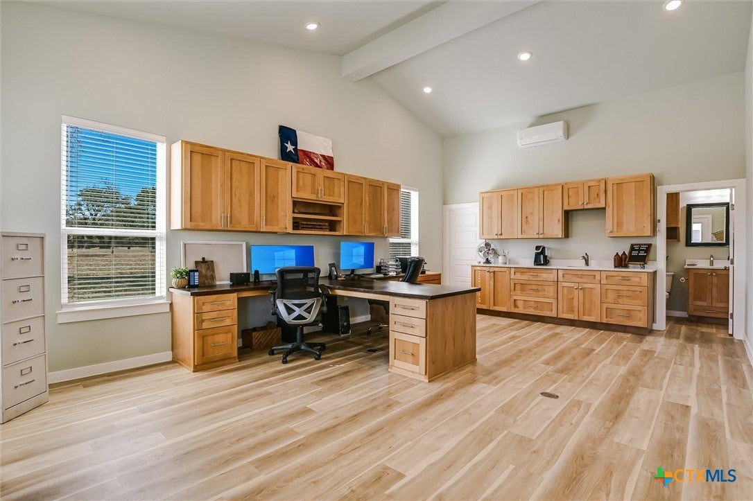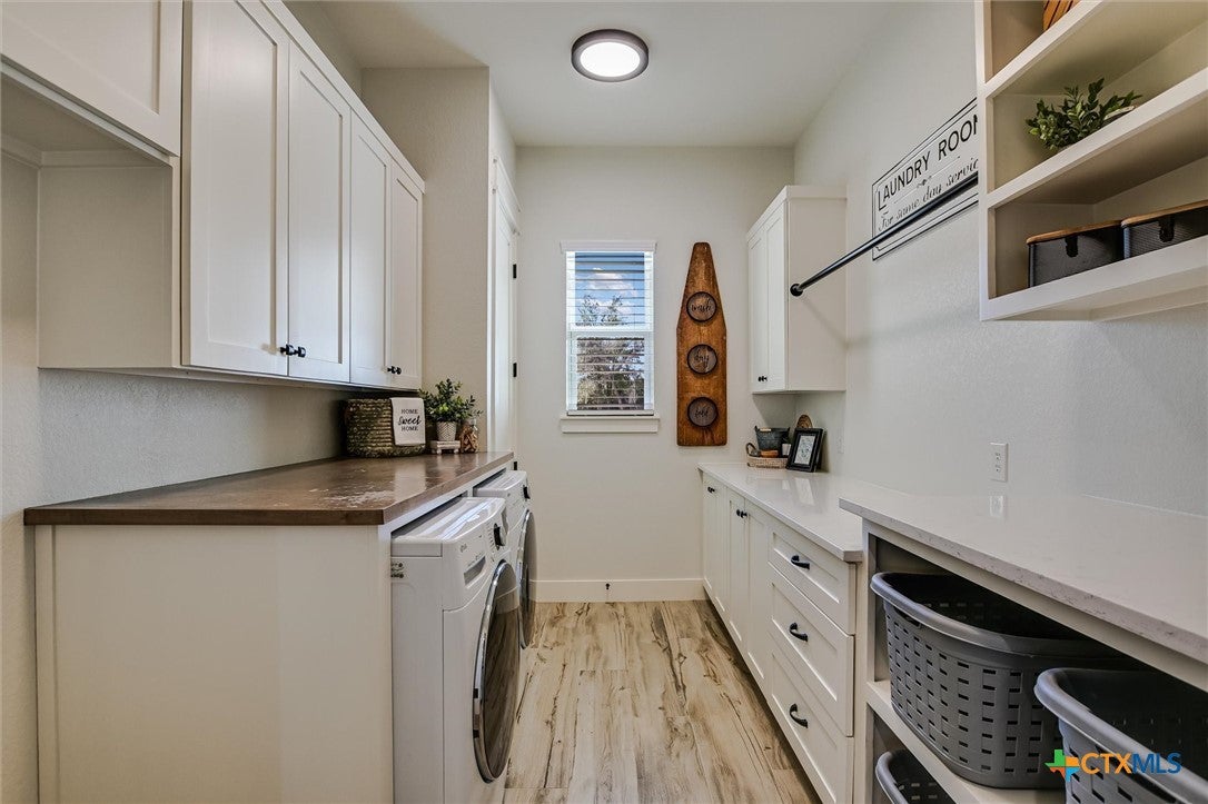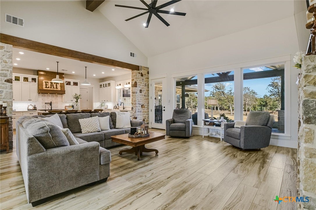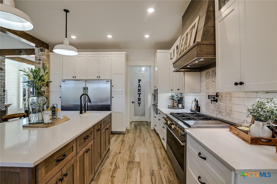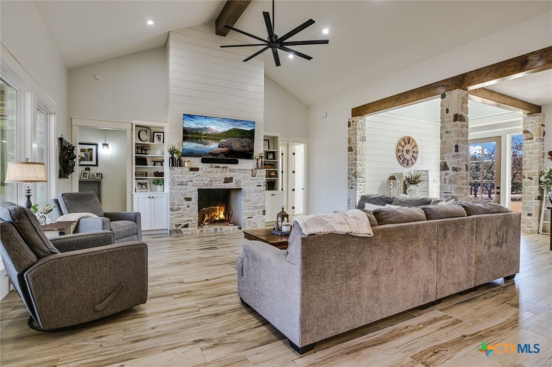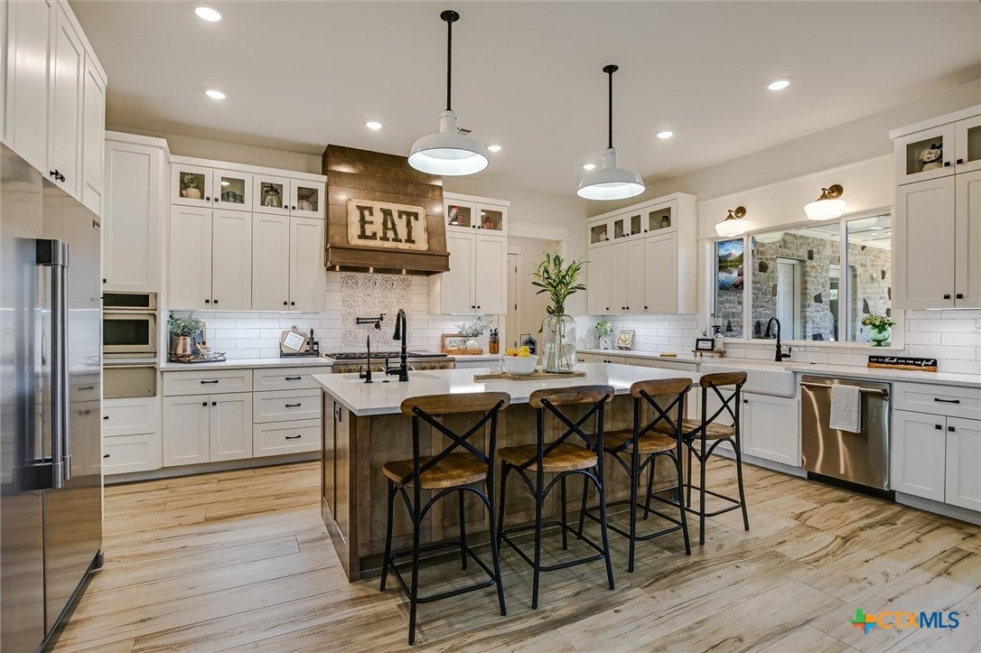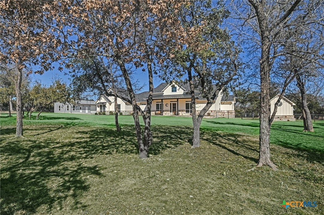 Modern Acreage Living with Luxury Shop & Flex Space - Designed for both everyday comfort and long-term flexibility, this custom 4-bedroom, 4.5-bath home sits on 2.67 acres with no HOAoffering the freedom todays buyers are searching for. The thoughtfully designed floor plan includes two private suites plus two additional bedrooms connected by a Jack-and-Jill bath, creating an ideal setup for multi-generational living, guests, or growing families. The primary suite is spacious and refined, featuring dual vanities, separate his-and-her closets, and an oversized walk-in shower. Natural light fills the open-concept living area, highlighting beautiful stone accents and seamless flow between kitchen, dining, and family room. The kitchen was designed for serious functionality and entertaining alikecomplete with a large quartz island, walk-in pantry, butlers pantry with ice maker, floor-to-ceiling cabinetry, and abundant prep space. A dedicated media/game room with full bath and walk-in closet offers flexibility as a fifth bedroom, private guest suite, or secondary living area. Step outside to a true year-round outdoor retreat featuring a propane fireplace, built-in griddle, sink, and bar seatingperfect for hosting or unwinding after a long day. What truly elevates this property is the 1,035 sq. ft. climate-controlled workshop with dual electric roll-up doors, sink, and heat & air. Attached is a 465 sq. ft. office with full bath and walk-in closetideal for a home-based business, studio apartment, fitness room, or private workspace. RV hookups, additional covered parking, and full utility connections add even more versatility. Located just minutes from the newly extended 183A Toll and Highway 29, with Target, Costco, and expanding retail nearby, this property offers the rare combination of space, function, and convenience within Liberty Hill ISD. A nearly-new custom home with this level of flexibility, acreage, and location is increasingly hard to find.