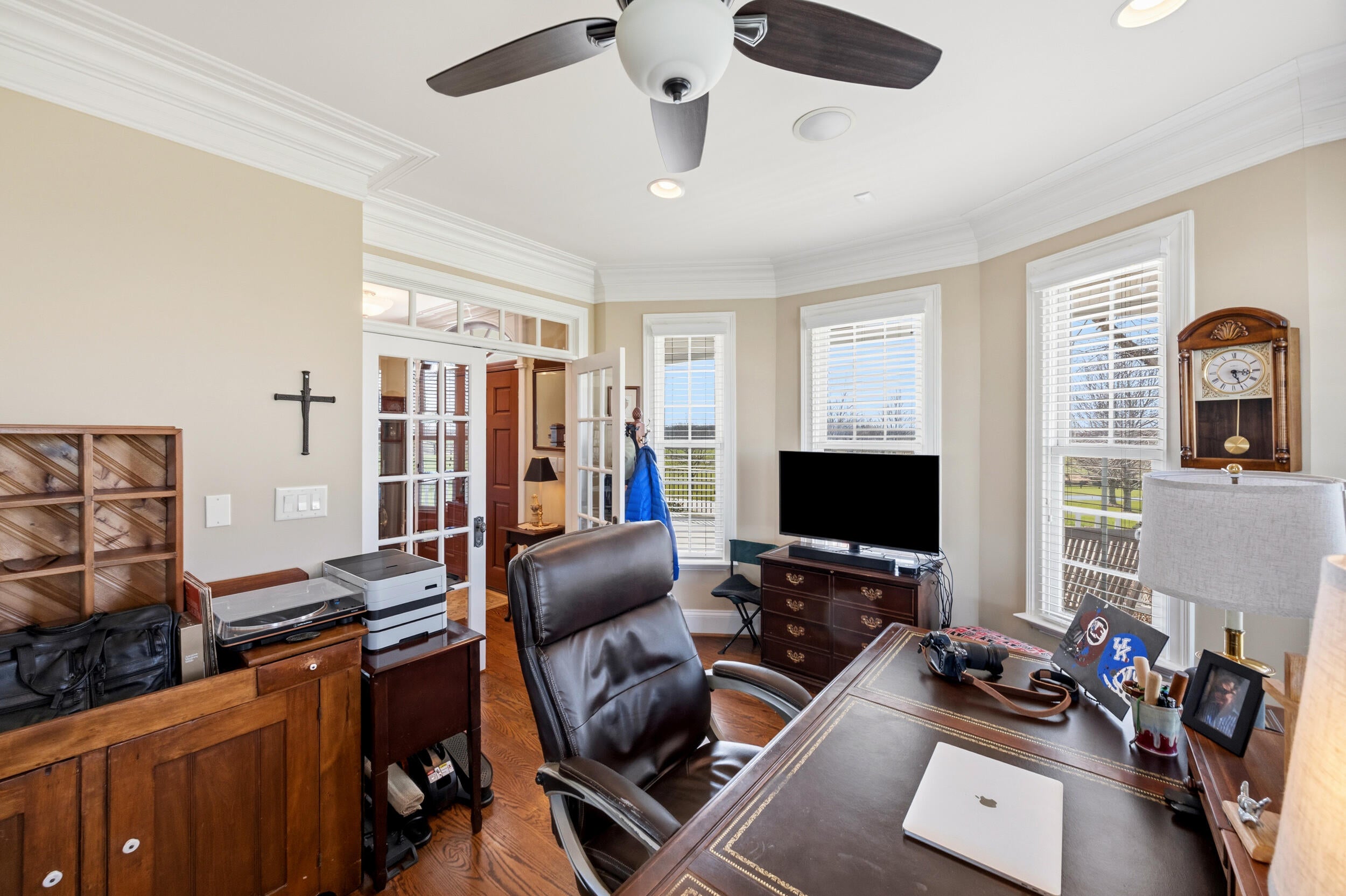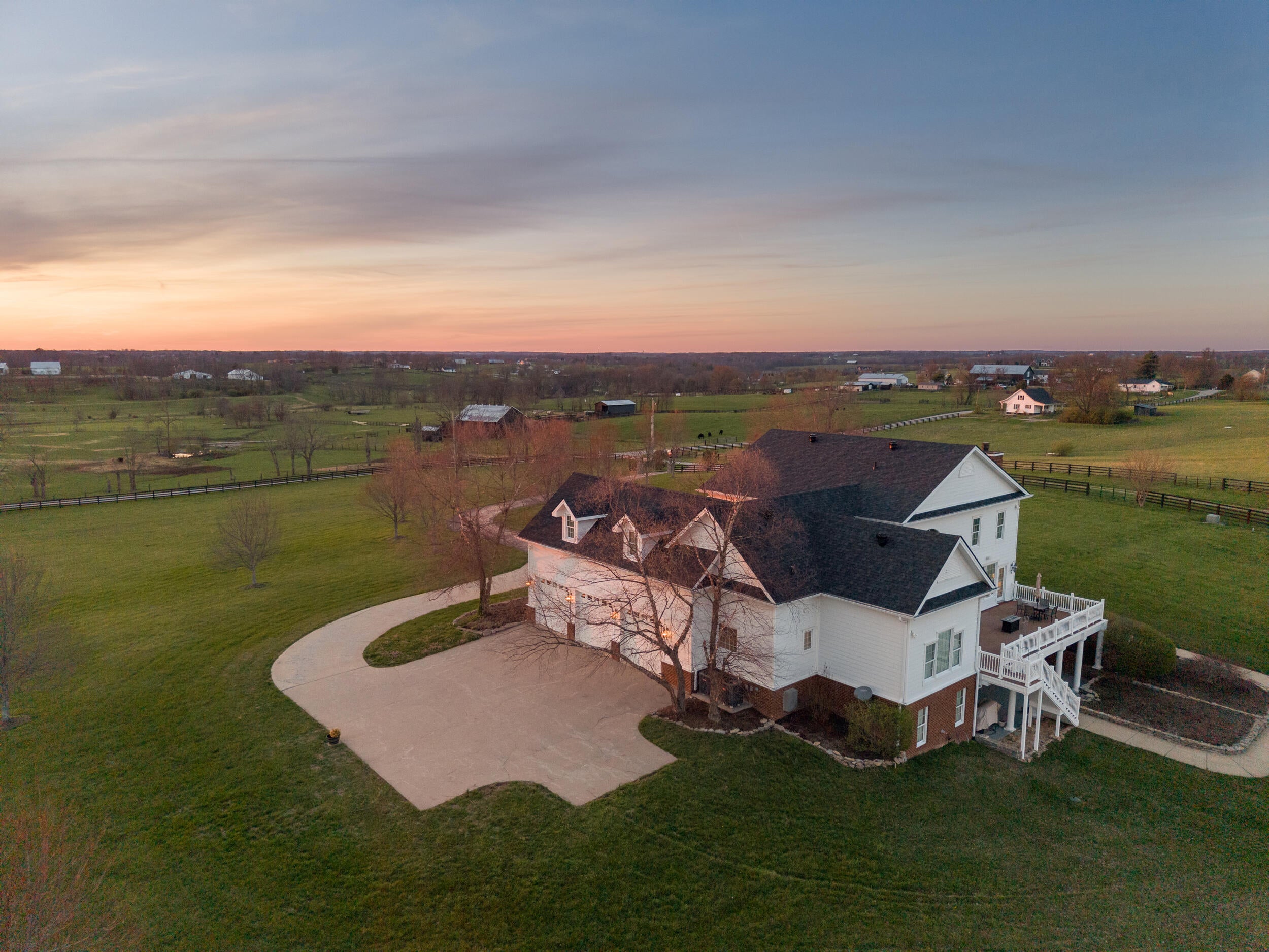 Inspired by timeless Southern architecture and designed from the renowned Palmetto plan by William Poole Designs of Wilmington, North Carolina, this remarkable Georgetown estate blends classic elegance with the peaceful beauty of Kentuckys countryside. Situated on 11.02 scenic acres, the property welcomes you with a long approach and stunning views of rolling farmland before revealing the homes stately double front porches and classic Antebellum design. From the moment you arrive, the welcoming arms brick staircase introduces the homes architecture and setting, creating a sense of quiet sophistication rarely found so close to Lexington and Georgetown. Inside, more than 4,100 square feet of thoughtfully designed living space offers a balance of gracious entertaining areas and comfortable everyday living. A dramatic entry foyer with soaring ceilings and a sweeping staircase immediately sets the tone, while rich hardwood floors, detailed millwork, cased openings, and thoughtfully placed pocket doors add depth, character, and a sense of timeless craftsmanship throughout the main level. The spacious great room features built-in cabinetry and a fireplace, opening beautifully into the heart of the home. The kitchen offers elegant cabinetry, granite countertops, a large center island, double ovens, gas range, and generous eat-in dining space, all designed to make gathering effortless. Large windows frame views of the surrounding countryside and allow natural light to fill the home. The first-floor primary suite provides a private retreat complete with an ensuite bath featuring a soaking tub, separate shower, and walk-in closets. Additional rooms on the main level include a formal dining room ideal for hosting and a dedicated home office overlooking the property. Upstairs, additional bedrooms and baths provide comfortable accommodations for family or guests, while the homes layout ensures both privacy and connection throughout. Outdoor living is just as impressive. Expansive porches and a large rear deck provide the perfect vantage point for enjoying peaceful mornings, sunset views, and the wide-open landscape that surrounds the property. The home also includes over 2,000 square feet of unfinished walk-out basement space, offering endless potential for additional living areas, recreation space, or custom finishes tailored to your needs. Additional highlights include: 4 bedrooms 3 full baths and 2 half baths 3-car garage Hardwood flooring throughout main living areas Zoned heating and cooling Covered porches and outdoor entertaining spaces Private rural setting with sweeping countryside views Located on lovely Craig Lane, just minutes from Georgetown, Lexington, the Kentucky Horse Park, and Keeneland, this property offers the rare opportunity to enjoy the tranquility of country living while remaining convenient to everything Central Kentucky has to offer. Whether relaxing on the porch overlooking the land or entertaining friends and family inside, 208 Craig Lane captures the essence of Kentucky estate living. *Some images may include enhanced or edited elements, including twilight sky enhancements, for marketing purposes.*