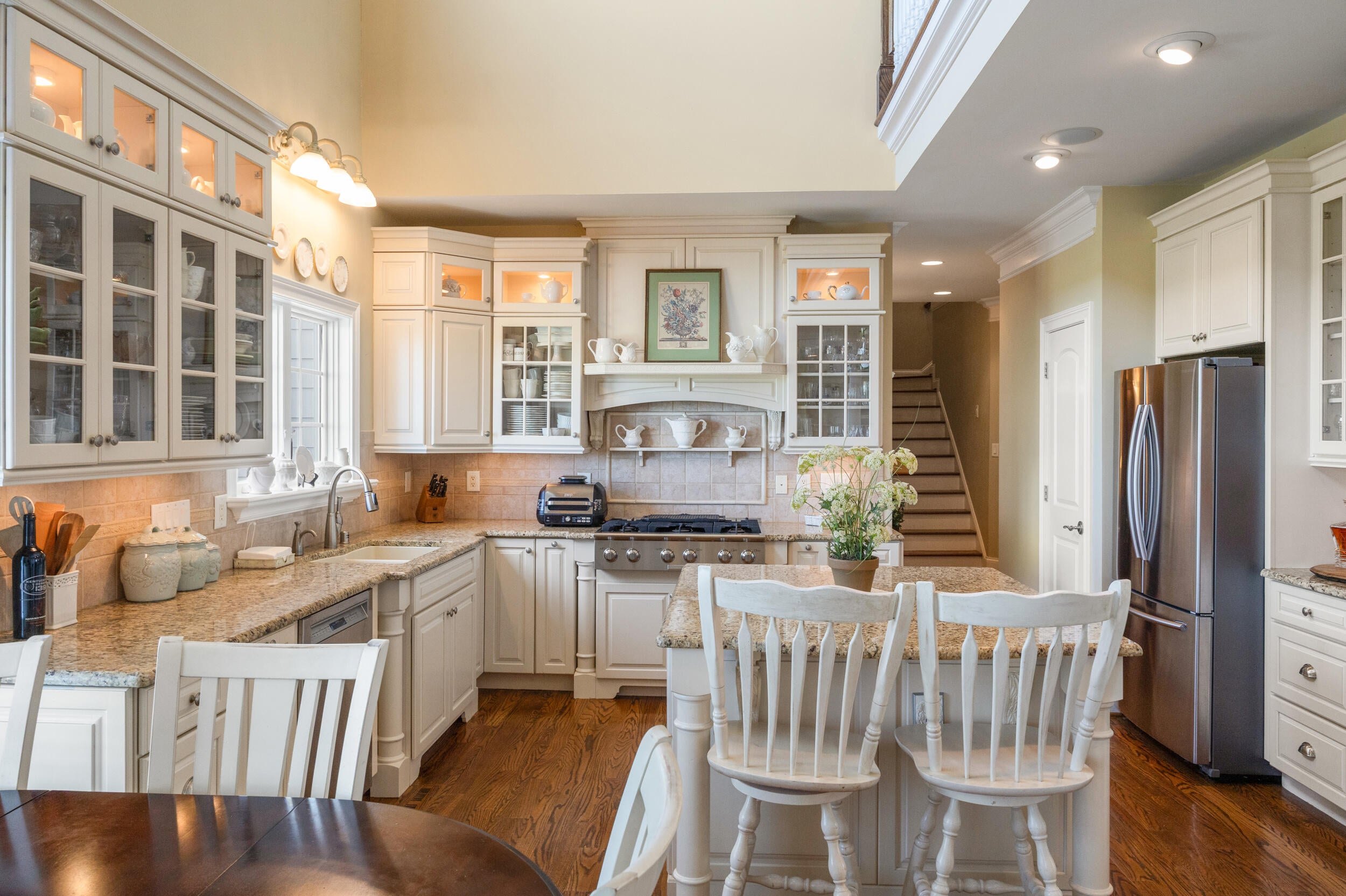 Impressively situated amid the rolling hills of Hopewell Valley, this stately home reflects a perfect balance of elegance and comfort. Soaring ceilings, abundant natural light, and a floorplan designed for effortless flow. Spectacular kitchen with stainless steel high-end appliances, island seating, and a generous breakfast area opening to a cozy sunroom.