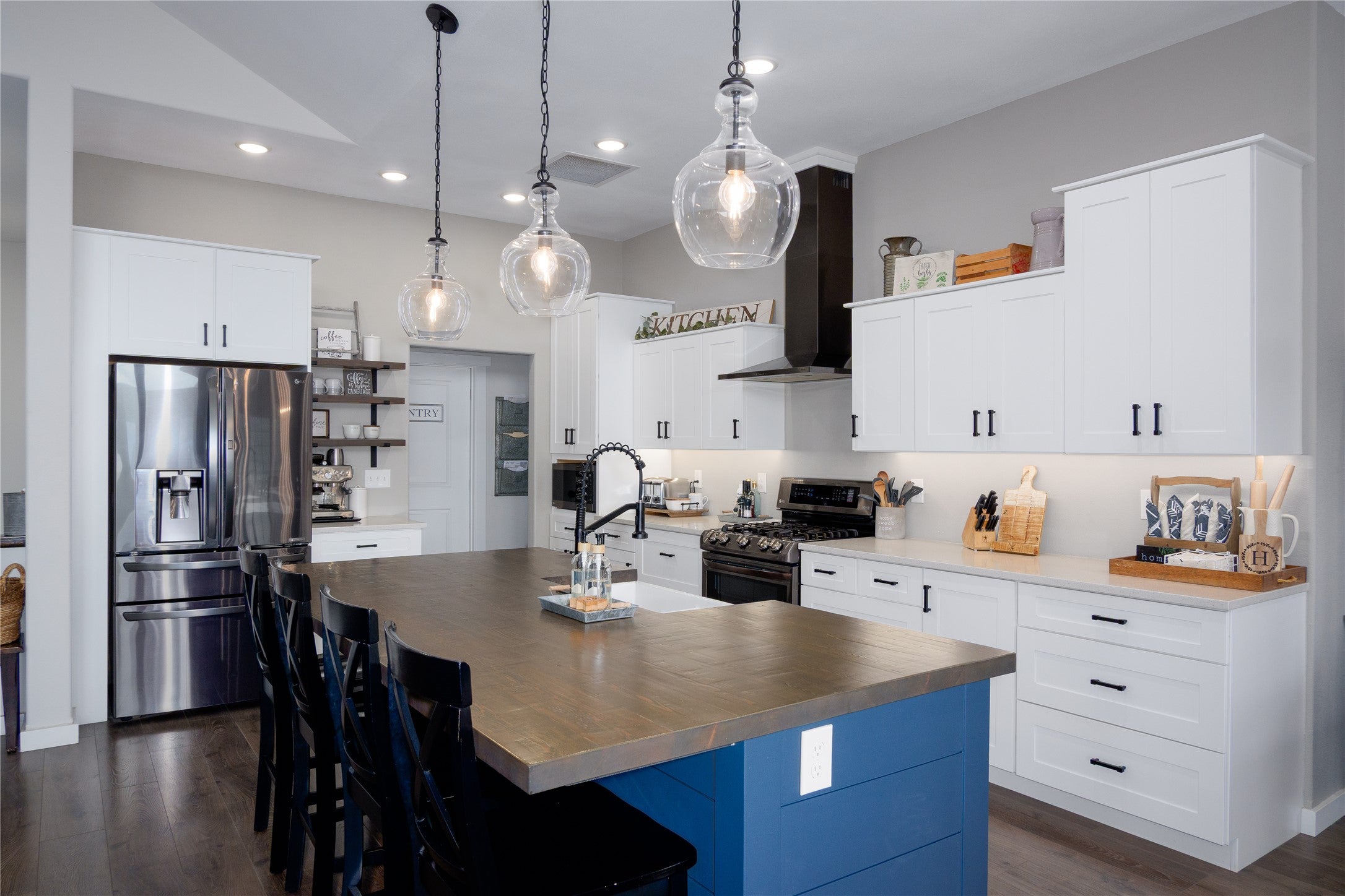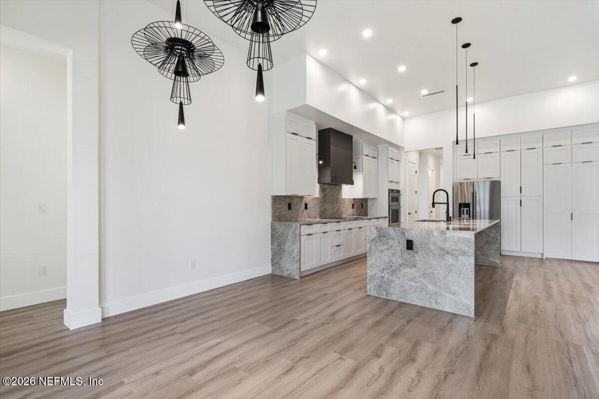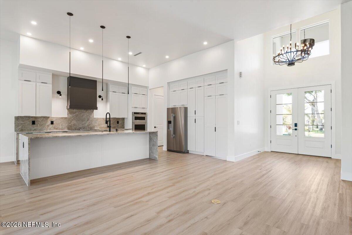 Simply elevated in design and highlighted by soaring 12-16 ft ceilings, this luxury NEW CONSTRUCTION HOME on an expansive lot showcases exceptional craftsmanship, sophisticated finishes, and a seamless blend of elegance and comfort. At the center of the home is a stunning gourmet kitchen showcasing style and function. The private butlers pantry adds additional workspace and storage.