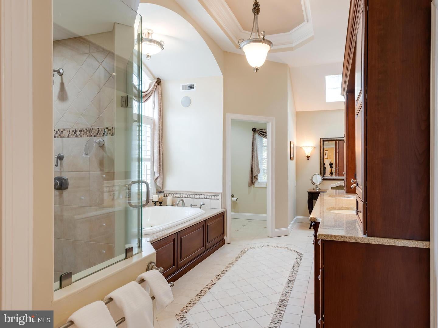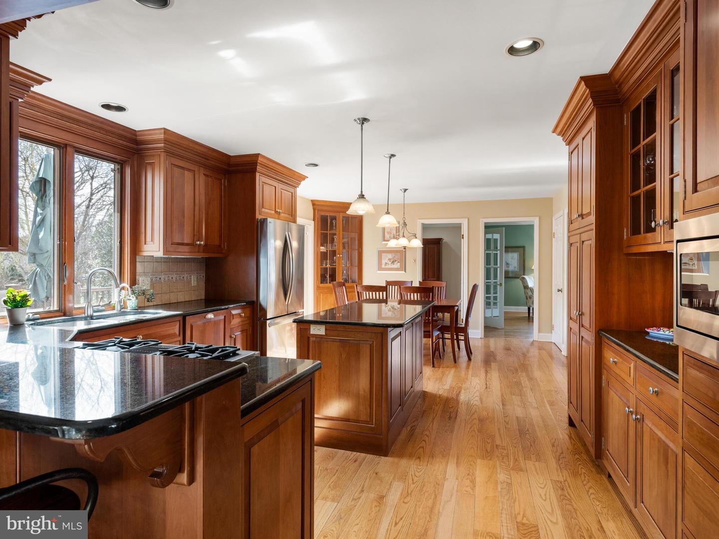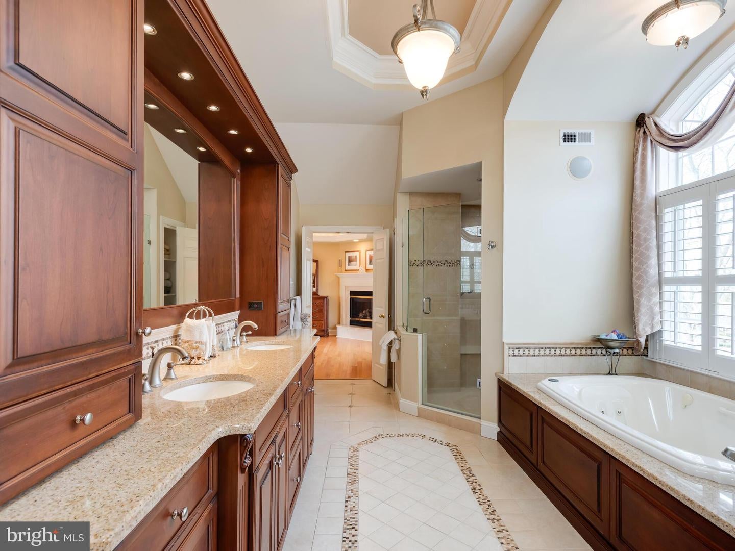 Welcome to this exceptional, fully renovated luxury retreat where refined design meets resort-style living on a private, beautifully landscaped .57-acre property. Stunning 45 bedroom, 4.5 bath residence offering approximately 4,700 sq ft of beautifully updated living space, complete with a heated saltwater in-ground pool and spa. This home has undergone a complete transformation, including an 850 sq ft second-level expansion featuring four bedrooms, three full baths, and a convenient laundry room. The expansive primary suite is a true retreat, complete with a separate sitting area/nursery/office, a gas fireplace, and an elegant lighted tray ceiling. The luxurious en-suite bath offers dual walk-in closets, a Jacuzzi tub, walk-in shower, and skylight & large window for natural light. All three upstairs bathrooms feature Programmable Radiant Heat Flooring. The remodeled kitchen and family room showcase custom cherry wood cabinetry, granite countertops, and high-end appliances, including a JennAir dual-fuel range (2020) and LG refrigerator (2022). The inviting family room is anchored by a classic wood-burning fireplace with a brick surround and features French doors that open to the private rear retreat. The fully finished walk-out basement is ideal for entertaining or extended living, featuring a kitchenette, walk-in wine cellar, full bath, spacious entertainment area, and a private guest suite with cedar closet. Step outside to your own backyard oasis, highlighted by a 17,000-gallon heated saltwater pool (16x35) with spa, natural gas heating, and an Electric Retractable Cover for safety and convenience. Multiple outdoor deck areas are surrounded by mature landscaping for exceptional privacy. The upper-level Ironwood deck is renowned for its durability and splinter-resistant qualities. Additional features include hardwood flooring throughout main living areas, a decorative front entry door with sidelights and covered portico, programmable in-ground sprinkler system, and two-zone forced air natural gas heating (systems replaced one in 2018 the other in 2021). A new 50-gallon natural gas water heater was installed in 2023. This exceptional property combines luxury, comfort, and privacyperfect for both everyday living and entertaining.See complete list of upgrades/improvements in documents