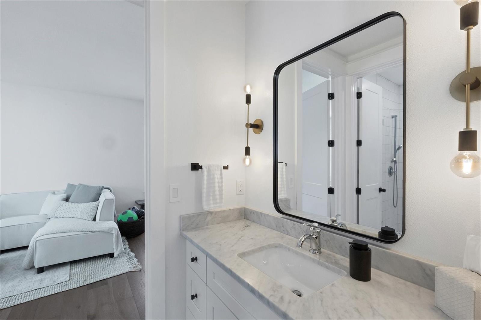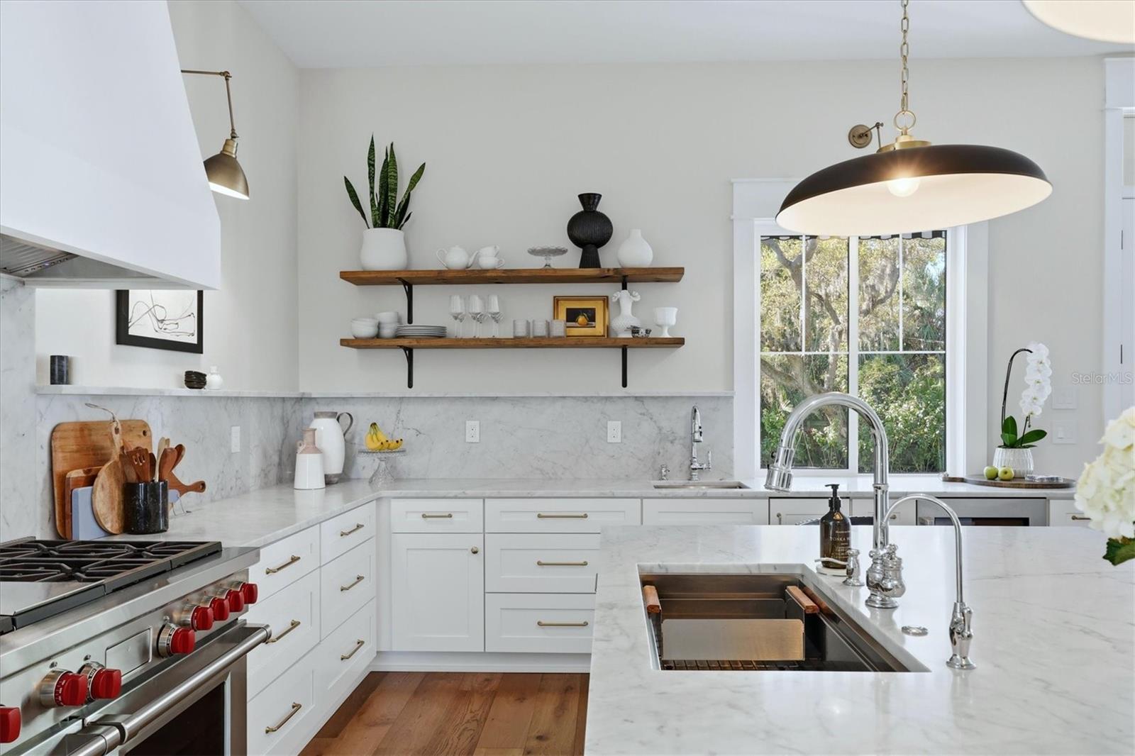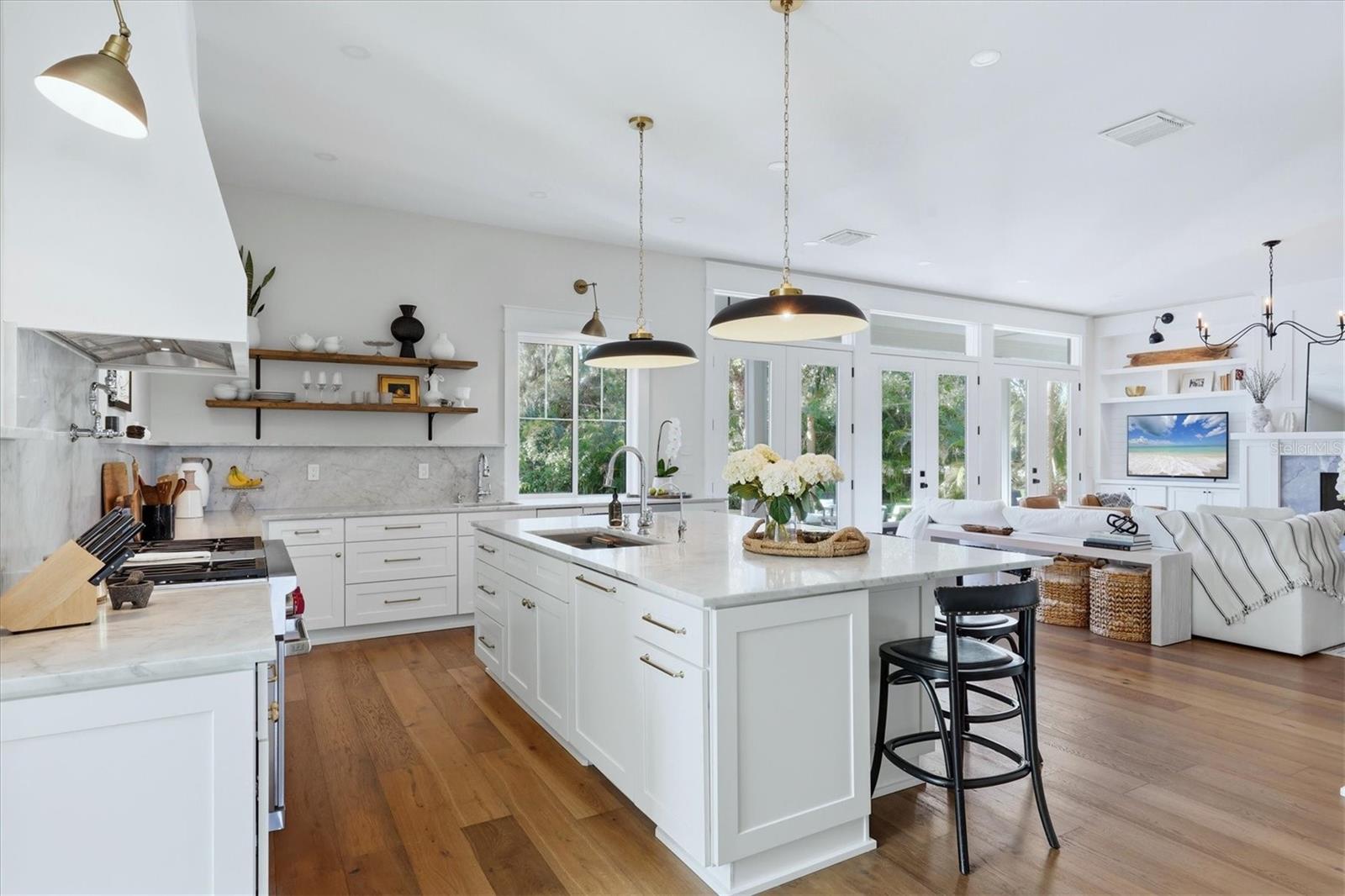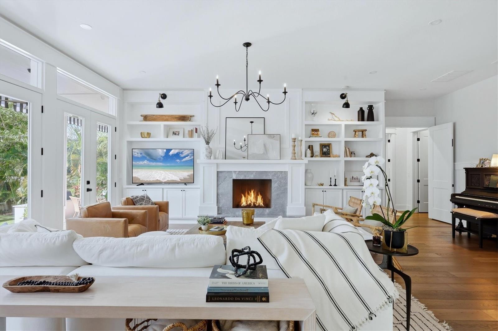 Welcome to this stunning 2021-built home in one of Sarasotas most iconic and picturesque historic neighborhoods, Cherokee Park. Offering luxurious living with thoughtful design, this spacious residence of over 6000 square feet features a desirable first-floor primary suite with a decadent bathroom with soaking tub, oversized marble shower, and access to the covered porch for your morning coffee. The gourmet kitchen is equipped with Wolf and Subzero appliances, marble countertops, a walk-in pantry, oversized island for food prep or casual dining, and sweeping views of the pool and lush backyard. A dedicated dining room provides an elegant setting for formal entertaining. The family room is centrally located for optimal entertaining and boasts a gas fireplace, marble detail, and custom built-ins. The sophisticated den offers custom cabinetry and is ideal for a home office or a sitting room. Upstairs, youll find four additional bedrooms, each offering ample space and walk-in closet storage, complemented by three full bathrooms. There is a large exercise room / flex space on the 2nd floor which includes counter space and an undercounter refrigerator and relaxation area. The third floor includes a movie room. The first floor laundry room boasts a custom mudroom with shoe cubbies and a built-in desk, conveniently located off the four-car garage. The private guest suite includes a kitchenette, separate laundry, and elevator access, making it ideal for extended family, a live-in nanny or au pair, or visiting guests. This home features beautiful oak flooring throughout, adding warmth and elegance to every room. Impeccable attention to detail is evident in every corner and the rooms are filled with abundant natural light. Step outside to your own private resort-style retreat, complete with a fully equipped outdoor kitchen and bar area, perfect for alfresco dining and entertaining under the Florida sky. Enjoy quiet evenings on the back porch overlooking the heated pool and fenced yard with newly installed and maintenance-free turf grass. Built with steel-reinforced framing and durable Hardie board siding this home offers superior structural integrity, is built to the latest hurricane codes and is not in a flood zone. Perfect for multigenerational living or hosting guests, this home combines modern elegance with practicality. Co-listing agent is the owner.