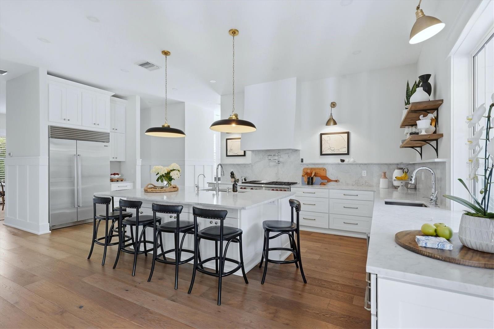 Simply elevated in design and highlighted by soaring 12-16 ft ceilings, this luxury NEW CONSTRUCTION HOME on an expansive lot showcases exceptional craftsmanship, sophisticated finishes, and a seamless blend of elegance and comfort. At the center of the home is a stunning gourmet kitchen showcasing style and function. The private butlers pantry adds additional workspace and storage.
