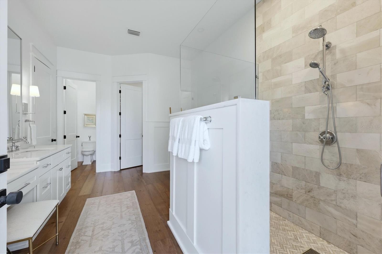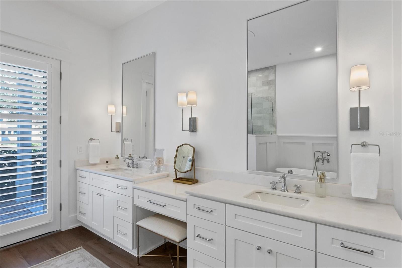 Welcome to this stunning 2021-built home in one of Sarasotas most iconic and picturesque historic neighborhoods, Cherokee Park. Offering luxurious living with thoughtful design, this spacious residence of over 6000 square feet features a desirable first-floor primary suite with a decadent bathroom with soaking tub, oversized marble shower, and access to the covered porch for your morning coffee.