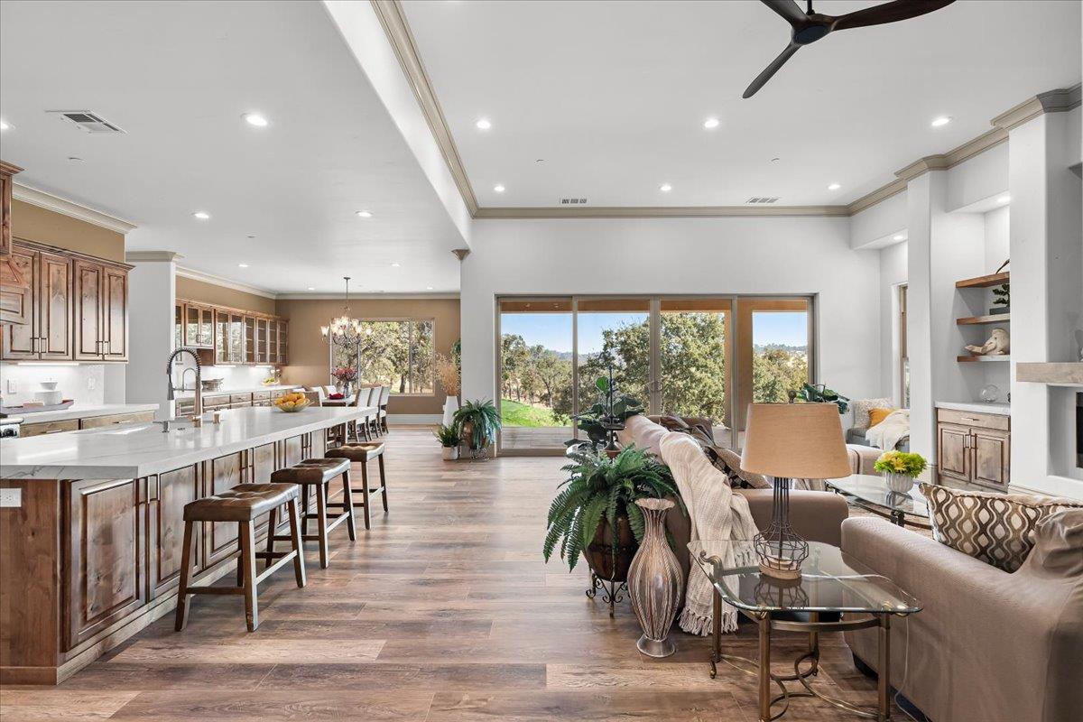 New custom home on golf course lot. This spectacular single-story 4 bed, 3.5 bath custom home is on a 0.4-acre lot in the gated community of Copper Valley just 2 hours east of the Bay Area in Copperopolis. Designed with a contemporary open-concept layout, the home features a spacious great room & gourmet kitchen with Viking appliances, quartz countertops, custom alder cabinetry, walk-in pantry, & wet bar in the dining area perfect for entertaining. The great room opens to a covered patio with views of the golf course and rolling hills. Enjoy a luxurious primary suite, two additional en-suite bedrooms, and a versatile fourth bedroom perfect for an office or hobby space. Quality finishes include vinyl plank flooring, crown molding, hand-textured insulated walls, custom closet organizers & 2x6 construction. The 30 deep RV garage plus 2-car garage provide ample room for all your toys. Copper Valley offers a top-rated golf course; clubhouse; restaurant; walking/biking trails; Sports Club w/pool, spa, gym, tennis, pickleball, bocce ball & more. With boating, fishing, hiking, wine tasting, skiing & Yosemite National Park all nearby, this is foothill living at its finest. Schedule your private tour today & discover your dream home!