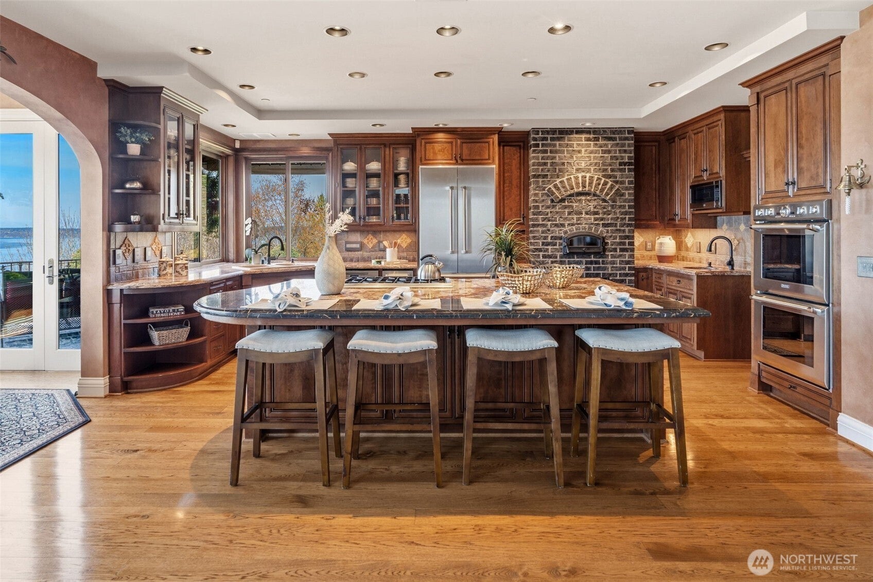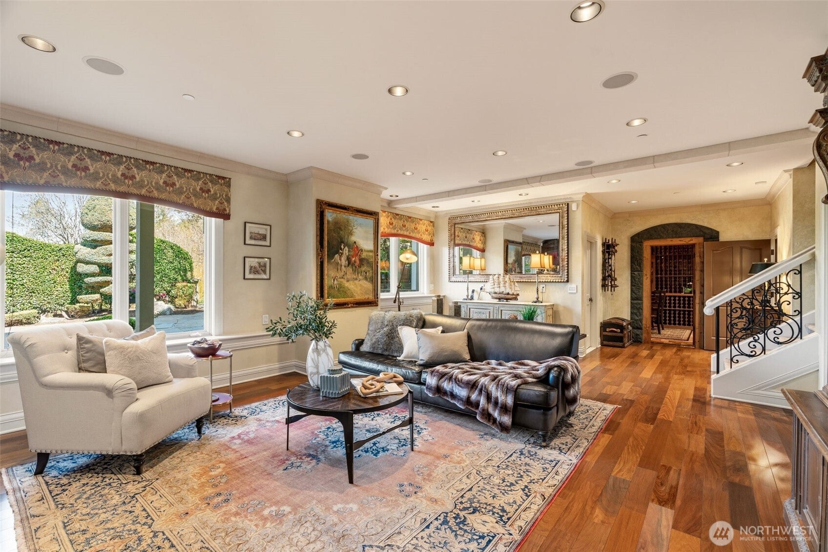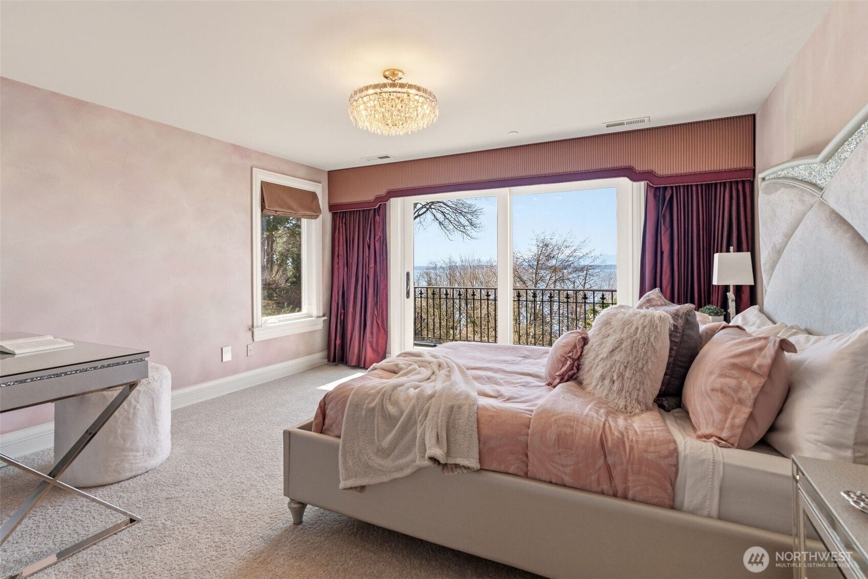 Inspired by the timeless elegance of a French Chteau, this exquisite Edmonds estate captures sweeping views of Puget Sound and the Olympic Mountains. Custom-built in 2001, this private residence blends old-world craftsmanship with modern sophistication. A dramatic marble entry and sweeping staircase set the tone for gracious living, accented by a sparkling crystal chandelier. The chefs dream kitchen features double ovens, a pizza oven, travertine and marble countertops, and rich hickory hardwood floors. Retreat to the luxurious primary suite offering a spa-inspired bath, cozy sitting room, and private laundry. Additional highlights include a stunning library, temperature-controlled wine cellar, radiant heat, air conditioning, sauna, and gym. Beautifully designed grounds complete this spectacular settingan extraordinary home where elegance meets comfort.