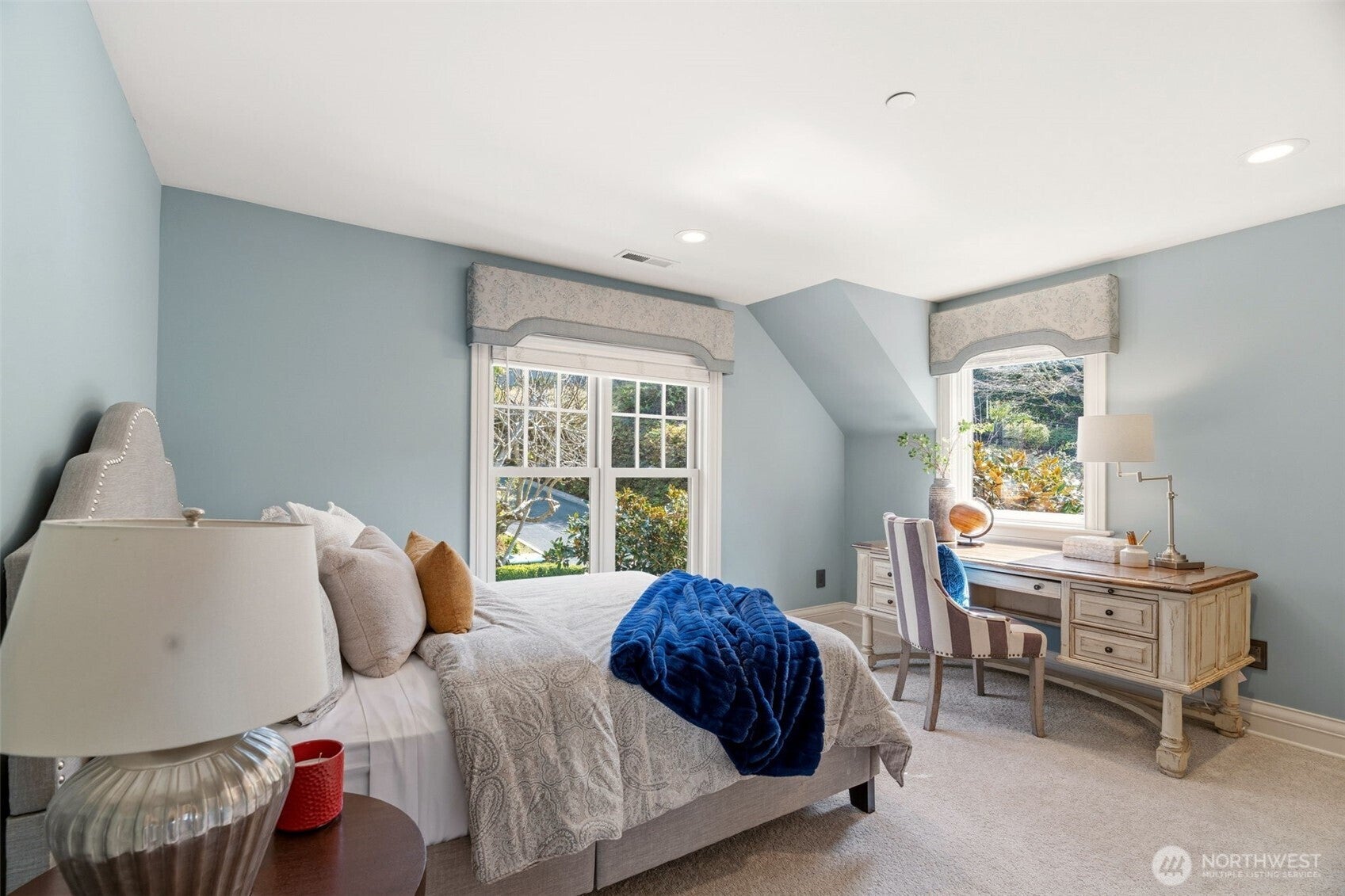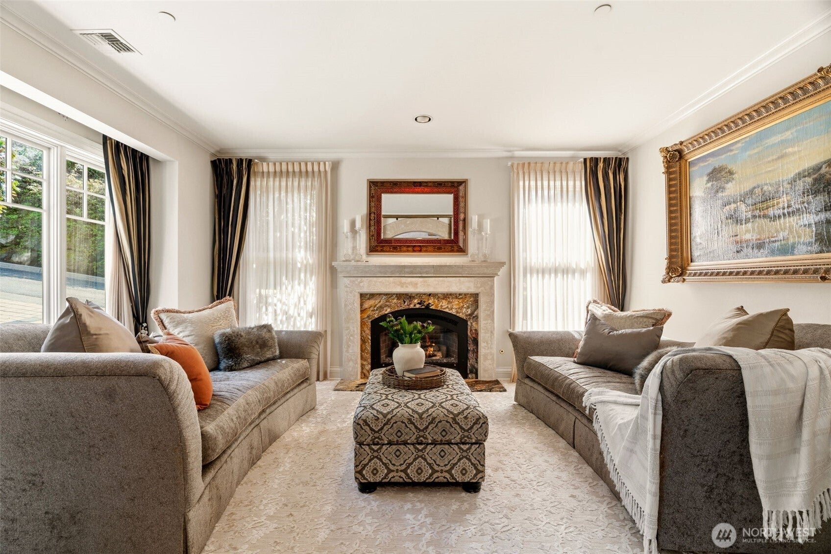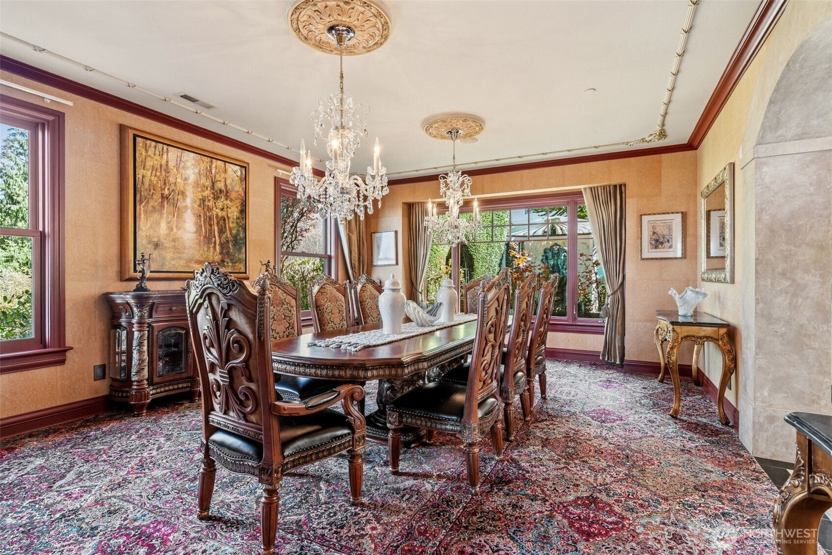 Inspired by the timeless elegance of a French Chteau, this exquisite Edmonds estate captures sweeping views of Puget Sound and the Olympic Mountains. Custom-built in 2001, this private residence blends old-world craftsmanship with modern sophistication. A dramatic marble entry and sweeping staircase set the tone for gracious living, accented by a sparkling crystal chandelier. The chefs dream kitchen features double ovens, a pizza oven, travertine and marble countertops, and rich hickory hardwood floors. Retreat to the luxurious primary suite offering a spa-inspired bath, cozy sitting room, and private laundry. Additional highlights include a stunning library, temperature-controlled wine cellar, radiant heat, air conditioning, sauna, and gym. Beautifully designed grounds complete this spectacular settingan extraordinary home where elegance meets comfort.