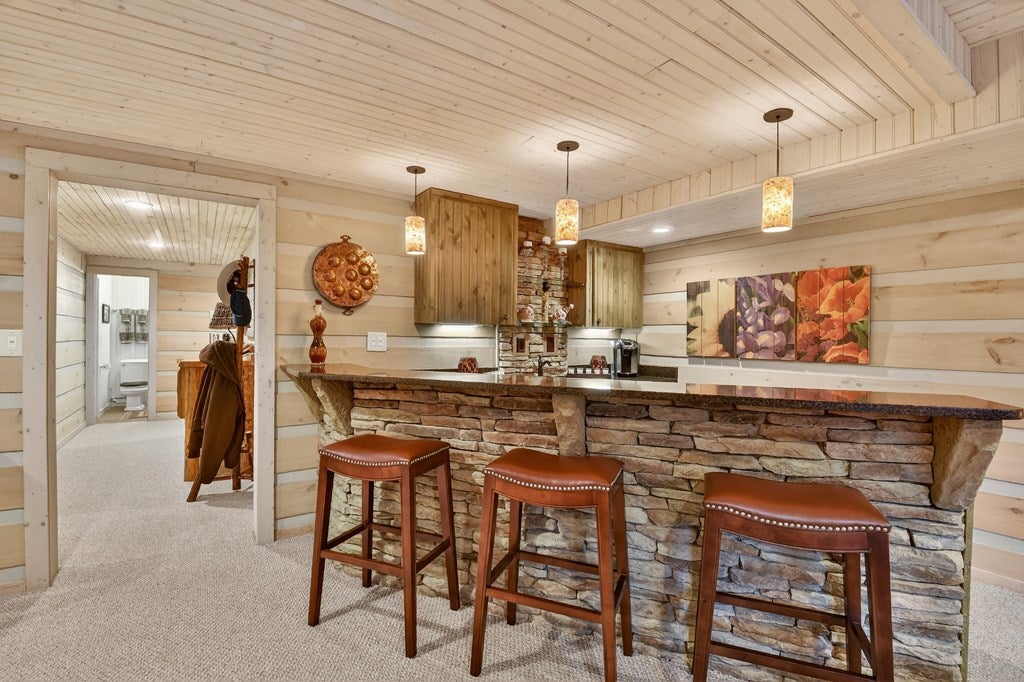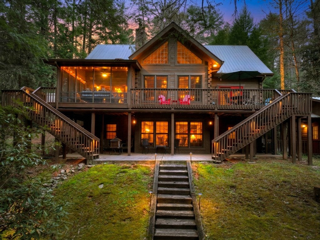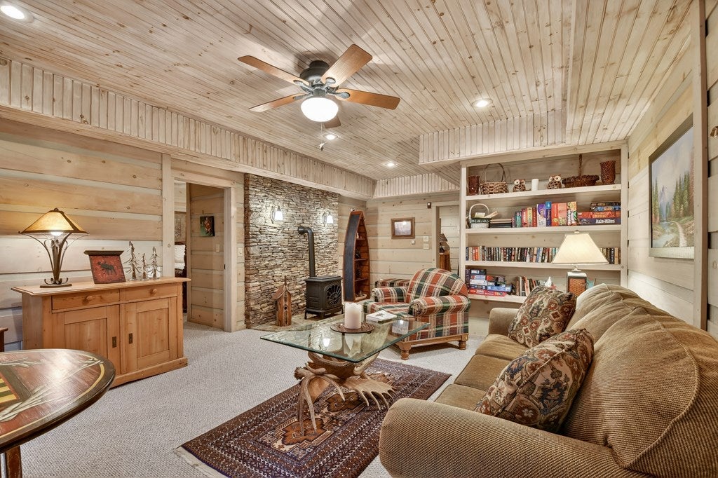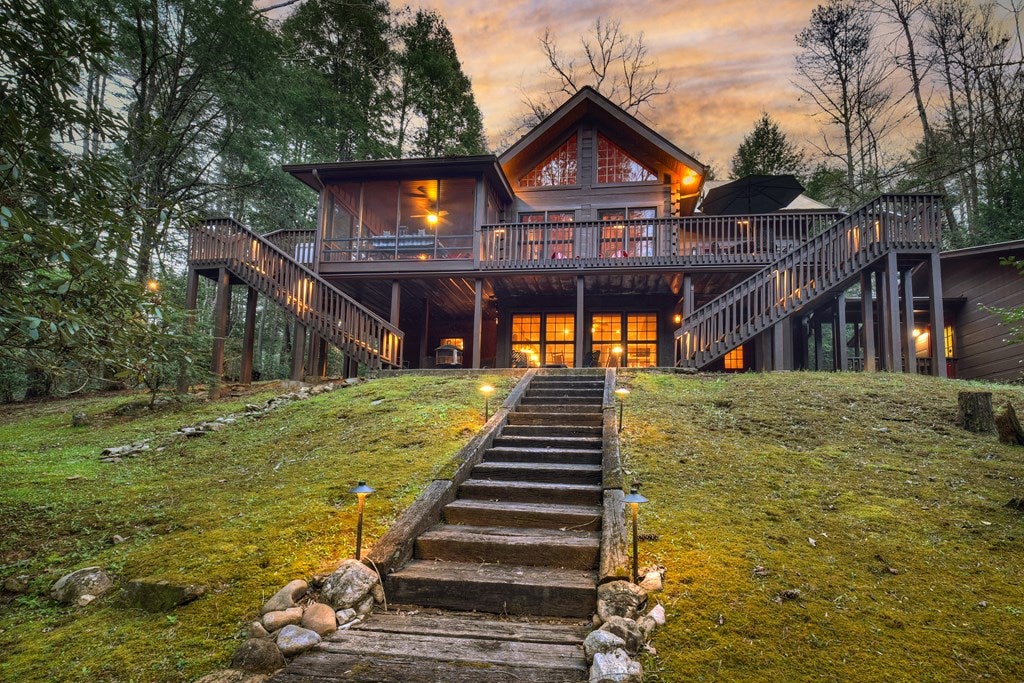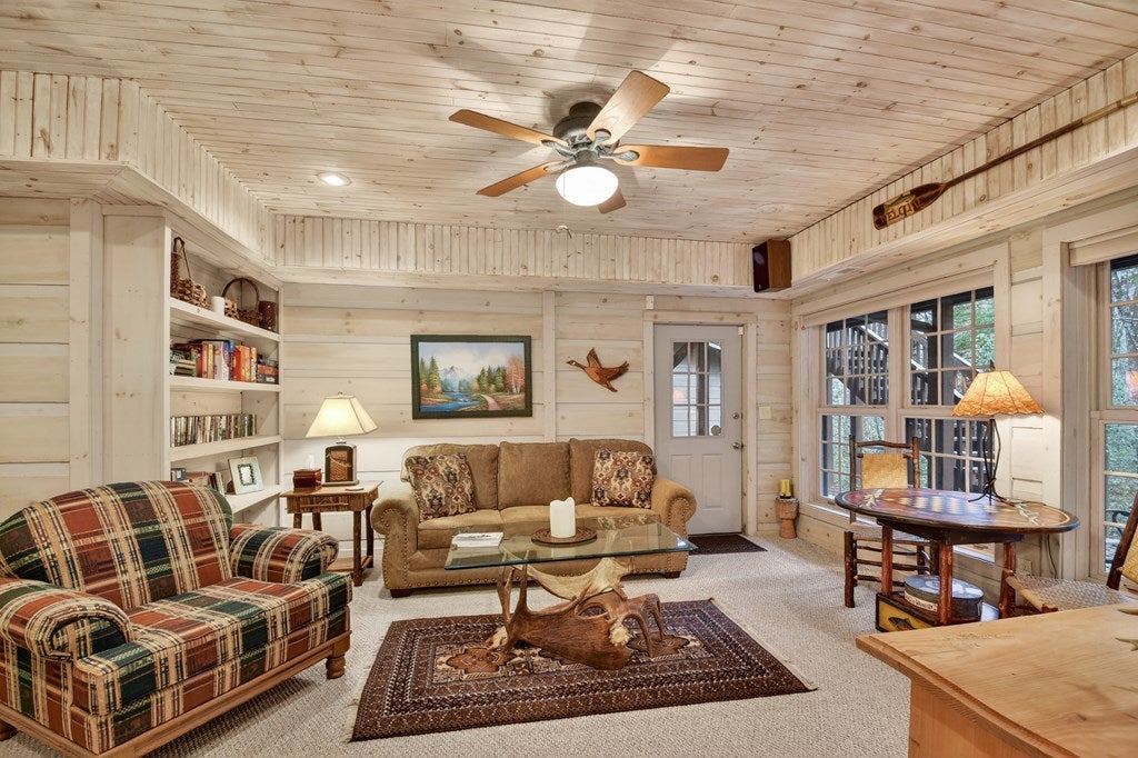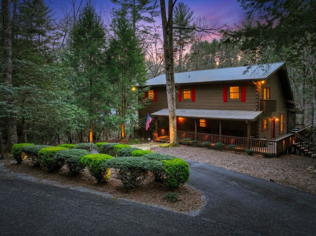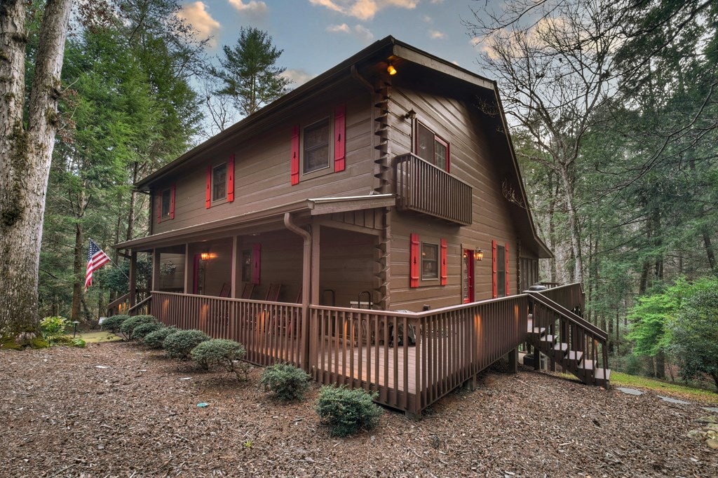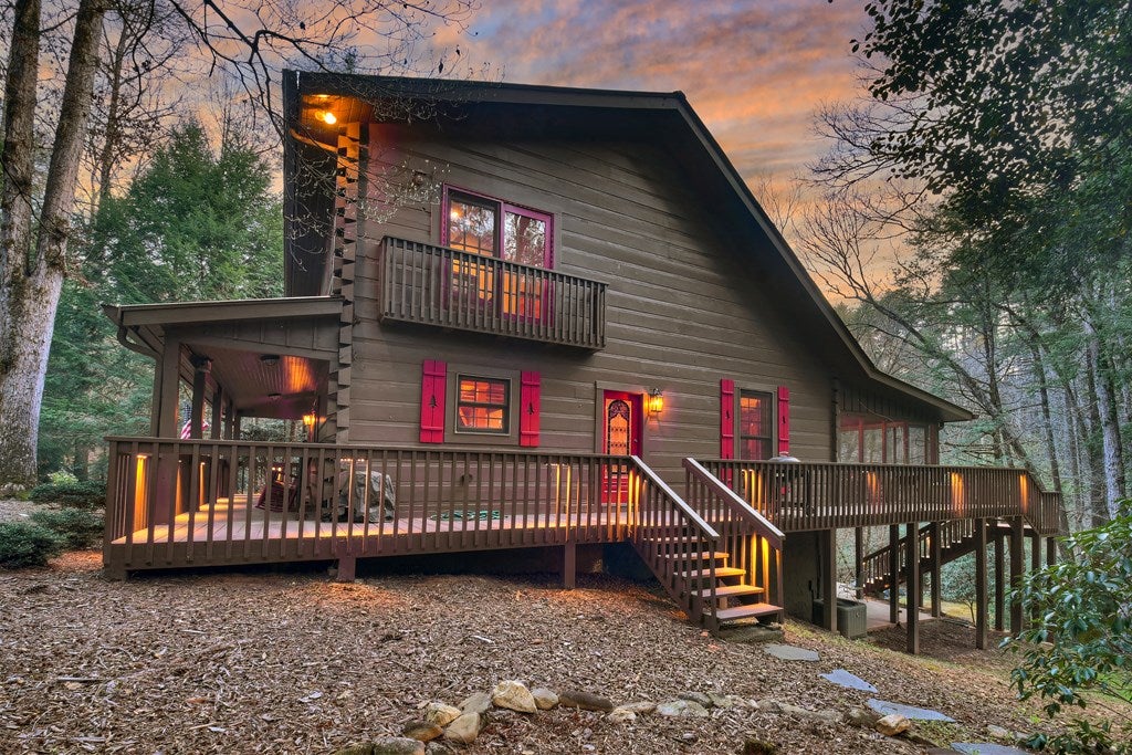 Luxury log home on the Ellijay River with 2.39 acres Located at Goose Island Hideaway, a 230 acre gated neighborhood in Cherry Log. This 4 bedroom log home is just under 4,000 squarefeet and is offered fully furnished with designer furnishings and original artwork. The main level features a central great room with a lodge fireplace, an updated kitchen with a walk-in pantry, 3 dining areas including a screened porch, and a primary bedroom suite with dual walk-in closets, a clawfoot tub, and a walk-in shower. Upstairs there is a small loft and 2 guest rooms with a Jack-and-Jill bathroom.The fully finished terrace level has a 4th bedroom with a bath, a bonus room that could serve as a home office/library, and a fully equipped game room with a wet bar, fireplace, and large-screen TV. Enjoy over 380 feet of river frontage by the outdoor fire pit with Adirondack seating. This property also includes a detached garage and a generator, and it has been recently painted. Short term rentals are permittedand this property would make an excellent vacation rental.