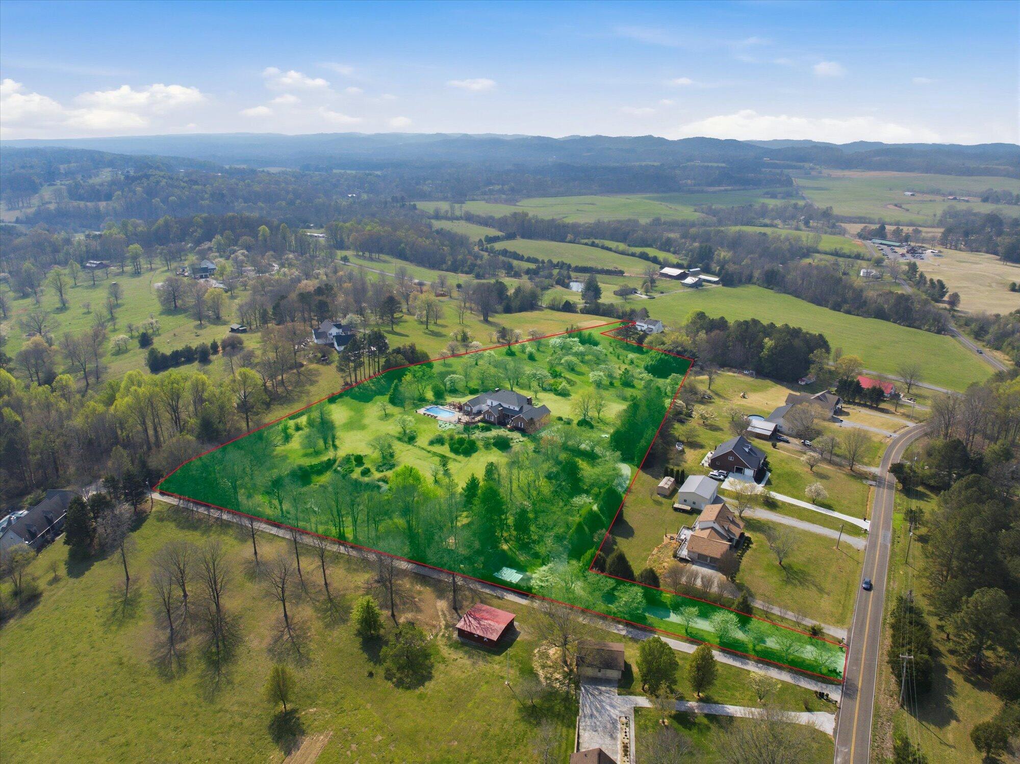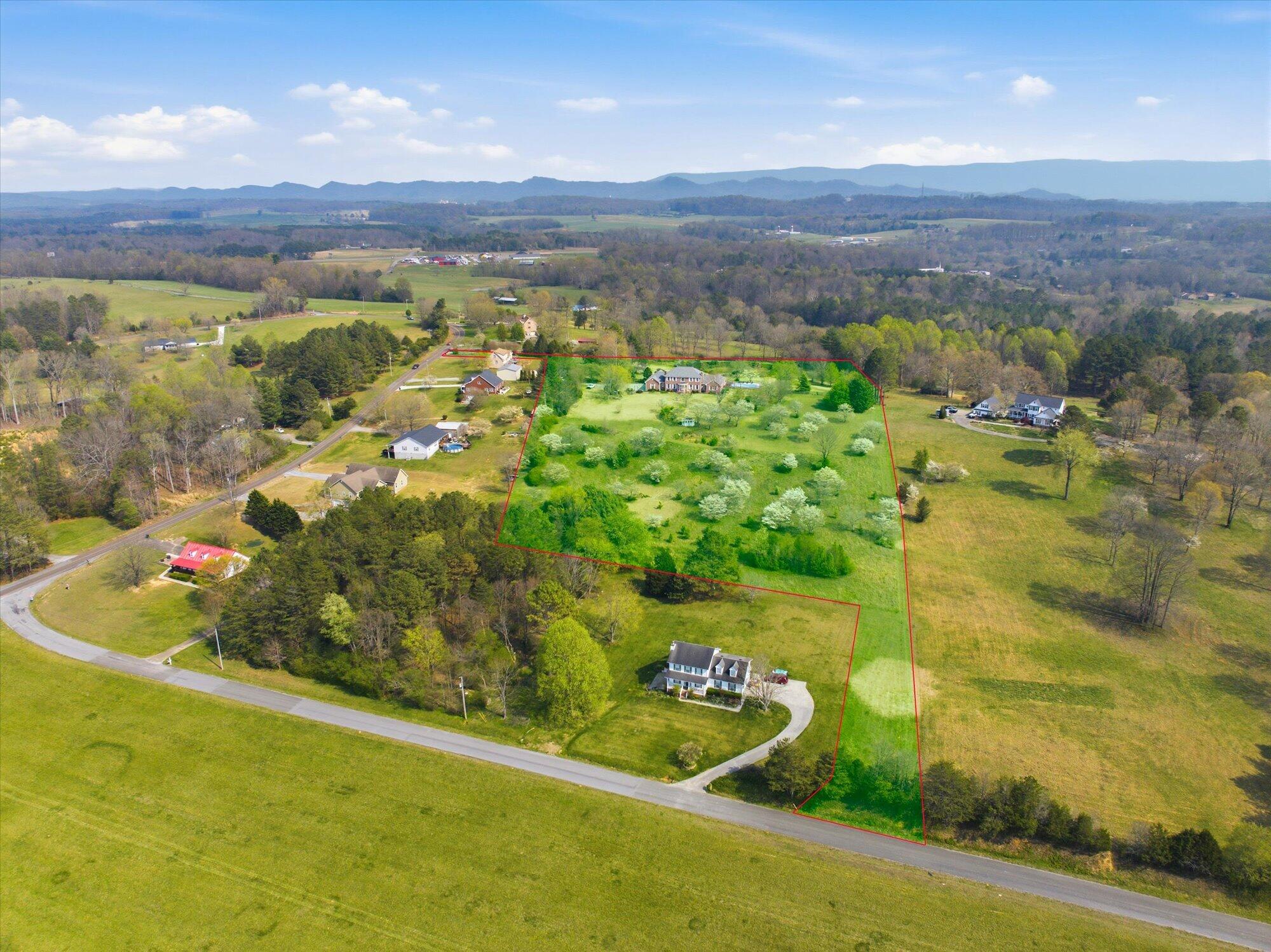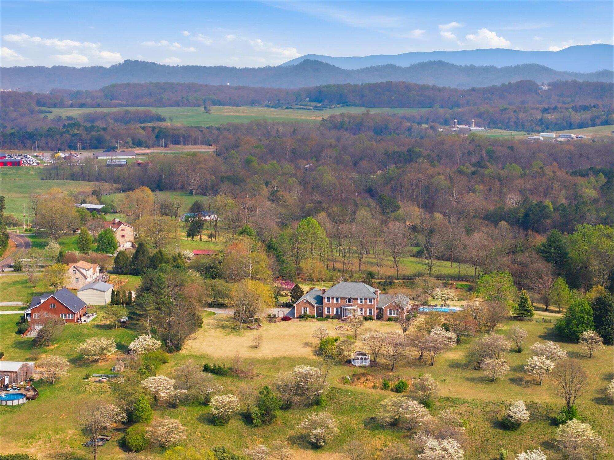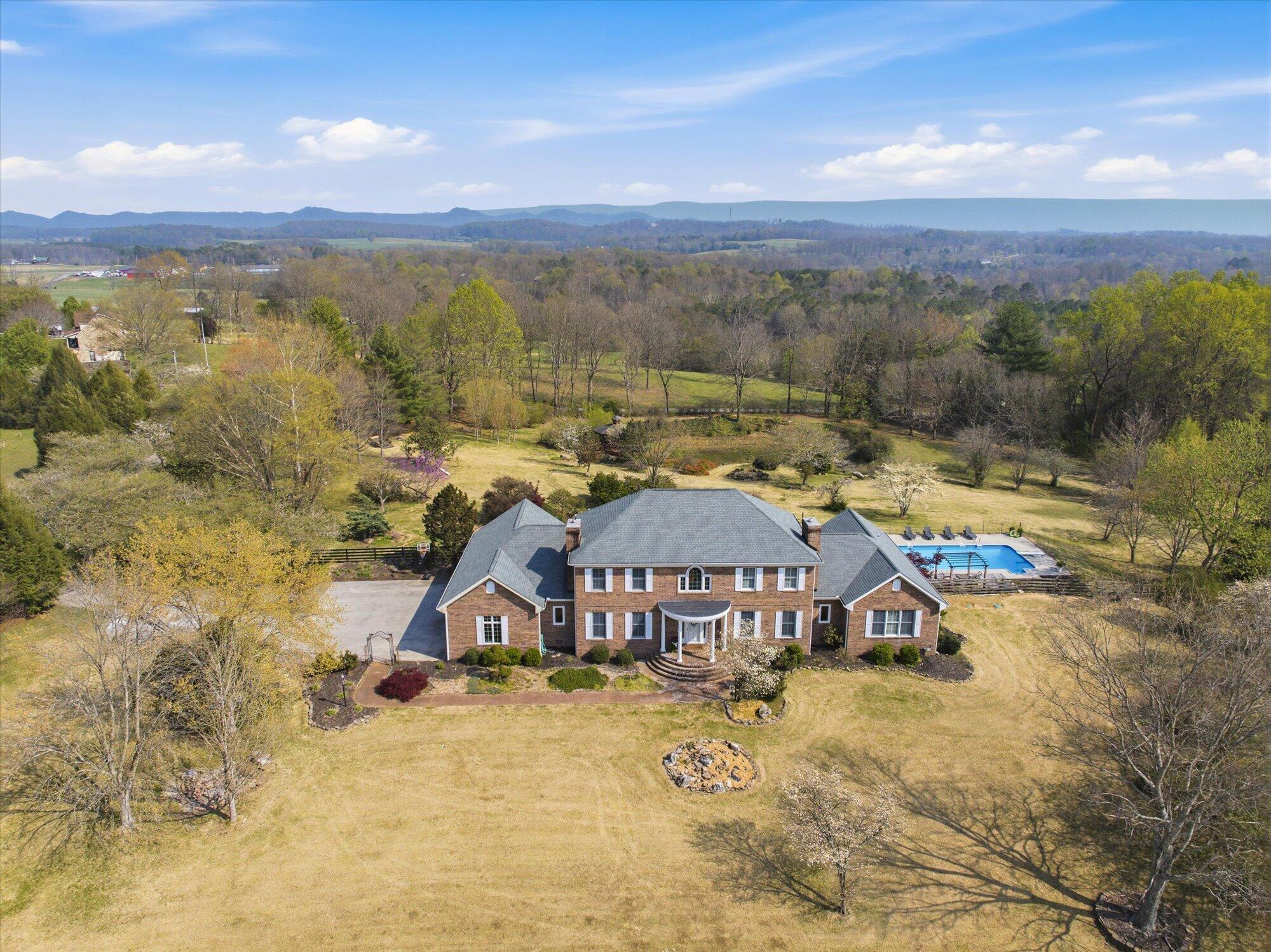 Welcome to an extraordinary brick colonial estate on 8.57± acres in the foothills of East Tennessee, in Athens, with breathtaking views of Starr Mountain. This 5,400 sq ft residence blends timeless elegance with modern comfort and sophisticated design.A grand foyer welcomes you into formal dining and sitting rooms, perfect for elegant entertaining. A stately office provides a distinguished work-from-home space, while the expansive living room, complete with wet bar and one of three gas log fireplaces, offers a warm and impressive gathering area.The kitchen features granite countertops, ample cabinetry, and flows seamlessly into the main living areas, enhanced by rich wood flooring and plantation shutters. The oversized primary suite serves as a private sanctuary, while large windows throughout capture stunning front and rear views. Four bedrooms, three full bathrooms, and a half bath complete the thoughtfully designed interior.Outdoors, enjoy a fully fenced backyard for pets or recreation and a 20x40 saltwater pool with diving board for entertaining or relaxation. The attached three-car garage, plus a detached garage and shed down the driveway, provide ample storage and workspace.This extraordinary property offers the perfect combination of privacy, space, and sophistication, all while showcasing some of the most beautiful views the region has to offer. A rare opportunity to own a truly distinguished home in a serene and picturesque setting. Red lines are approximate. Buyer to verify all information.