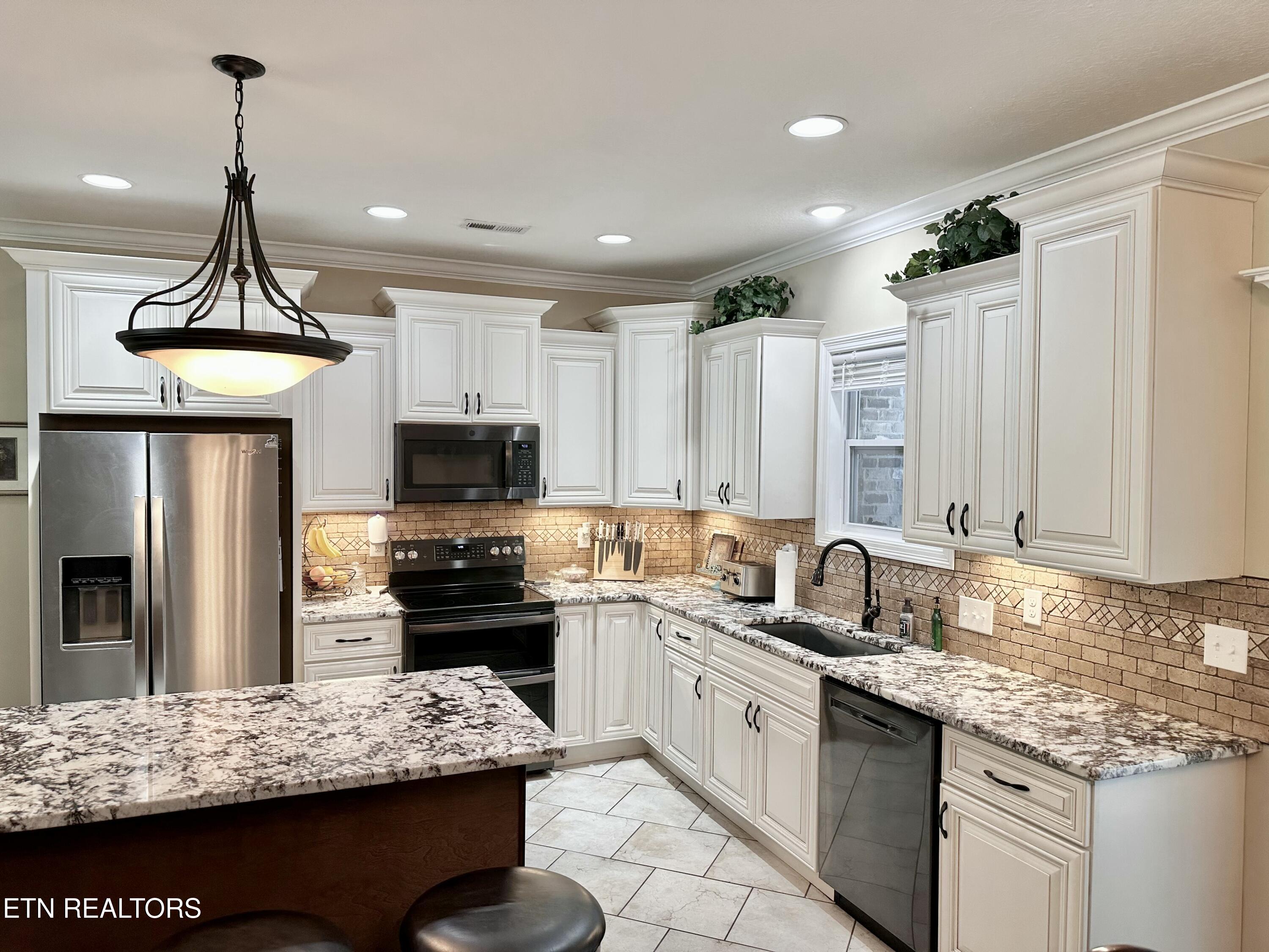 One of a kind builder's own home, in the City of Maryville. This 2-story brick, 5-Bedroom/3-Bath home is only 3 years old, well maintained and loaded with all the amenities. Lots of windows. Cordless window blinds. Closets everywhere. lots of storage. NO WASTED SPACE! Custom kitchen with beautiful travertine tile backsplash and black composite sink. Buyer has option to choose electric or gas range, both are on site. Granite countertops throughout. Spacious open floor plan with 9' ceilings on the main level. Extensive crown molding throughout main floor with decorative casings around doors and windows. Coffered ceilings and bamboo hardwood in Great Room and master bedroom. Master suite with ceramic tile flooring, whirlpool tub and WIC. 2 bedrooms with a shared bath on the main level. Upstairs boasts a large rec room, 2 bedrooms, full bathroom, and 2 large walk-in storage closets. Plush, high-quality carpet.Tankless gas water heater. Energy efficient systems for lower utility costs. Separate heat/air system for upstairs. Gas heat. Very accessible inside: 4 feet wide hallways. 3 feet wide doors. Oversized 3-CAR GARAGE with 8' tall garage doors, and ONE EXTRA DEEP BAY extending over 39 FEET with plenty of room for workshop, boat, storage, etc. Low-maintenance composite rear deck. Stamped concrete covered front porch. This home is located in the established Browns Creek neighborhood and has NO HOMEOWNERS ASSOCIATION/DUES. ZONED for nationally-recognized MARYVILLE CITY SCHOOLS. Conveniently located: 1 mile to Blount Memorial Hospital, 6 miles to McGhee TysonAirport, 18 miles to The University of Tennessee, 28 miles to Pigeon Forge (Dollywood!), 32 miles to Cades Cove, and less than 40 miles to the heart of the Great Smoky Mountains National Park. Nearest large city is Knoxville- only a 30 minute drive to shopping, concerts, cultural and sporting events, fine dining, museums, and Zoo Knoxville.What the Owner loves about this home We love that it is so peaceful and quiet!! There is virtually no noise heard from inside the house, even during the busiest parts of the day! We love the mature trees around us that provide ample evening shade perfect for grilling or just relaxing on the deck in the late afternoon. We LOVE the TANKLESS WATER HEATER! It's hot water on-demand. We love the sidewalks and the neighborhood. We love the oversized, flat driveway! It's perfect for washing cars, parking low-clearance vehicles (i.e. sports cars), and simply having tons of parking space for family and friends. We absolutely LOVE the location!! It is convenient to EVERYTHING and is zoned for the highly regarded Maryville City schools! We love the efficiency and use of space! This home is designed for gatherings or quiet evenings at home. The upstairs rec room has been a great space for entertaining.Don't miss this unique property, it won't last long!!