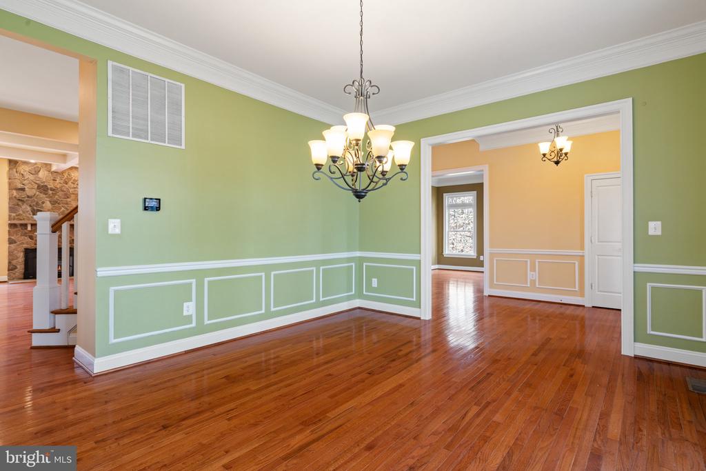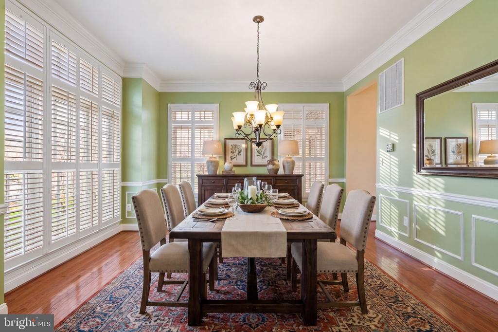 New construction in the final phase of Lakeview Estates blends modern elegance with refined finishes throughout. A covered front entry opens to a dramatic foyer, flanked by formal living and dining rooms featuring classic wainscoting, elegant lighting, and gleaming hardwood floors that extend across most of the main level and staircase.