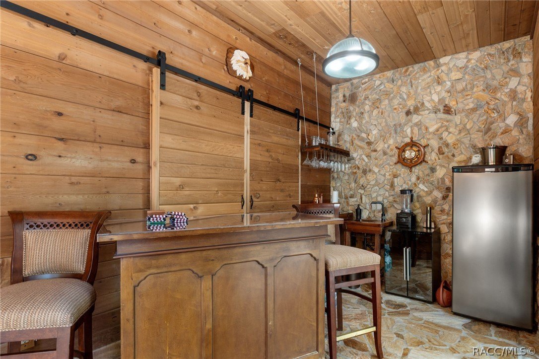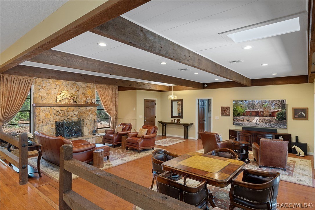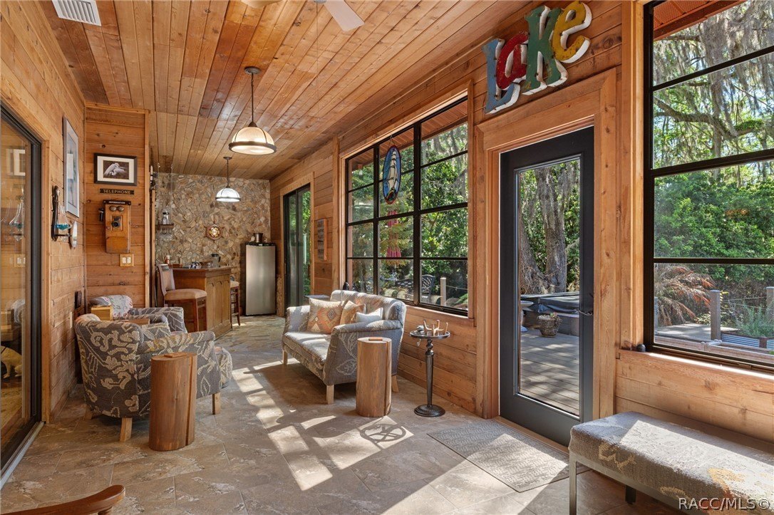 IMMACULATE LOG CABIN - AMAZING HIGH END FURNISHINGS INCLUDED - BORDERS FOREST SERVICE - PRIVATE - AWESOME SHORT TERM RENTAL POTENTIAL - You MUST see this gorgeous log cabin with a beautiful two story river rock fireplace and large kitchen on the main floor, walk out lower level w/family room, bedroom, bath and fireplace and upper level master suite w/one of a kind custom log bed.