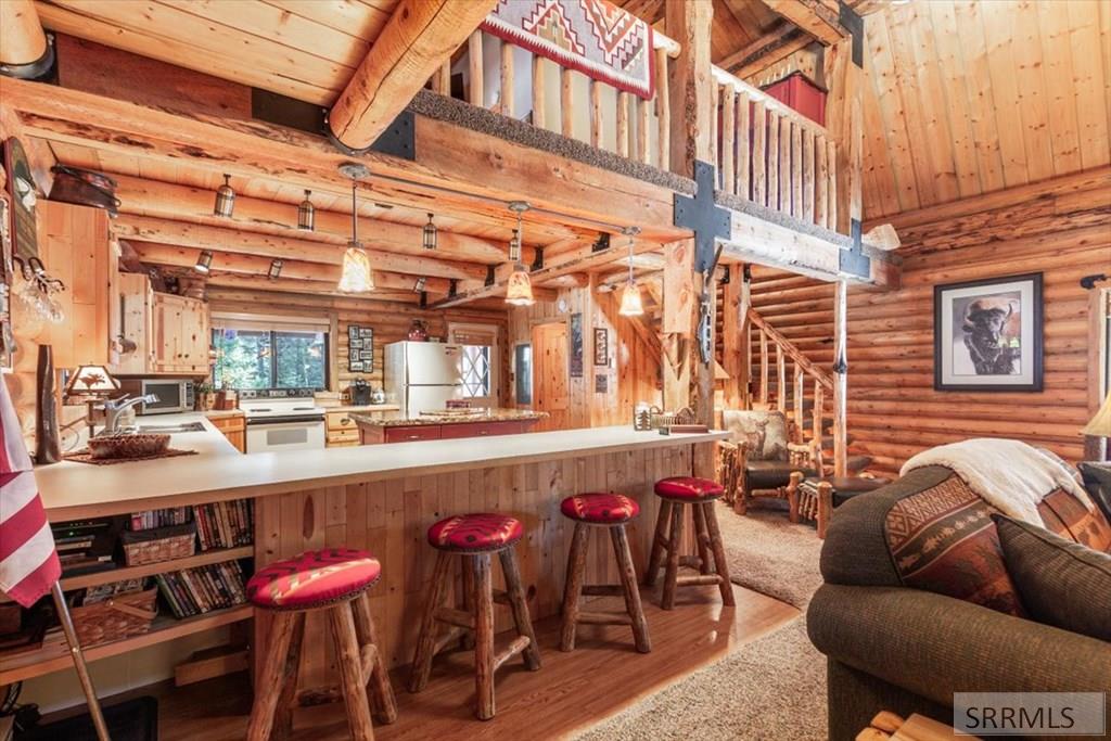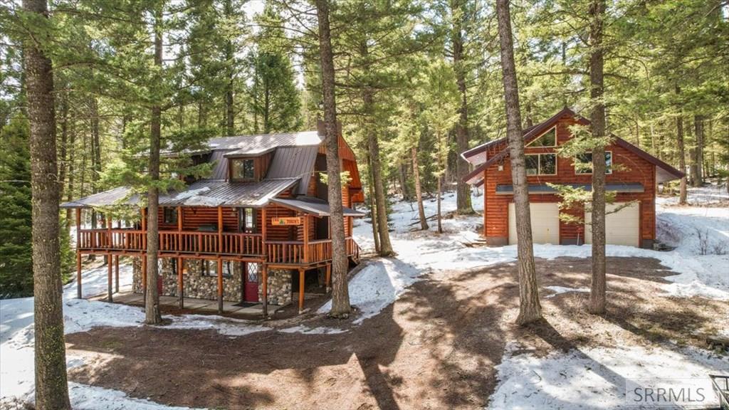 IMMACULATE LOG CABIN - AMAZING HIGH END FURNISHINGS INCLUDED - BORDERS FOREST SERVICE - PRIVATE - AWESOME SHORT TERM RENTAL POTENTIAL - You MUST see this gorgeous log cabin with a beautiful two story river rock fireplace and large kitchen on the main floor, walk out lower level w/family room, bedroom, bath and fireplace and upper level master suite w/one of a kind custom log bed. The detached 928 sq. ft. heated garage features a luxurious upstairs with fireplace and full bath (745 sq. ft. included in the total upper sq. footage and built in 2012 - frame structure). Located off a paved road near Henrys Lake and just a 20-minute drive from Yellowstone Park, this property will be a favorite Short-Term Rental if desired. Move in ready - just bring your food and clothing and start MAKING MEMORIES OF A LIFE-TIME. Be sure to view the 3D tour including floor plans and measuring tool. Call the listing agent for your showing appointment or for more information.