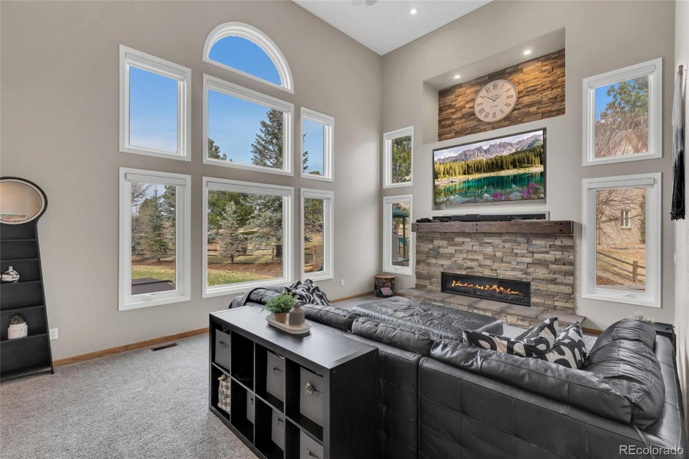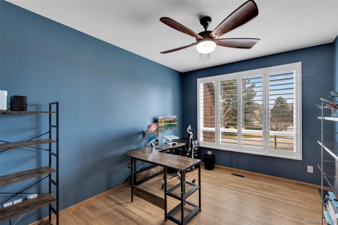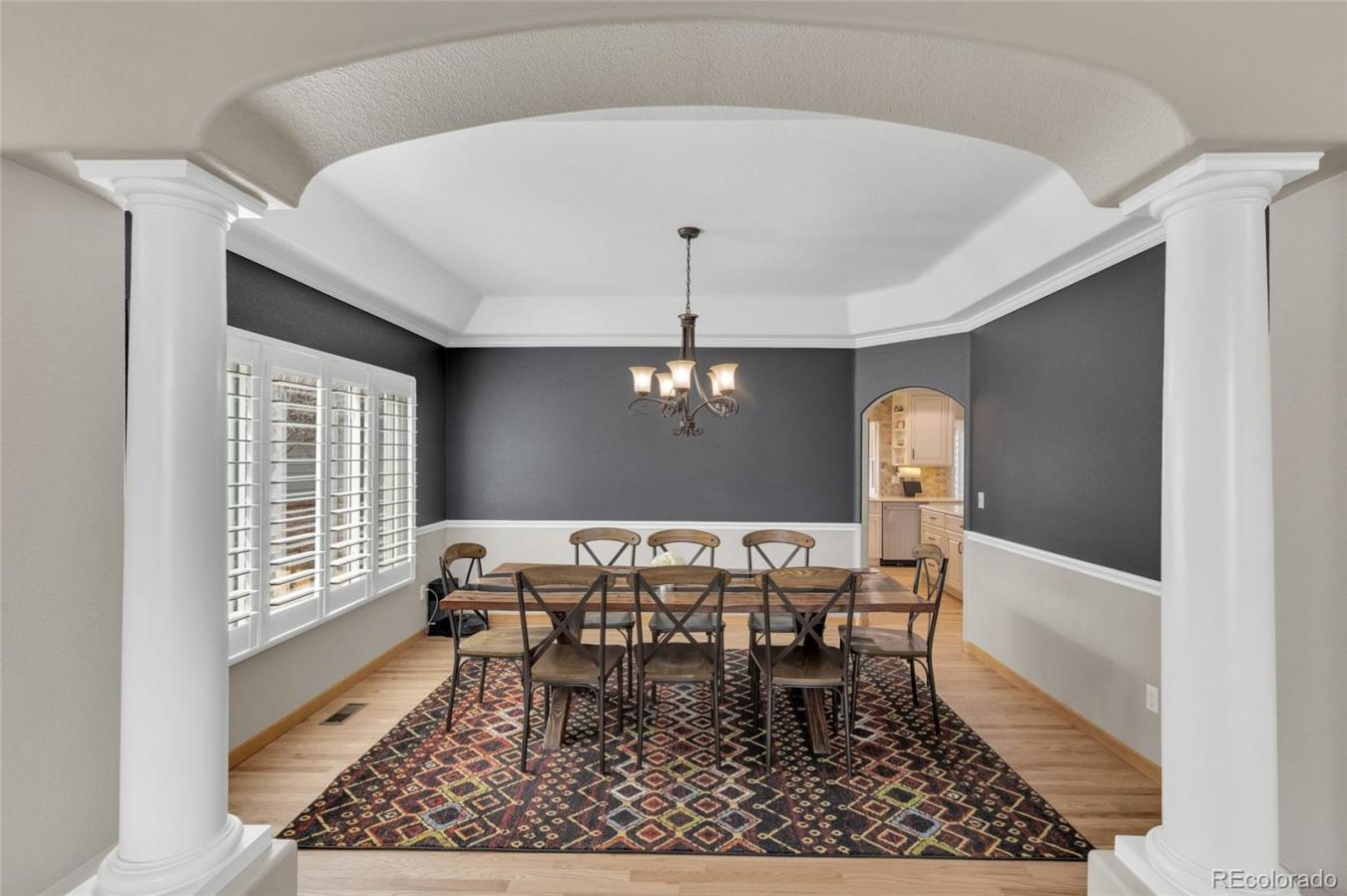 Imagine waking up at the end of a quiet, sun-drenched cul-de-sac, where the only sound is the wind through the pines. 7119 Dove Court isnt just a house; its a front-row seat to the best of Colorado living. From the moment you step through the door, the soaring vaulted ceilings and totally updated aesthetic create a sense of airy sophistication. Your backyard is a sprawling 15,000-square-foot sanctuary that backs directly to the lush fairways of the Pinery Country Clubs 14th hole, offering unobstructed, panoramic mountain views that turn every sunset into an event. The main floor is designed for a modern rhythm of life, featuring a secluded private office perfect for deep work. Upstairs, the layout is a rare find, keeping everyone close with the primary suite plus three additional spacious bedrooms all on the same level. When its time to entertain, the lower level is the ultimate destination. Imagine hosting friends at the sleek wet bar-complete with a full-size refrigerator for all your local brews-or heading into the dedicated gym or settling into the craft room for a creative session. Whether you are walking the nearby Cherry Creek Trail, enjoying a round at the club, or simply taking in the mountain vistas from your deck, this home offers a lifestyle of quiet luxury and natural beauty that is impossible to replicate.