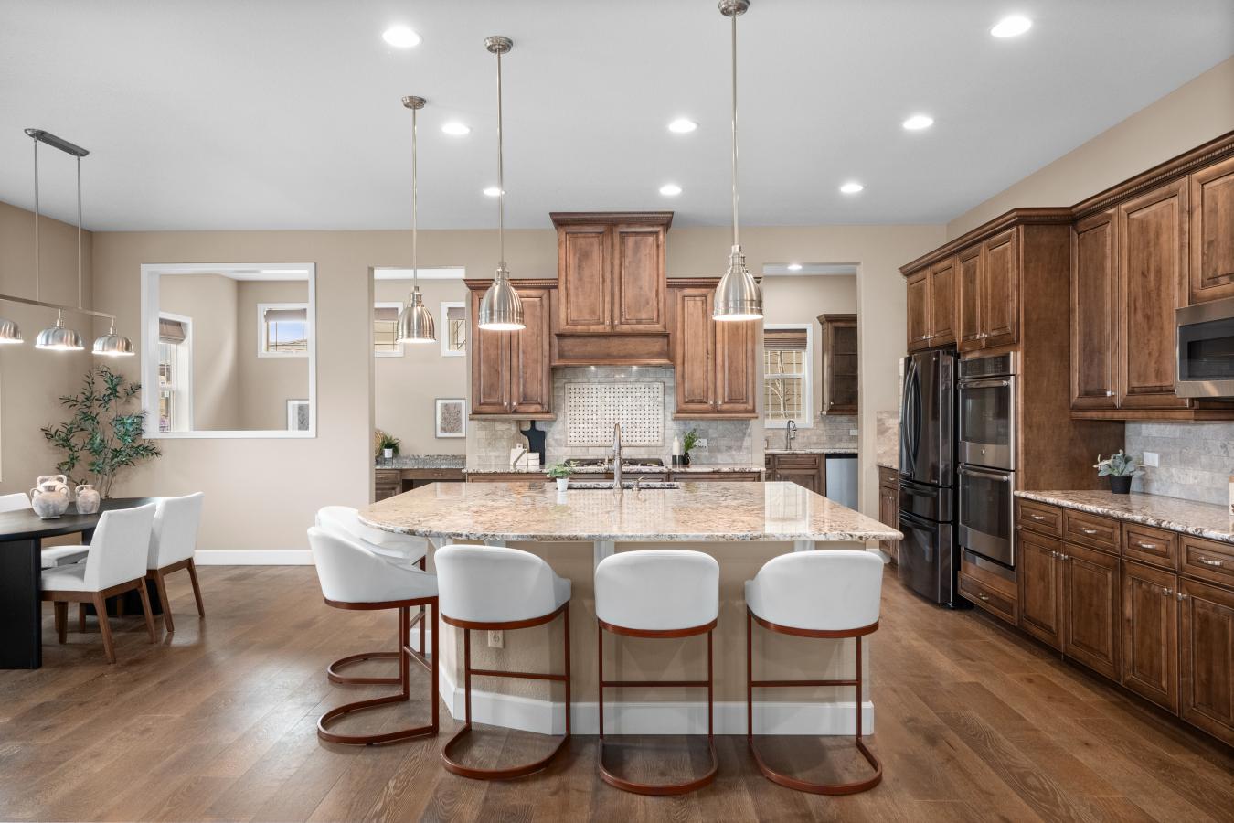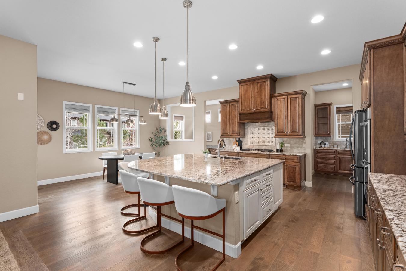 Experience the Pinnacle of Luxury in Colliers Hill Discover unparalleled scale and sophistication in this rare "Harmony" model, perfectly positioned on a premium lot with Front Range mountain views. Spanning nearly 5,900 total square feet, this 6-bedroom, 5-bathroom executive residence offers a "category of one" lifestyle in the heart of Eries most sought-after community. Architectural Elegance & Open Concept Living: Step inside to a soaring two-story foyer and an expanse of wide-plank flooring that leads to the heart of the home. The gourmet chefs kitchen is a masterpiece of design, featuring a massive granite island, high-contrast designer cabinetry, custom tile backsplash, and stainless appliances. The seamless flow into the sun-drenched living room, anchored by a modern fireplace, creates the ultimate environment for grand-scale entertaining. A Private Sanctuary with a View: Retreat to the primary suite, a sprawling oasis designed to capture Colorados famous sunsets over the Rockies. The spa-inspired 5-piece ensuite features a soaking tub, an oversized walk-in shower, and dual vanities with premium finishes. The Ultimate Lower Level: Retreat: The professionally finished 1,500 sq. The ft. basement redefines luxury utility. Featuring high ceilings and modern finishes, this expansive footprint includes a dedicated guest suite, a custom wet bar, a home theater zone, and flexible space for a private gym or executive office. Outdoor Living & Premier Location: Step outside to a professionally landscaped yard featuring a custom gas firepit, perfect for crisp Colorado evenings watching the mountain silhouette. Enjoy world-class amenities at The Overlook, miles of interconnected trails, and top-rated St. Vrain Valley schools, including Soaring Heights K-8. Located just minutes from historic Downtown Erie and an easy commute to Boulder, Denver, and DIA. Key Features: 6 Bedrooms , 5 Bathrooms , 3-Car Garage Mountain Views Gourmet Kitchen with Granite Countertops Fully Finished Basement with Custom Wet Bar Professionally Landscaped with Gas Fire Pit