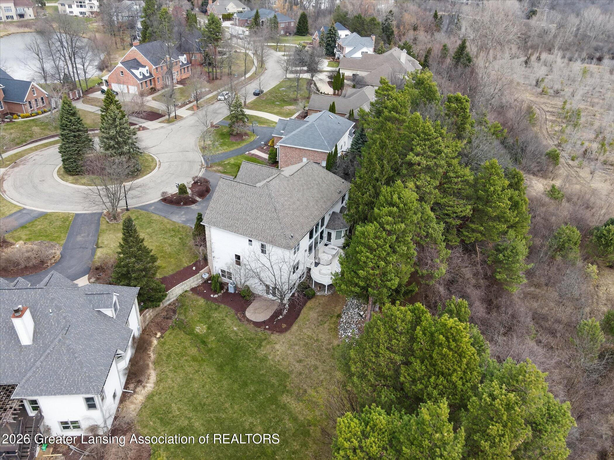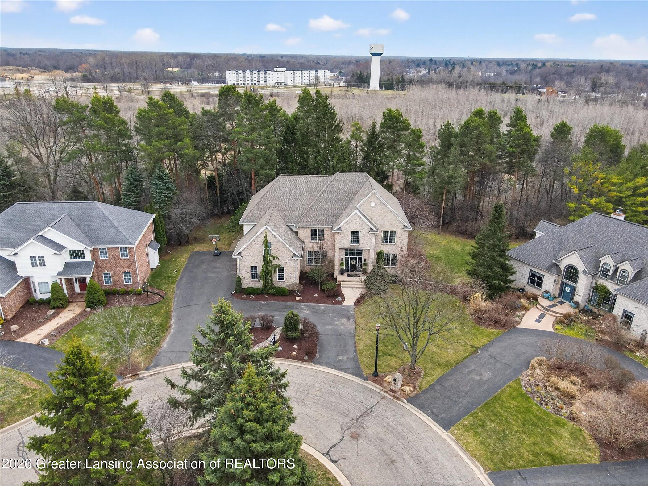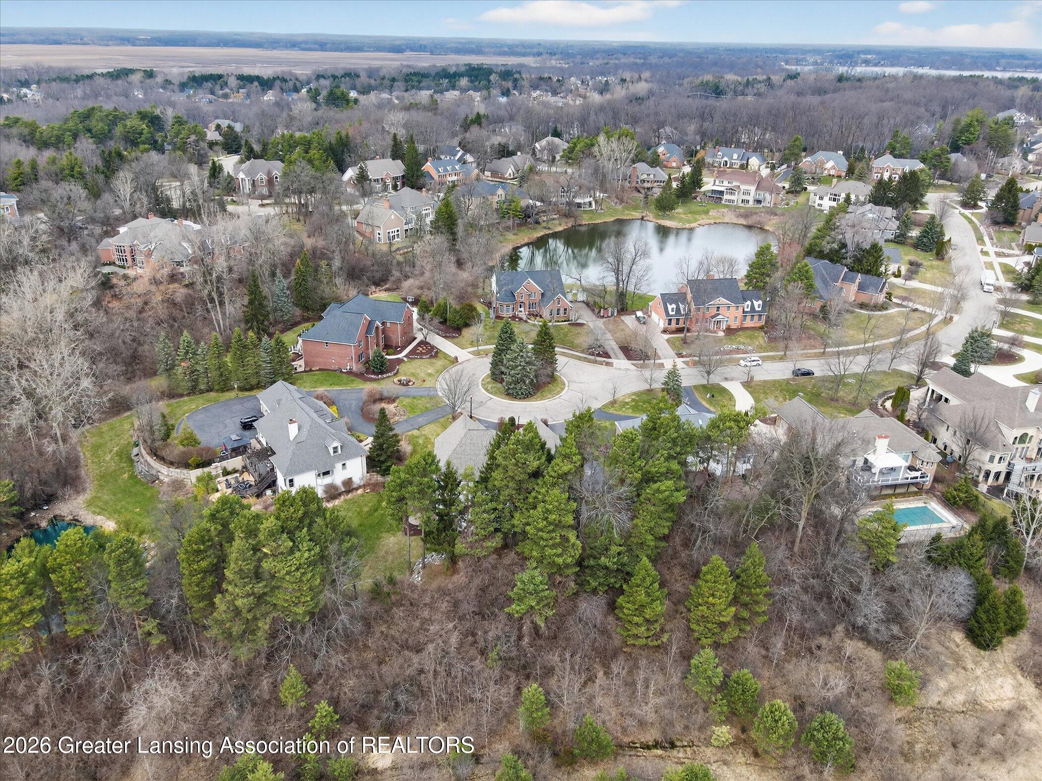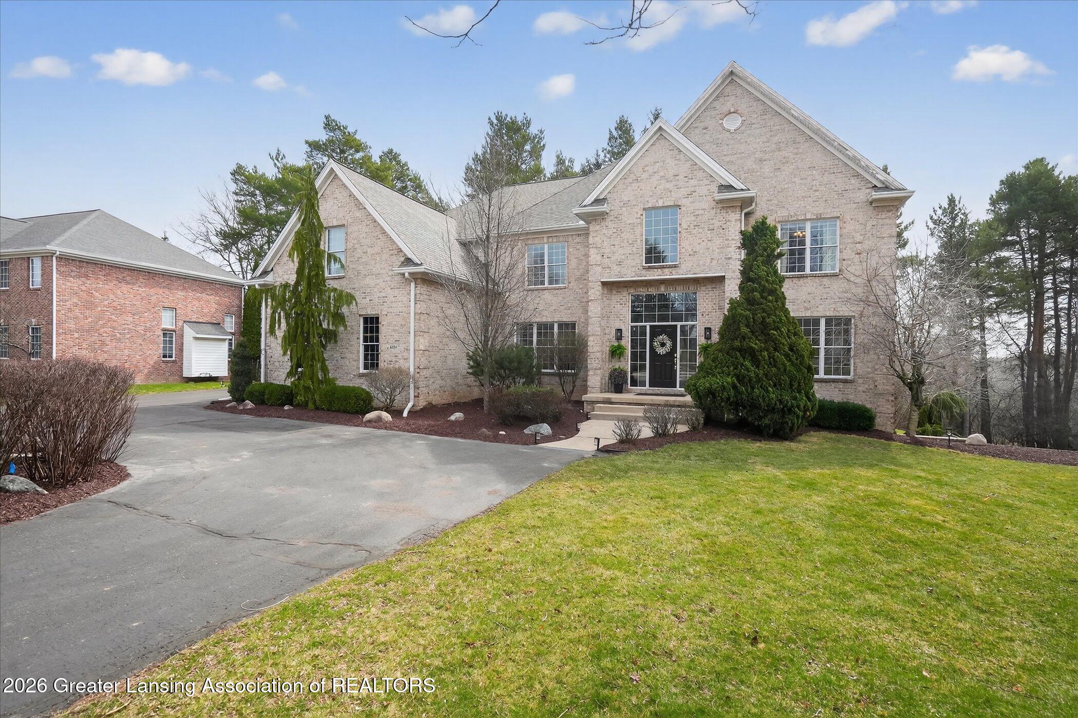 6 bedrooms, 5.5 bathrooms and almost 7000 square feet of living space! Welcome to 6384 Ridgepond Place - this stunning executive style residence is nestled on over half an acre in the highly sought-after Whilehills Woods neighborhood. From the moment you arrive, the circle driveway, mature landscaping, and striking curb appeal set the tone for everything this exceptional home has to offer. Step inside to a dramatic two-story foyer that flows seamlessly into a sun-drenched great room anchored by a fireplace and soaring floor-to-ceiling windows that bathe the space in natural light. Tasteful, updated paint throughout gives the home a fresh, move-in ready feel from day one. The chefs kitchen is centered around a large granite island perfect for gatherings large and small, while the generously sized dining room provides a perfect setting for formal occasions. A rare and highly desirable first-floor guest ensuite with a private bathroom offers comfort and privacy for visitors or multi-generational living or even a home office. Upstairs, retreat to a truly spectacular primary suite complete with a spa-inspired ensuite bathroom, an additional fireplace, and an expansive walk-in closet. Three additional generously sized bedrooms each enjoy their own private bathroom and dedicated closet access, making this home as functional as it is impressive. The finished walkout lower level extends your living space even further, featuring a sixth bedroom, a spacious family room, an additional kitchen, a full bathroom, and a show stopping 100-bottle wine cellar. Outside, enjoy your private lot from the maintenance-free deck, surrounded by lush, mature landscaping that provides a serene and secluded backdrop year-round. The three-car garage adds practicality to match the homes elegance. Major updates provide true peace of mind: 2021 roof, updated water heater, and zoned heating throughout and more! Close to Haslett schools, MSU, downtown Lansing and major highway systems. This is executive living at its finest - schedule your private showing today!