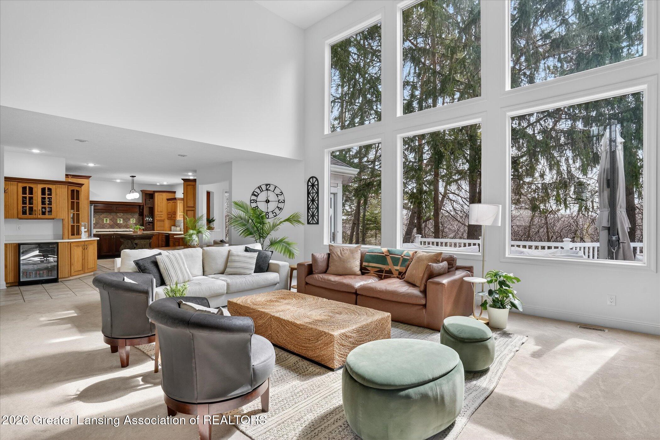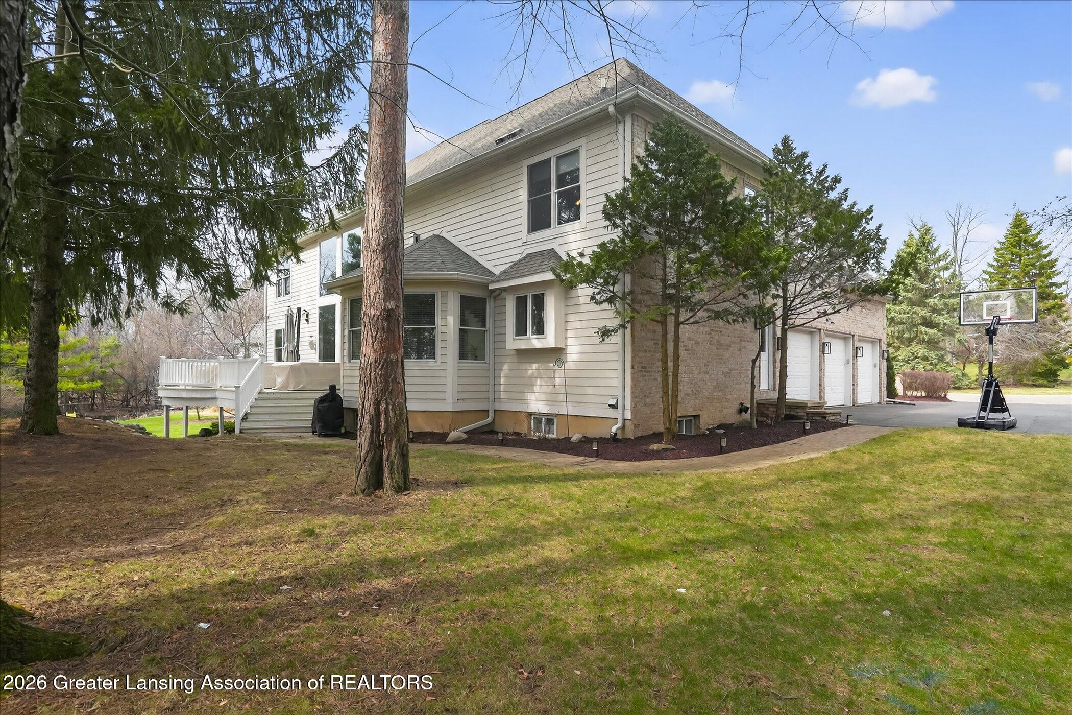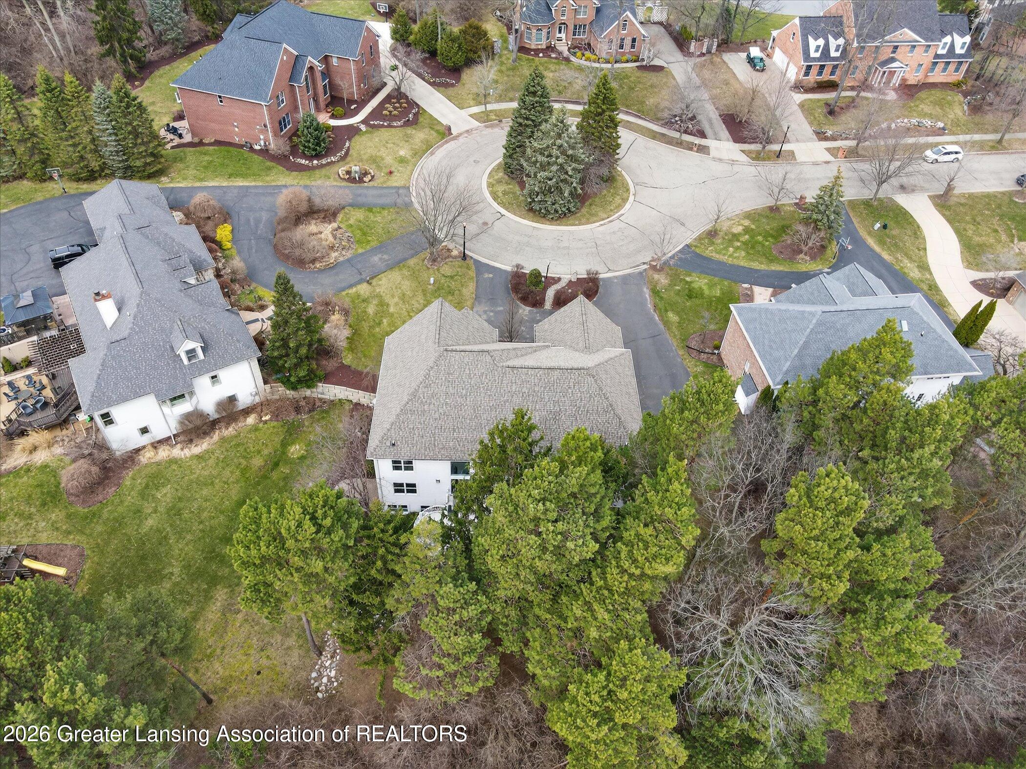 6 bedrooms, 5.5 bathrooms and almost 7000 square feet of living space! Welcome to 6384 Ridgepond Place - this stunning executive style residence is nestled on over half an acre in the highly sought-after Whilehills Woods neighborhood. From the moment you arrive, the circle driveway, mature landscaping, and striking curb appeal set the tone for everything this exceptional home has to offer. Step inside to a dramatic two-story foyer that flows seamlessly into a sun-drenched great room anchored by a fireplace and soaring floor-to-ceiling windows that bathe the space in natural light. Tasteful, updated paint throughout gives the home a fresh, move-in ready feel from day one. The chefs kitchen is centered around a large granite island perfect for gatherings large and small, while the generously sized dining room provides a perfect setting for formal occasions. A rare and highly desirable first-floor guest ensuite with a private bathroom offers comfort and privacy for visitors or multi-generational living or even a home office. Upstairs, retreat to a truly spectacular primary suite complete with a spa-inspired ensuite bathroom, an additional fireplace, and an expansive walk-in closet. Three additional generously sized bedrooms each enjoy their own private bathroom and dedicated closet access, making this home as functional as it is impressive. The finished walkout lower level extends your living space even further, featuring a sixth bedroom, a spacious family room, an additional kitchen, a full bathroom, and a show stopping 100-bottle wine cellar. Outside, enjoy your private lot from the maintenance-free deck, surrounded by lush, mature landscaping that provides a serene and secluded backdrop year-round. The three-car garage adds practicality to match the homes elegance. Major updates provide true peace of mind: 2021 roof, updated water heater, and zoned heating throughout and more! Close to Haslett schools, MSU, downtown Lansing and major highway systems. This is executive living at its finest - schedule your private showing today!