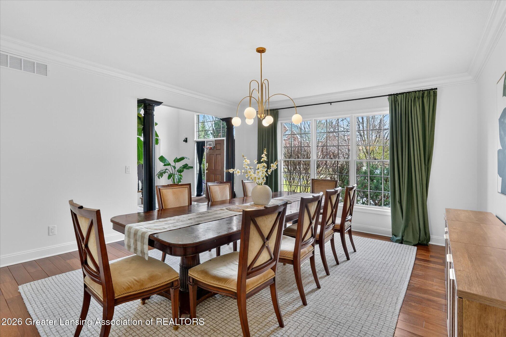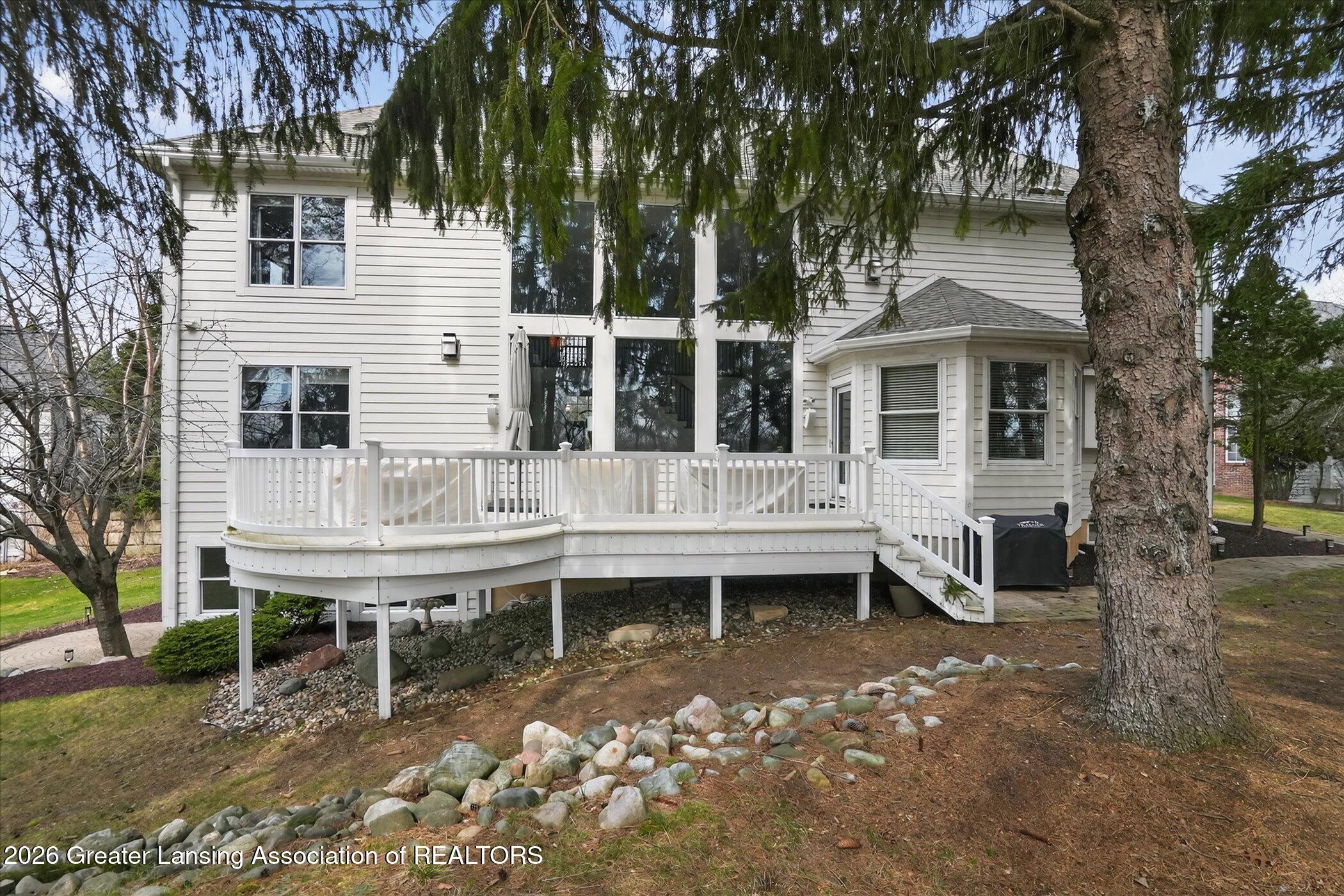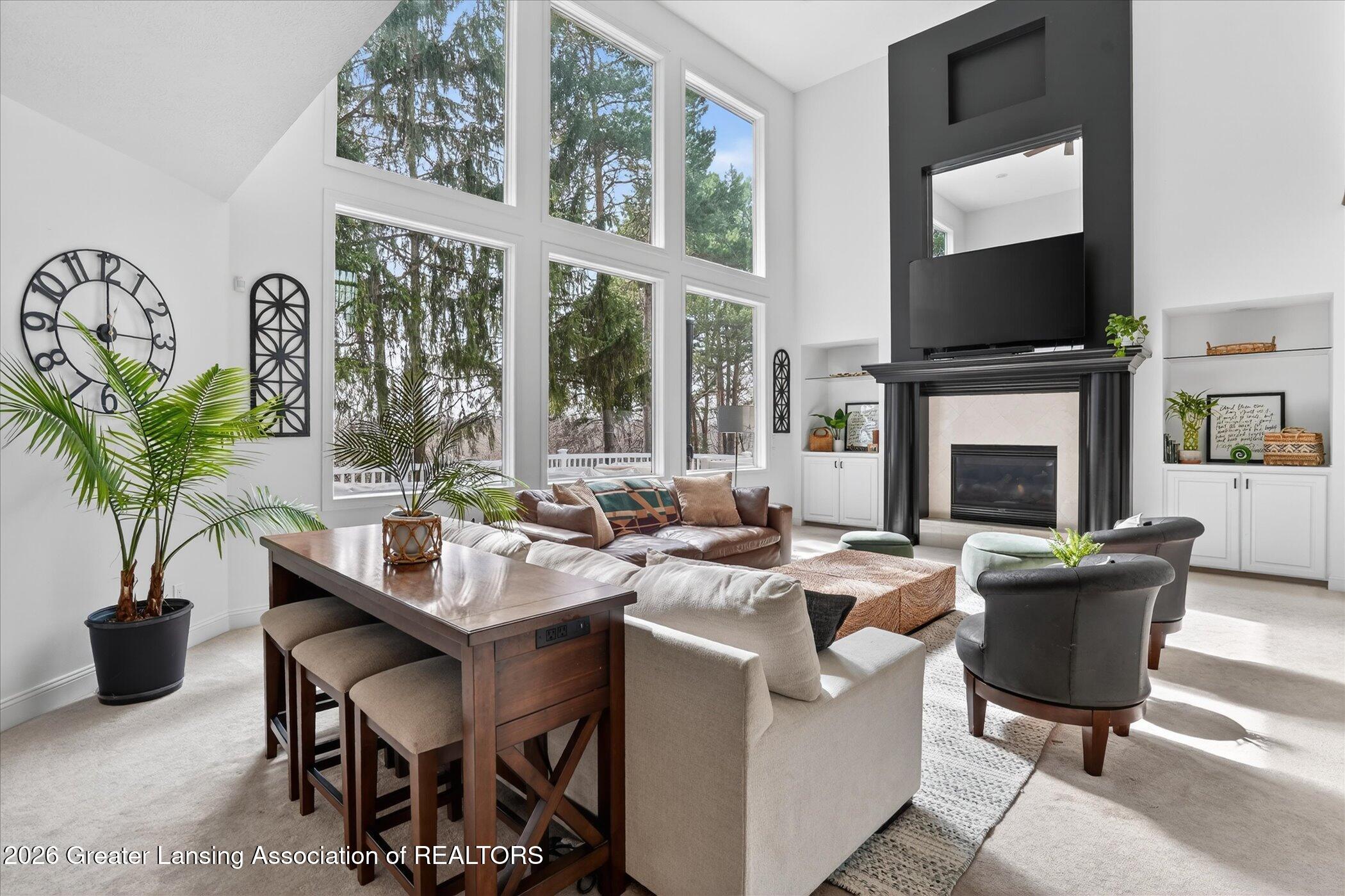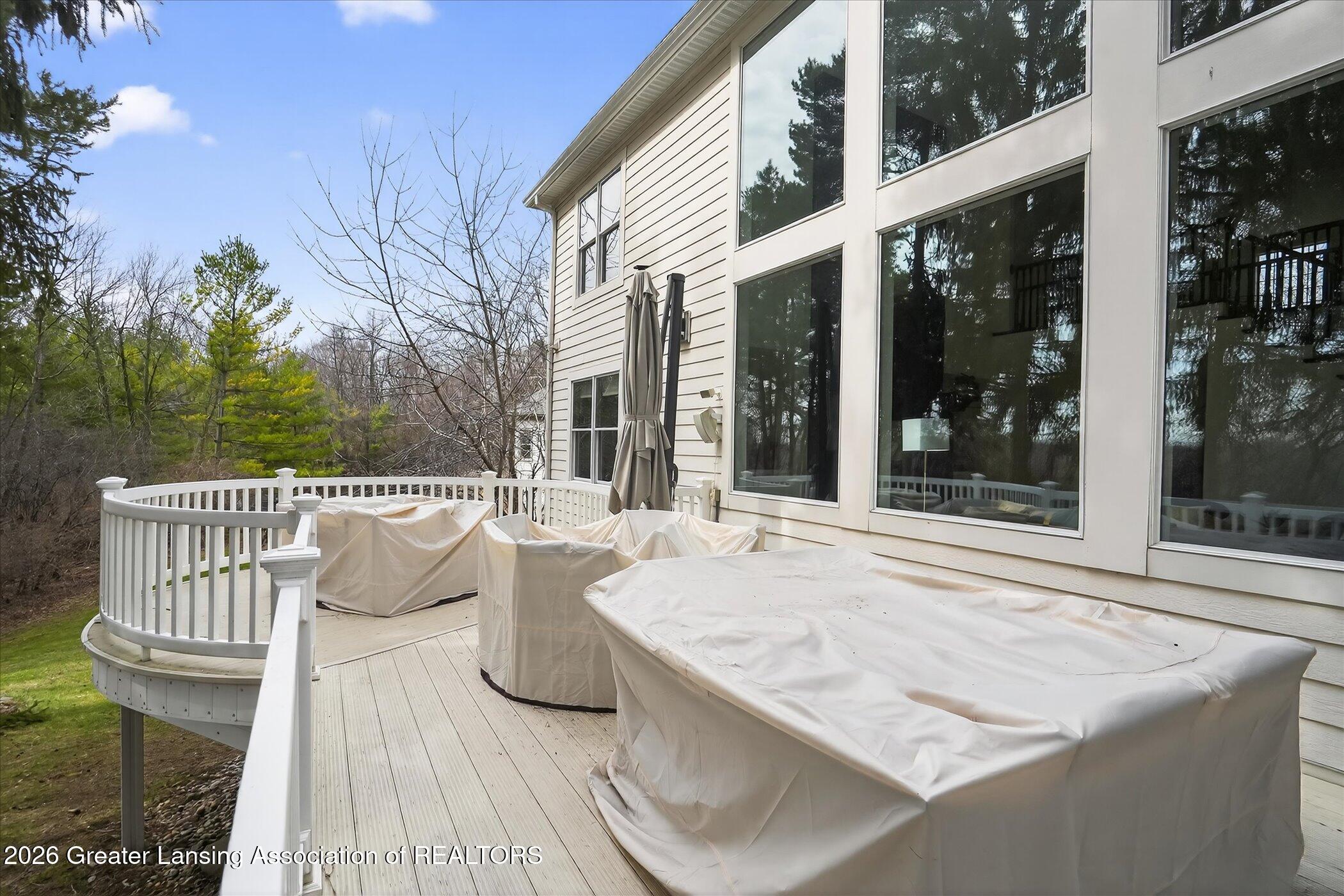 6 bedrooms, 5.5 bathrooms and almost 7000 square feet of living space! Welcome to 6384 Ridgepond Place - this stunning executive style residence is nestled on over half an acre in the highly sought-after Whilehills Woods neighborhood. From the moment you arrive, the circle driveway, mature landscaping, and striking curb appeal set the tone for everything this exceptional home has to offer. Step inside to a dramatic two-story foyer that flows seamlessly into a sun-drenched great room anchored by a fireplace and soaring floor-to-ceiling windows that bathe the space in natural light. Tasteful, updated paint throughout gives the home a fresh, move-in ready feel from day one. The chefs kitchen is centered around a large granite island perfect for gatherings large and small, while the generously sized dining room provides a perfect setting for formal occasions. A rare and highly desirable first-floor guest ensuite with a private bathroom offers comfort and privacy for visitors or multi-generational living or even a home office. Upstairs, retreat to a truly spectacular primary suite complete with a spa-inspired ensuite bathroom, an additional fireplace, and an expansive walk-in closet. Three additional generously sized bedrooms each enjoy their own private bathroom and dedicated closet access, making this home as functional as it is impressive. The finished walkout lower level extends your living space even further, featuring a sixth bedroom, a spacious family room, an additional kitchen, a full bathroom, and a show stopping 100-bottle wine cellar. Outside, enjoy your private lot from the maintenance-free deck, surrounded by lush, mature landscaping that provides a serene and secluded backdrop year-round. The three-car garage adds practicality to match the homes elegance. Major updates provide true peace of mind: 2021 roof, updated water heater, and zoned heating throughout and more! Close to Haslett schools, MSU, downtown Lansing and major highway systems. This is executive living at its finest - schedule your private showing today!