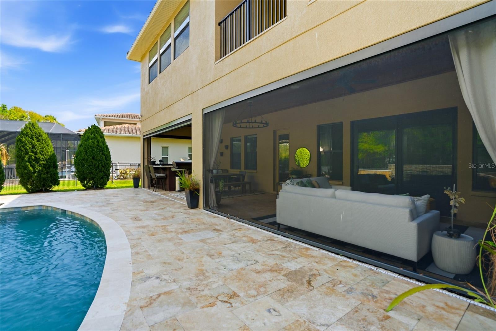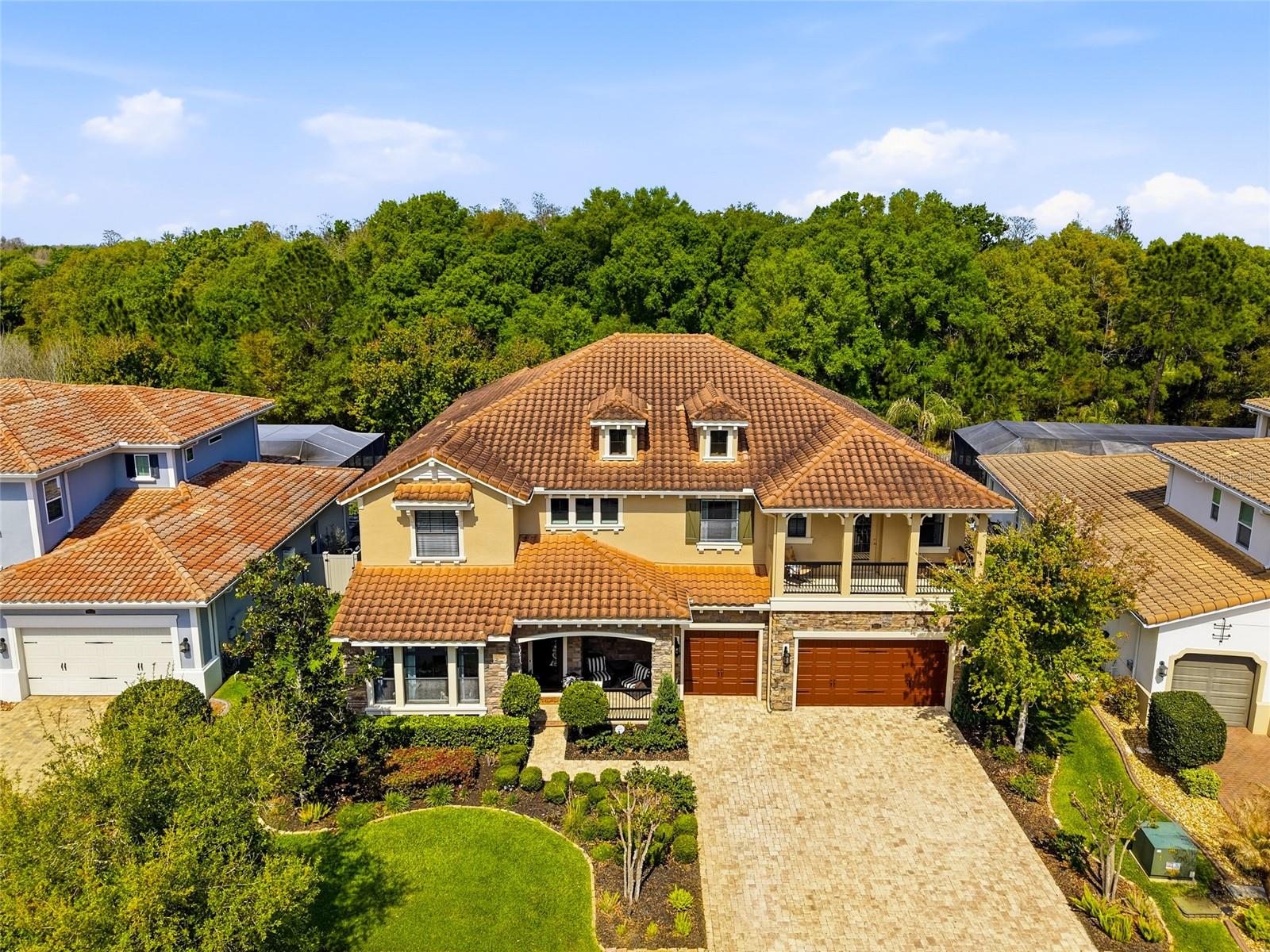 Welcome to an exceptional luxury residence in the heart of Wesley Chapel, where refined design meets the very best of the Florida lifestyle. Perfectly positioned on a premium conservation homesite within the prestigious gated community of Estancia. This stunning Standard Pacific European Cottage-style Barrington model offers a rare blend of privacy, natural beauty, and upscale living.Spanning over 5,600 square feet, this impressive home welcomes you with a grand two-story foyer and sweeping semi-circular staircase, setting the tone for the elegance found throughout. This expansive open-concept layout, where natural light highlights upgraded flooring, designer finishes, and a sophisticated, cohesive design.At the heart of the home, the gourmet kitchen is both functional and striking featuring an oversized island, premium cabinetry, granite countertops, Samsung stainless steel appliances, a 5-burner gas cooktop, and a beautifully appointed butlers pantry with wine bar. The kitchen flows effortlessly into the spacious 18x20 family room, creating the perfect setting for everyday living and entertaining.Step outside to experience true Florida luxury. A lanai overlooks your private outdoor oasis, complete with a saltwater pool elegant water features, expansive travertine decking. All while backing to serene conservation views for ultimate privacy.The home offers 6 bedrooms, 4.5 bathrooms, and a 3-car garage, providing ample space for family and guests. Upstairs, the luxurious owners retreat spans over 600 square feet, featuring a spacious 20x18 bedroom, a spa-inspired bath with a standalone soaking tub, oversized walk-in shower with dual showerheads, and two separate California-style walk-in closets connected by a private dressing room. A covered balcony just off the suite offers peaceful views of the resort style pool and surrounding nature.Located just minutes from top-rated schools, premier shopping, dining, and major highways, this home delivers both convenience and tranquility in one of Wesley Chapels most sought-after communities.This is more than a home its a lifestyle. Schedule your private showing today.