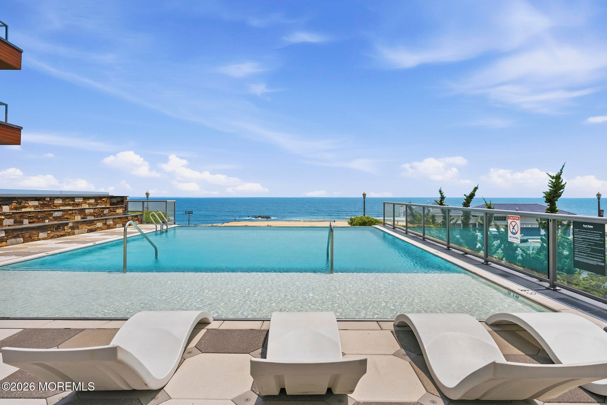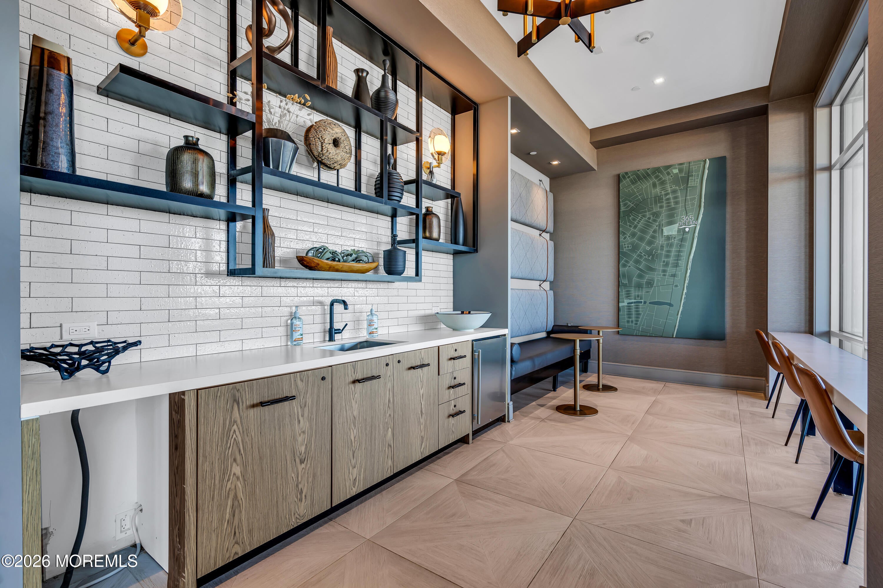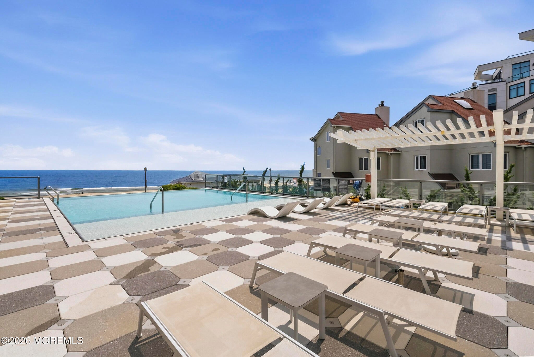 Welcome to 365 Ocean, a premier oceanfront address in Long Branch, perfectly positioned along the boardwalk just moments from Pier Village. This sophisticated 2-bedroom, 2-bath residence with an additional den (which provides space to be an office or a perfect guest room) offers approximately 1,650 square feet of thoughtfully designed living space.From the moment you enter, youre greeted by high ceilings and a bright, airy layout enhanced by oversized windows that capture abundant natural light. The open-concept living and dining areas create an effortless flow, ideal for both everyday living and entertaining. The well-appointed kitchen connects seamlessly to the main living space offering gorgeous oceanviews, while the generously sized bedrooms provide a peaceful retreat. Step outside to your private balcony and take in more stunning views and the coastal ambiance with refreshing ocean breezes. Residents of 365 Ocean enjoy a full-service lifestyle with luxury amenities, including an infinity-edge pool overlooking the ocean, an outdoor cabana, oceanfront lounge, fire-pit, two dedicated garage parking spaces for ultimate convenience & the unparalleled luxury of oceanfront living. All of this is set within steps from the sand, boardwalk, and the renowned dining and shopping destinations of Pier Village. A must see condo, call today!