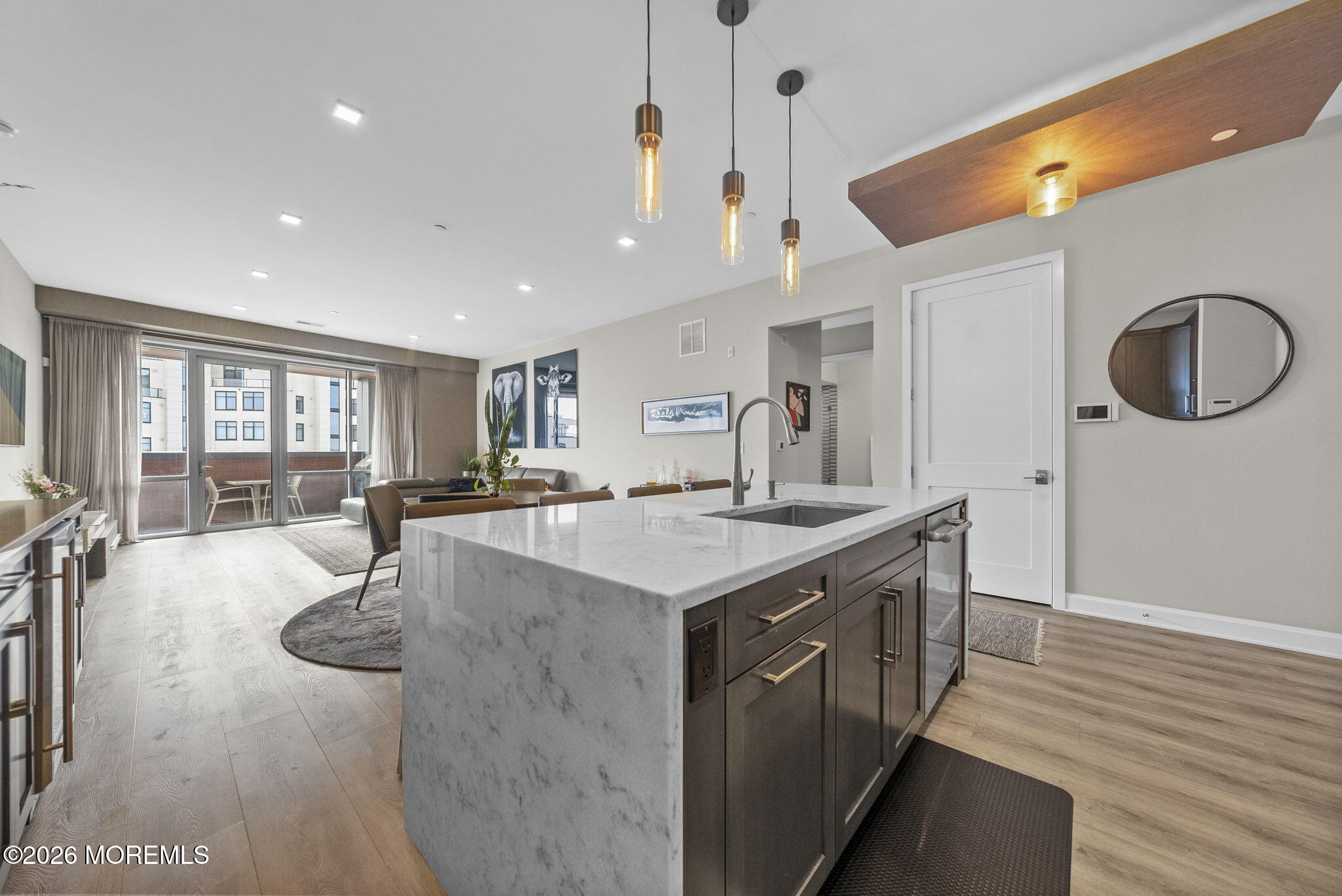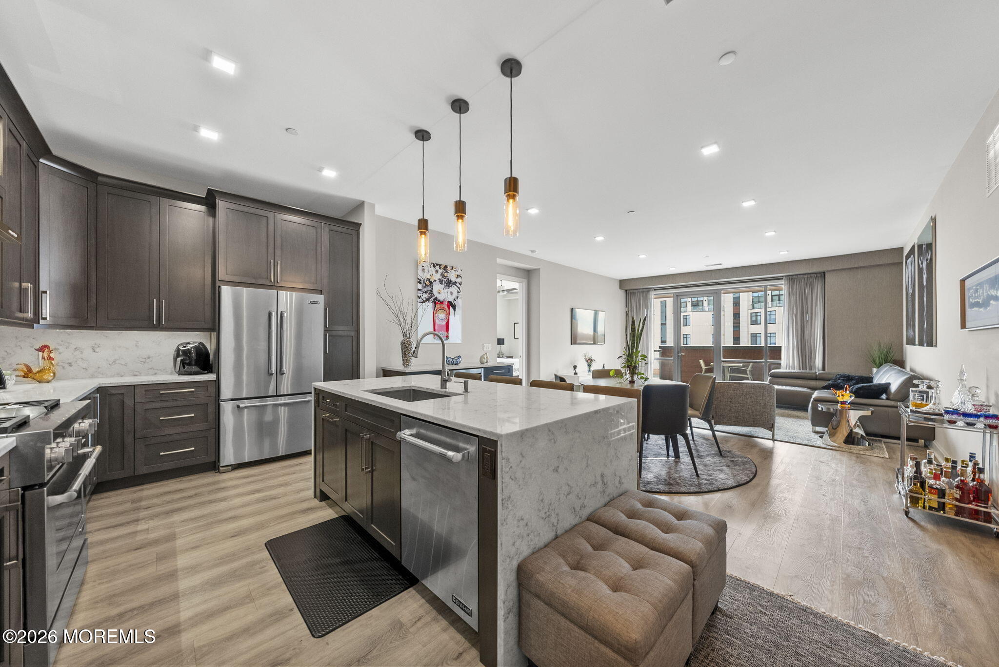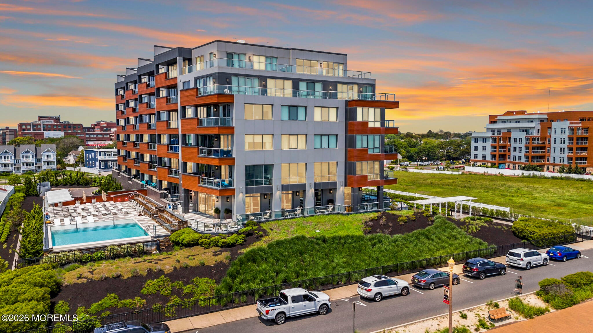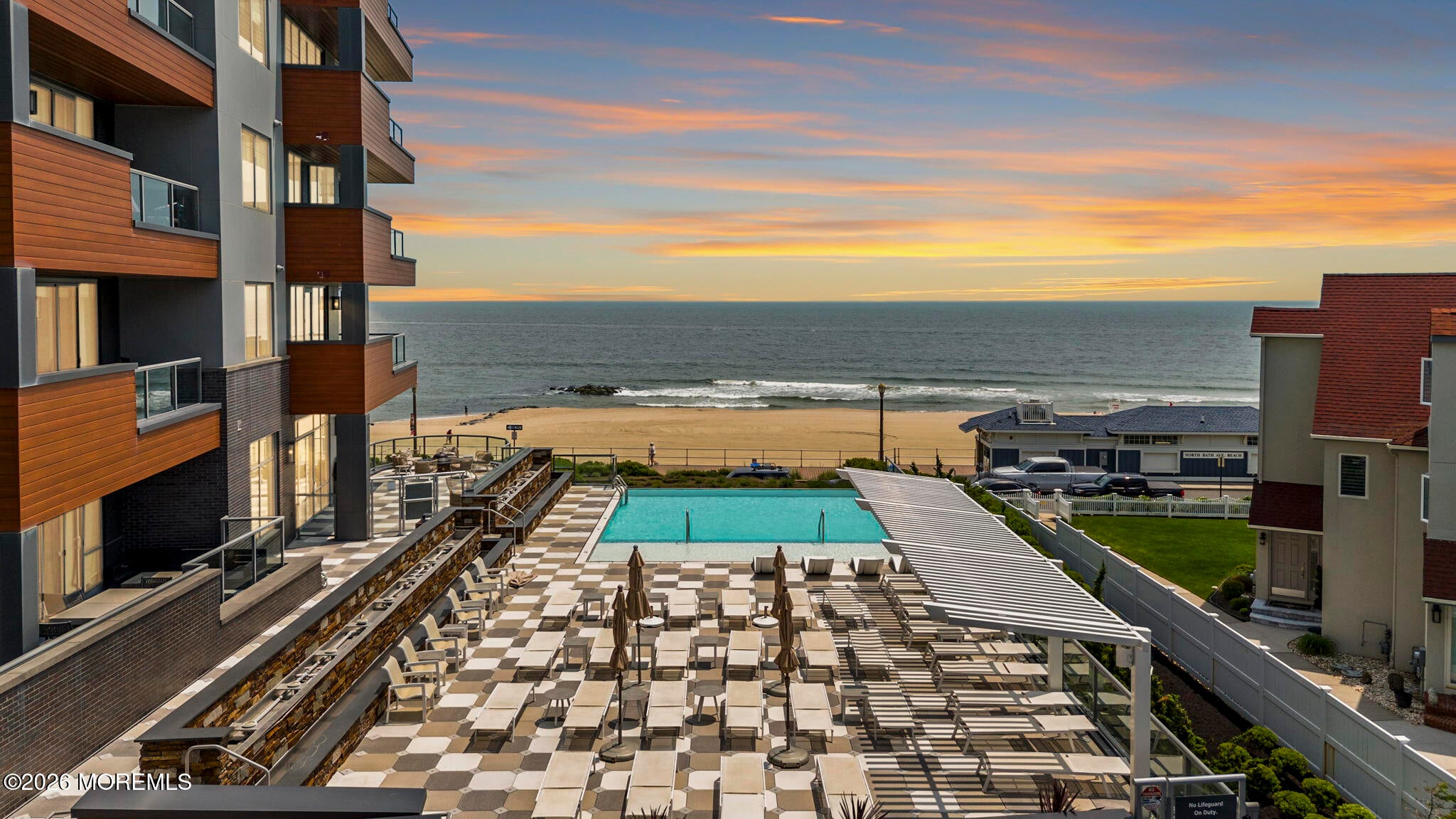 Welcome to 365 Ocean, a premier oceanfront address in Long Branch, perfectly positioned along the boardwalk just moments from Pier Village. This sophisticated 2-bedroom, 2-bath residence with an additional den (which provides space to be an office or a perfect guest room) offers approximately 1,650 square feet of thoughtfully designed living space.From the moment you enter, youre greeted by high ceilings and a bright, airy layout enhanced by oversized windows that capture abundant natural light. The open-concept living and dining areas create an effortless flow, ideal for both everyday living and entertaining. The well-appointed kitchen connects seamlessly to the main living space offering gorgeous oceanviews, while the generously sized bedrooms provide a peaceful retreat. Step outside to your private balcony and take in more stunning views and the coastal ambiance with refreshing ocean breezes. Residents of 365 Ocean enjoy a full-service lifestyle with luxury amenities, including an infinity-edge pool overlooking the ocean, an outdoor cabana, oceanfront lounge, fire-pit, two dedicated garage parking spaces for ultimate convenience & the unparalleled luxury of oceanfront living. All of this is set within steps from the sand, boardwalk, and the renowned dining and shopping destinations of Pier Village. A must see condo, call today!