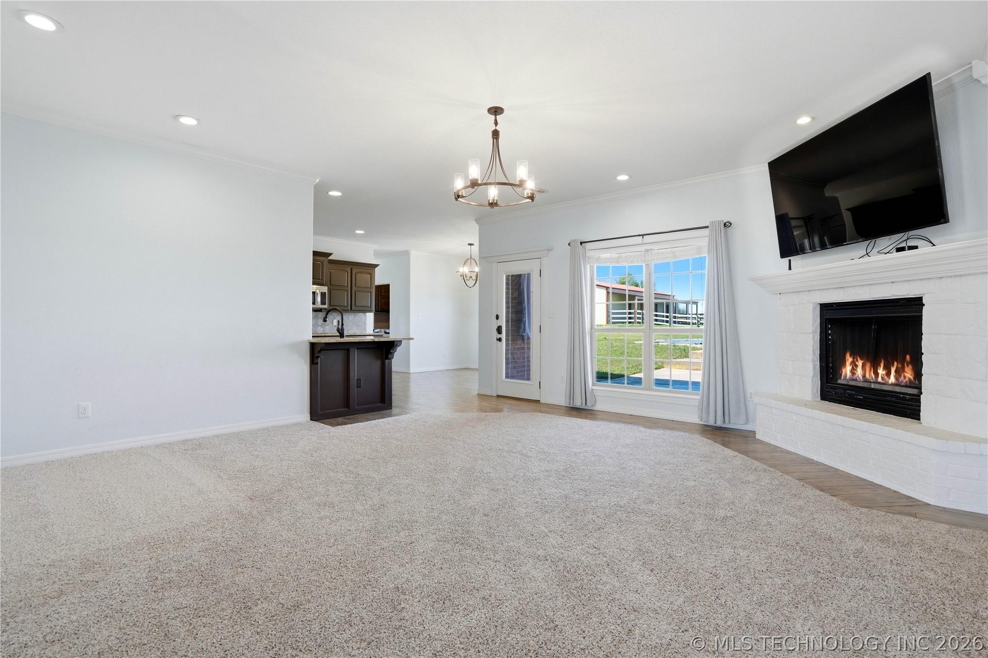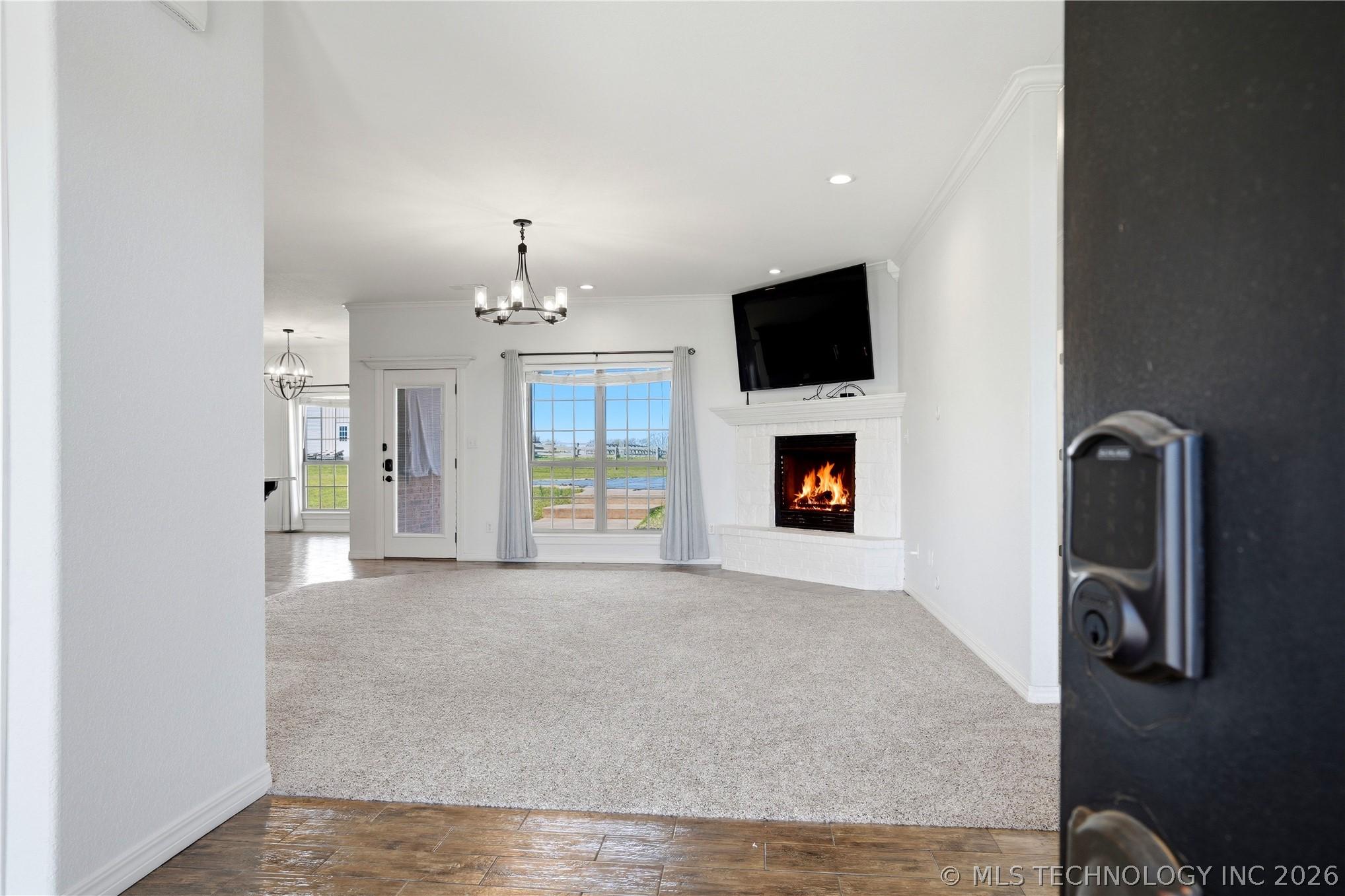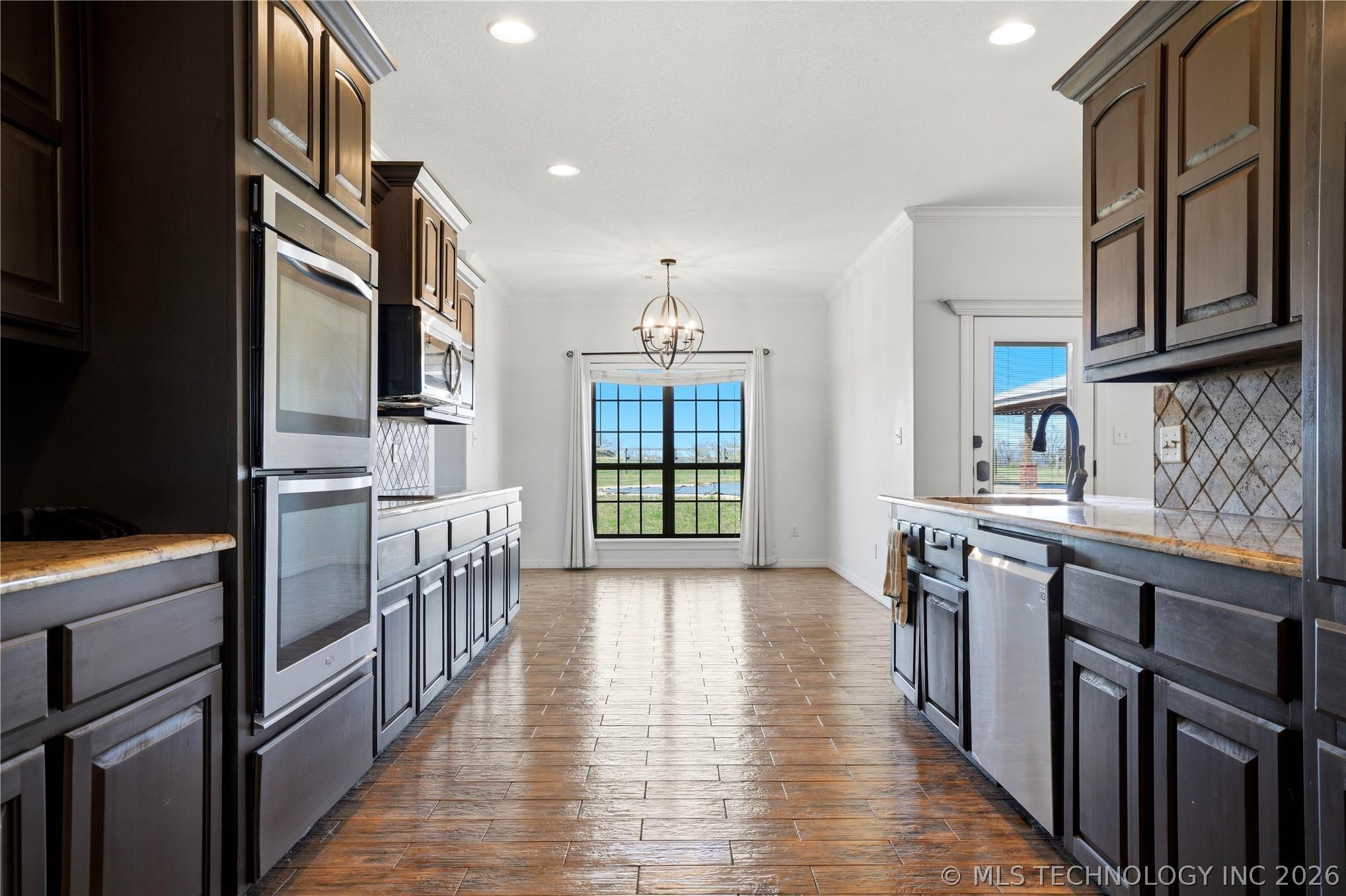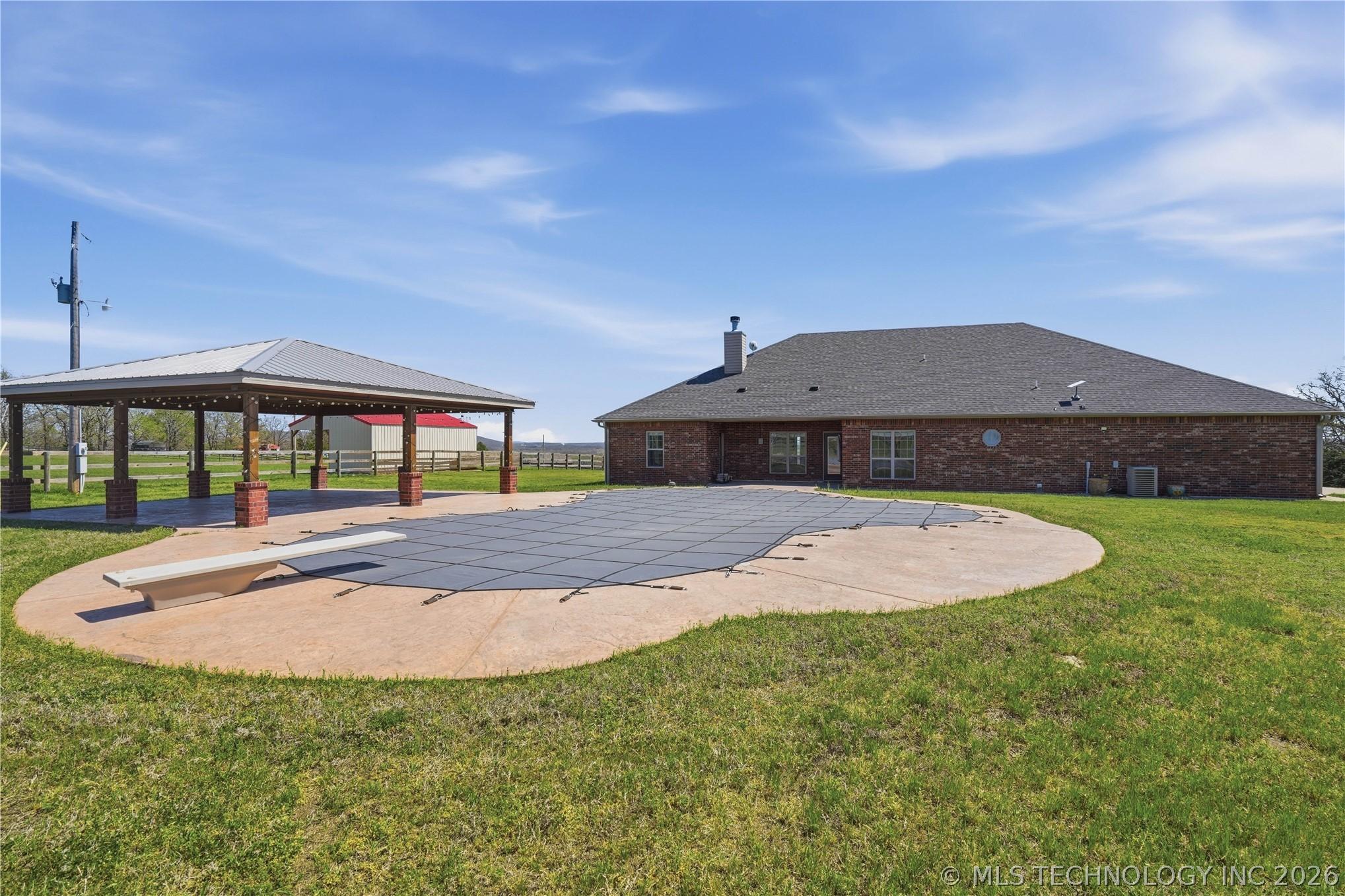 Your dream hobby horse ranch awaits on 21 acres where you wake up to breathtaking views that stretch for miles. The meticulously maintained, 4 bed, 2 bath home is move-in ready. The kitchen features a Wolf induction cooktop and a new smart refrigerator with tap-to-view technology. Gather in the eat-in kitchen for casual meals or host guests in the formal dining room. Fresh carpeting and natural look, hewn-style wood flooring flow throughout. An oversized 3 stall attached garage provides ample space for large trucks, cars, toys and storage. Step out back to your private oasis - an in-ground pool with a high-tech self-cleaning system and a spacious gazebo for entertaining. The property boasts a 40x60 horse barn with 2 stalls, built in 2023, with exterior-access doors, and a 10 foot lean-to running the full 60 foot length. Theres a 60x160 outdoor arena. Pipe & wood fencing with cross fencing and gates throughout the acreage. A 21x34 shop for equipment, built in 2024. A private lane leads to the back of the property where apprx 5 acres of woods for hunting and open space create an ideal setup for a private shooting range. Out front is a large pond with a dock for fishing! Just minutes to riding trails, dining, shopping and entertainment. Within a half mile to access I-40. 30 minutes to Ft Smith, 40 minutes to Muskogee and an hour and 20 minutes to Tulsa.