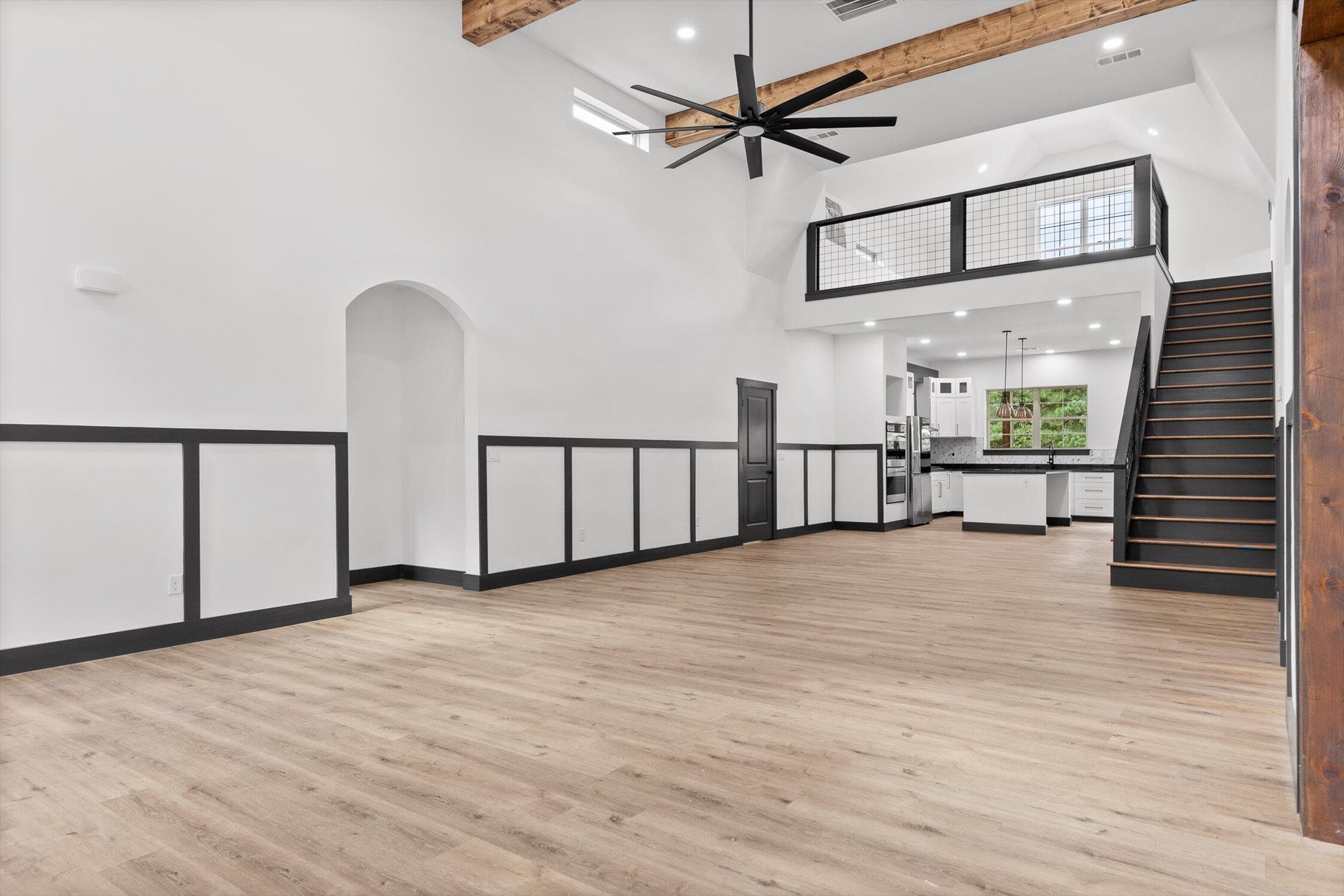 Welcome to this thoughtfully designed 3-bedroom, 2-bath modern farmhouse in Higdon, Alabama, offering a balance of clean design, comfort, and peaceful surroundings. Recently completed, this home features an open-concept layout with soaring ceilings, custom wood accents, and a fireplace that anchors the main living space.