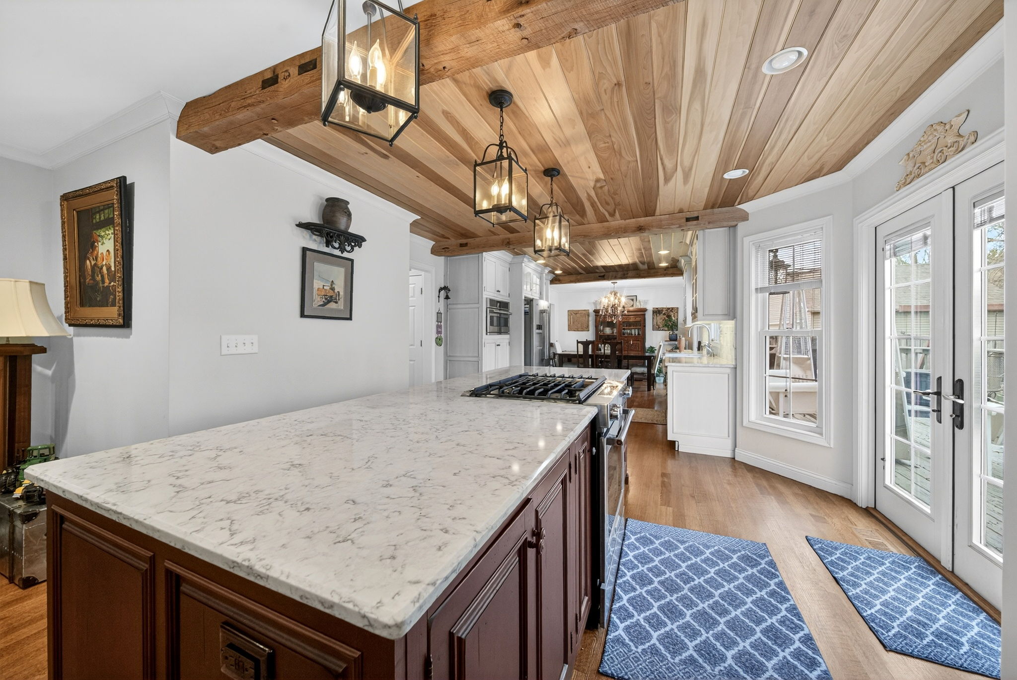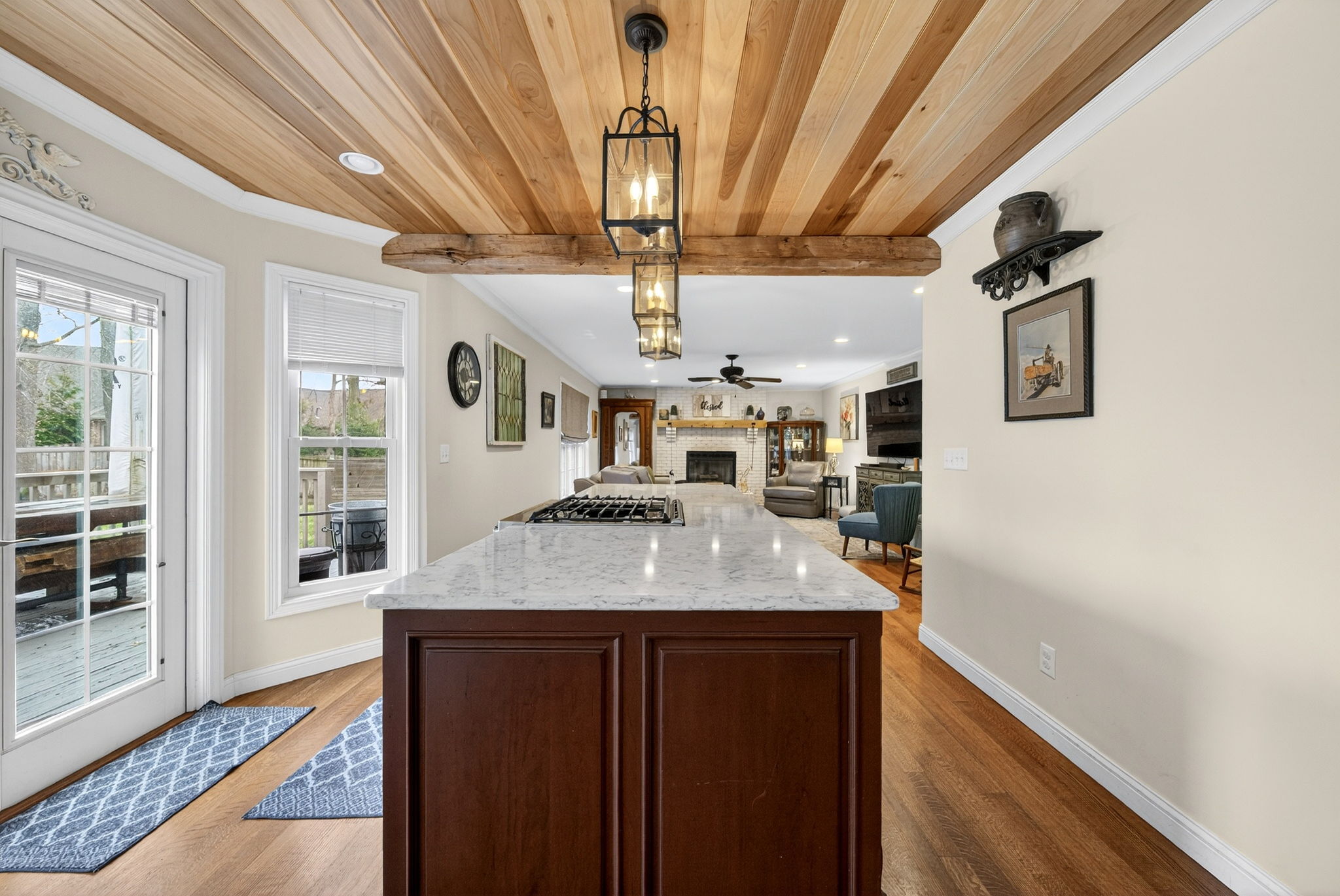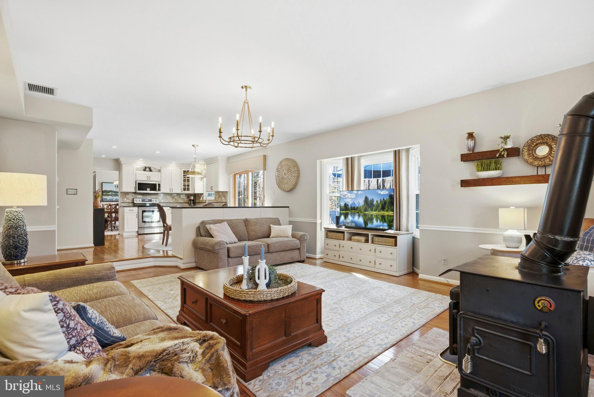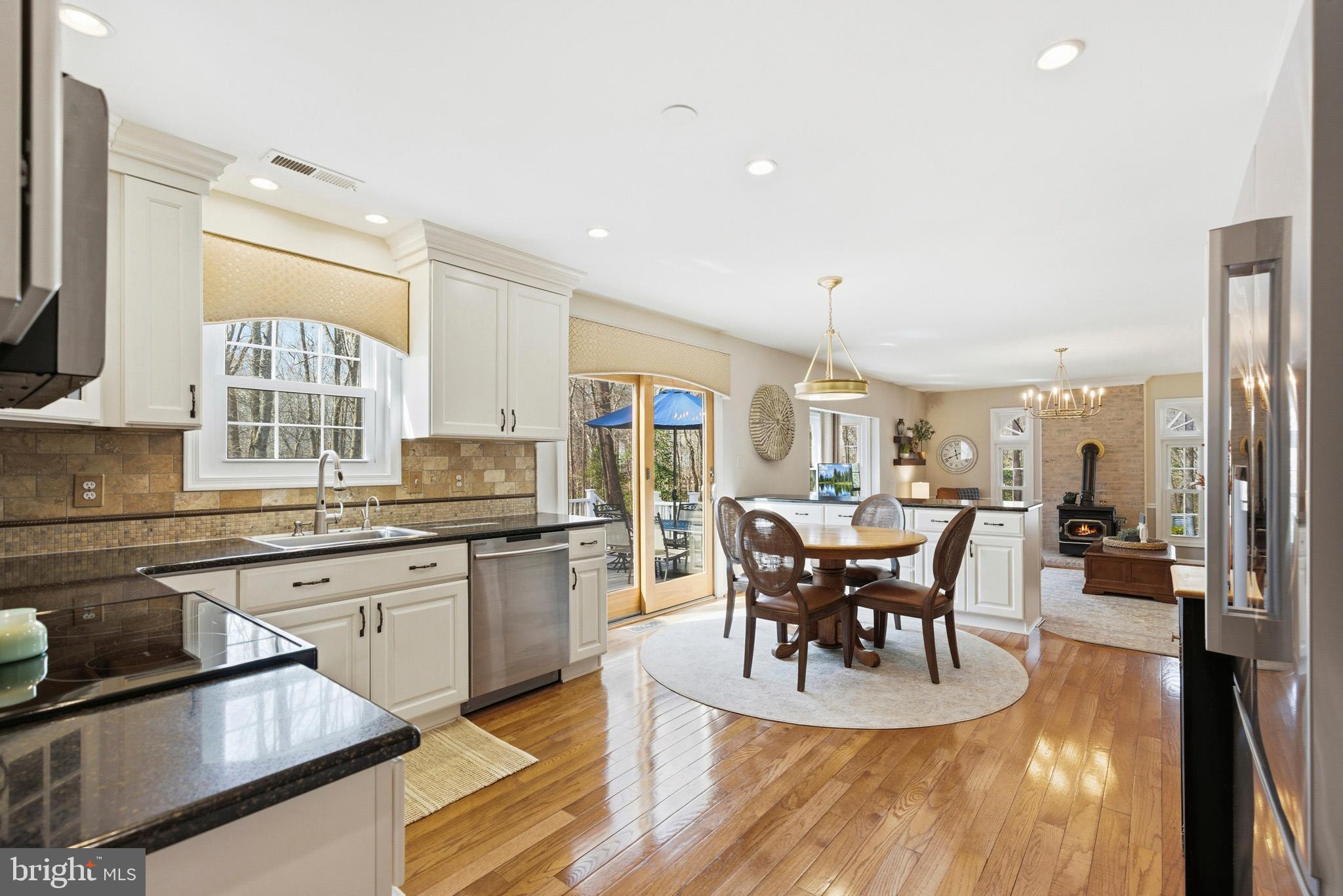 Beautiful and meticulously maintained home on over 2 private acres. The house boasts approx 3300 sq ft of finished space...perfect for entertaining! The main level features a spacious main level with a well-appointed kitchen and breakfast area overlooking a step down family room with wood stove.