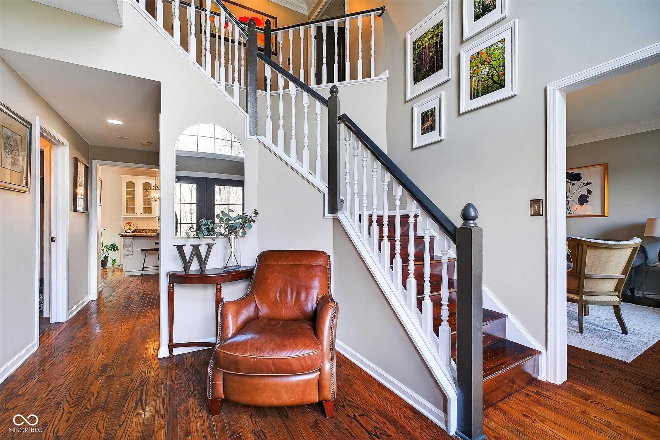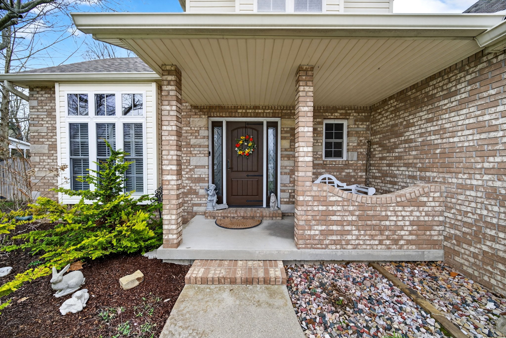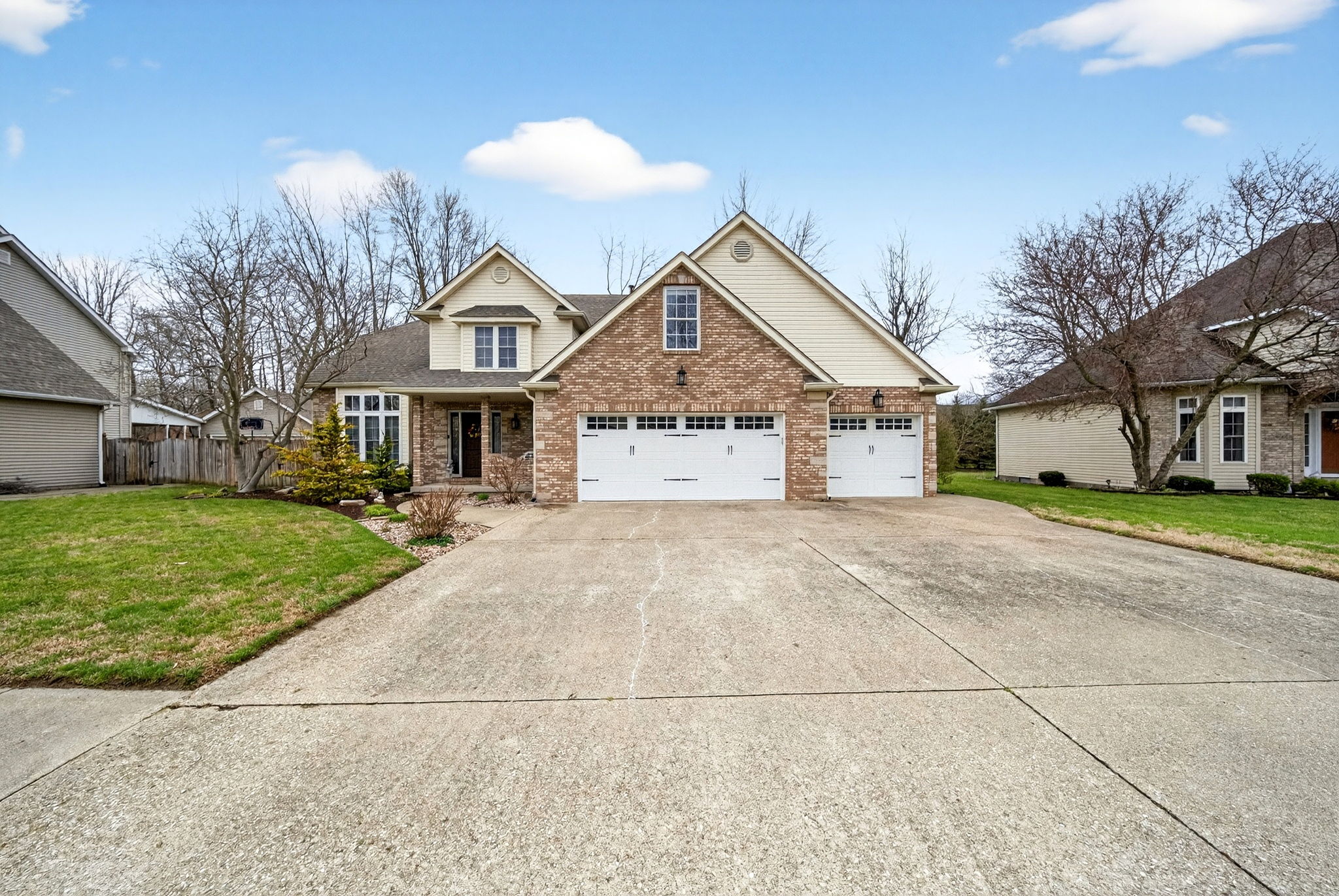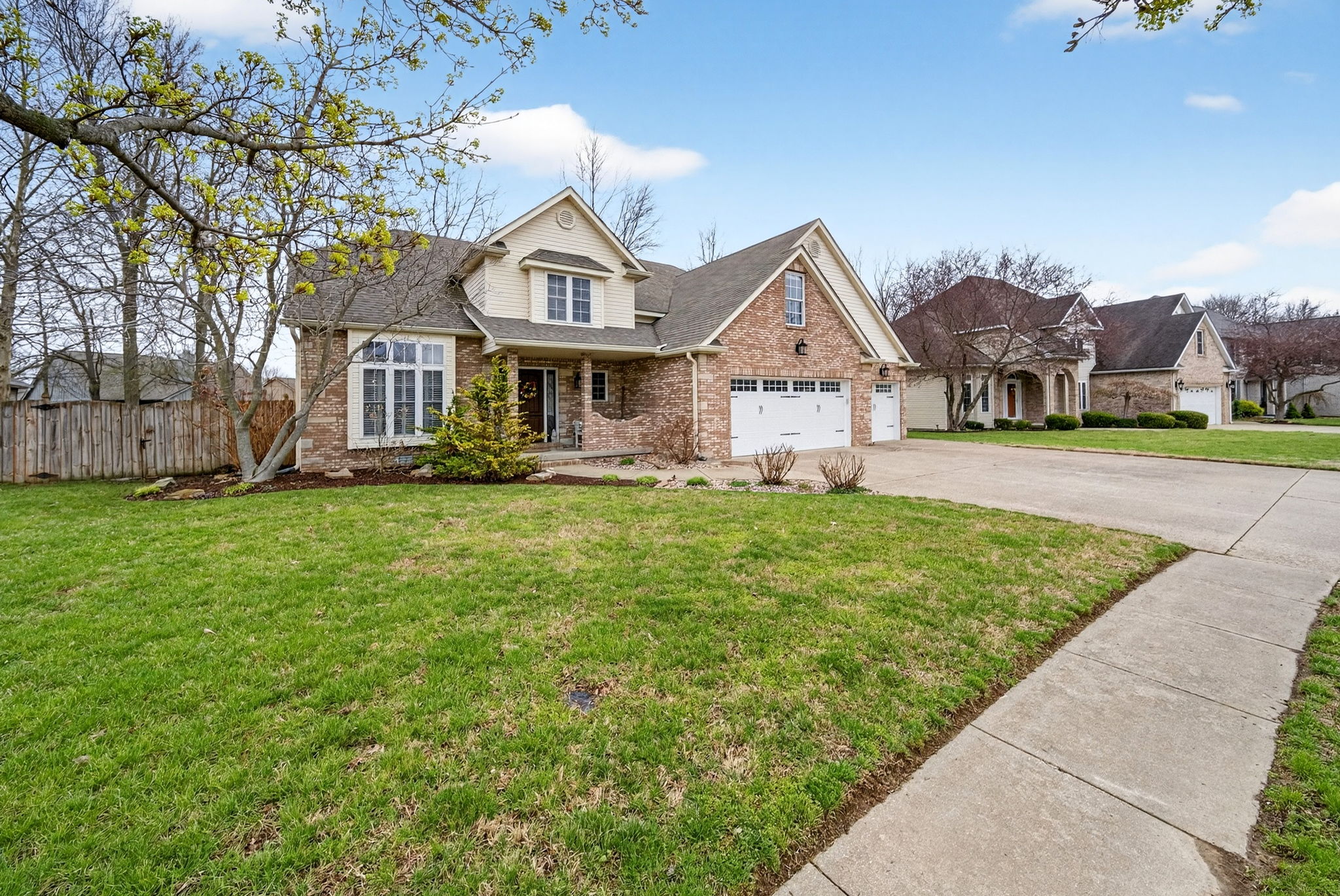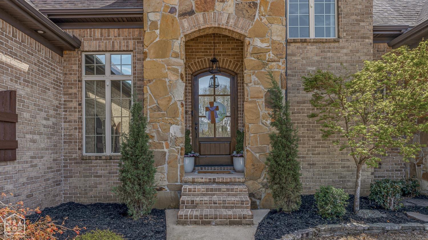 Timeless elegance meets modern comfort in this 4 bedroom, 3 1/2 bath home. You are greeted with elegant landscaping and stamped walkway that lead up to your stunning front door. A two-story foyer with hardwood stairs, black railing, and crown molding sets the tone, while the great room's cathedral ceiling and gas fireplace create a welcoming centerpiece.
