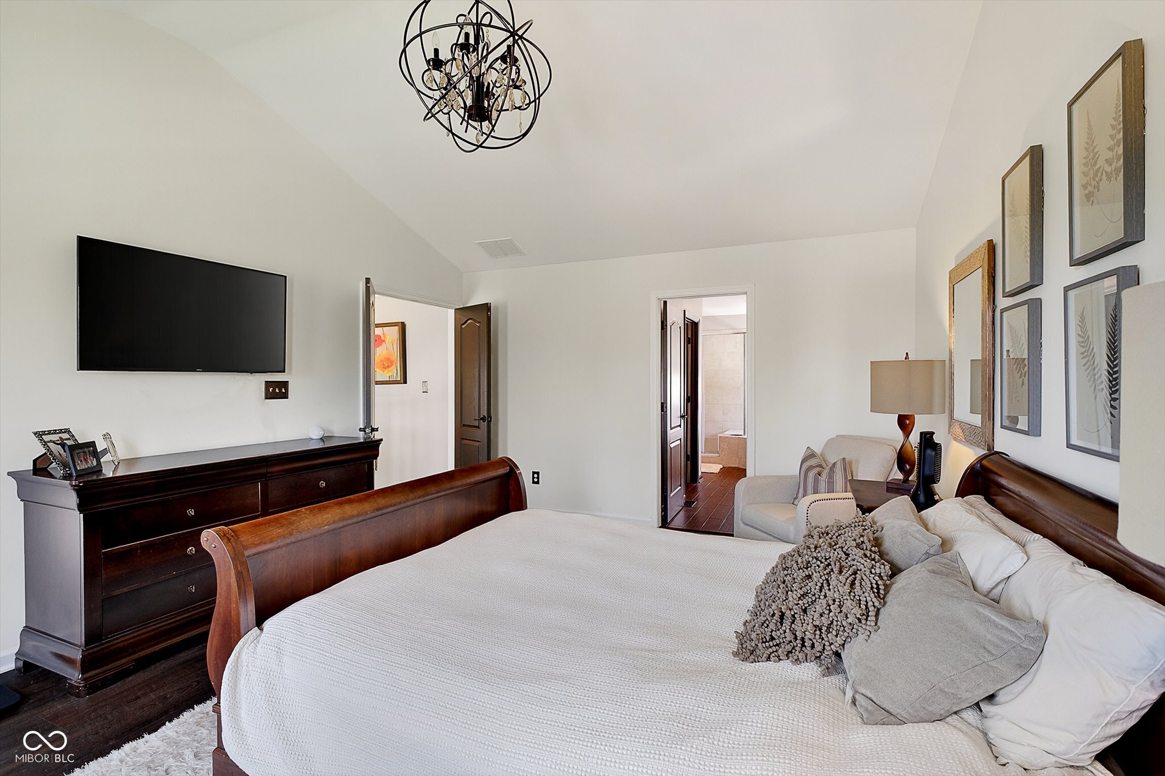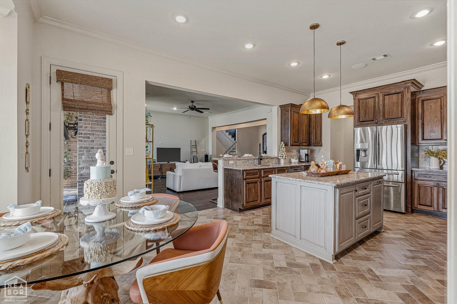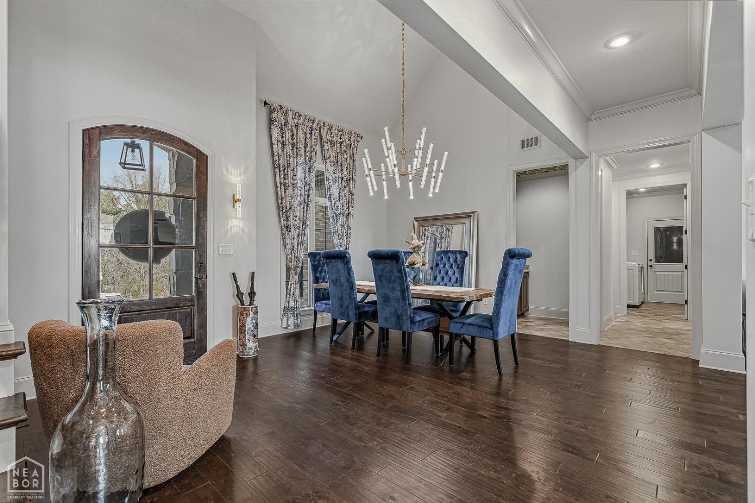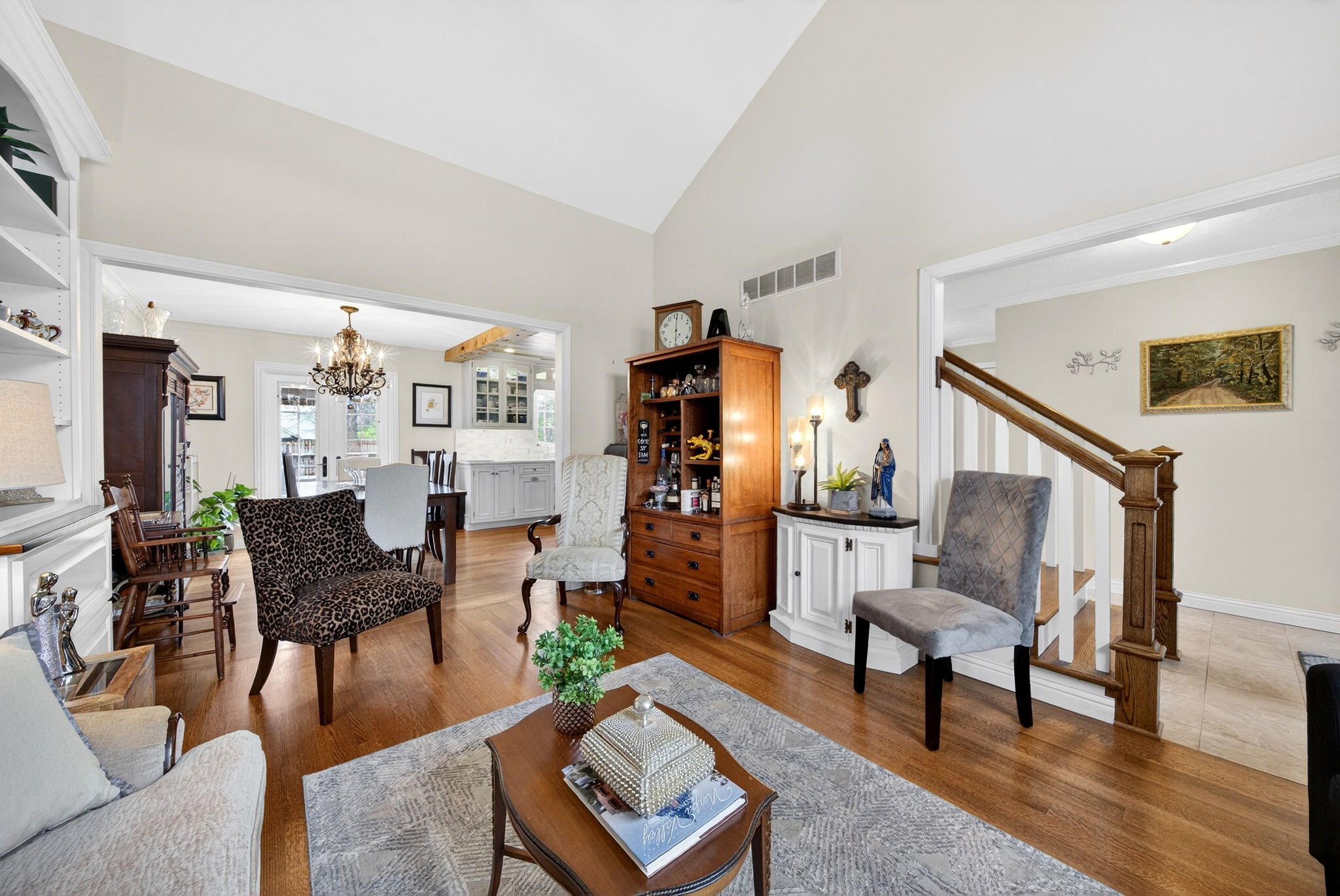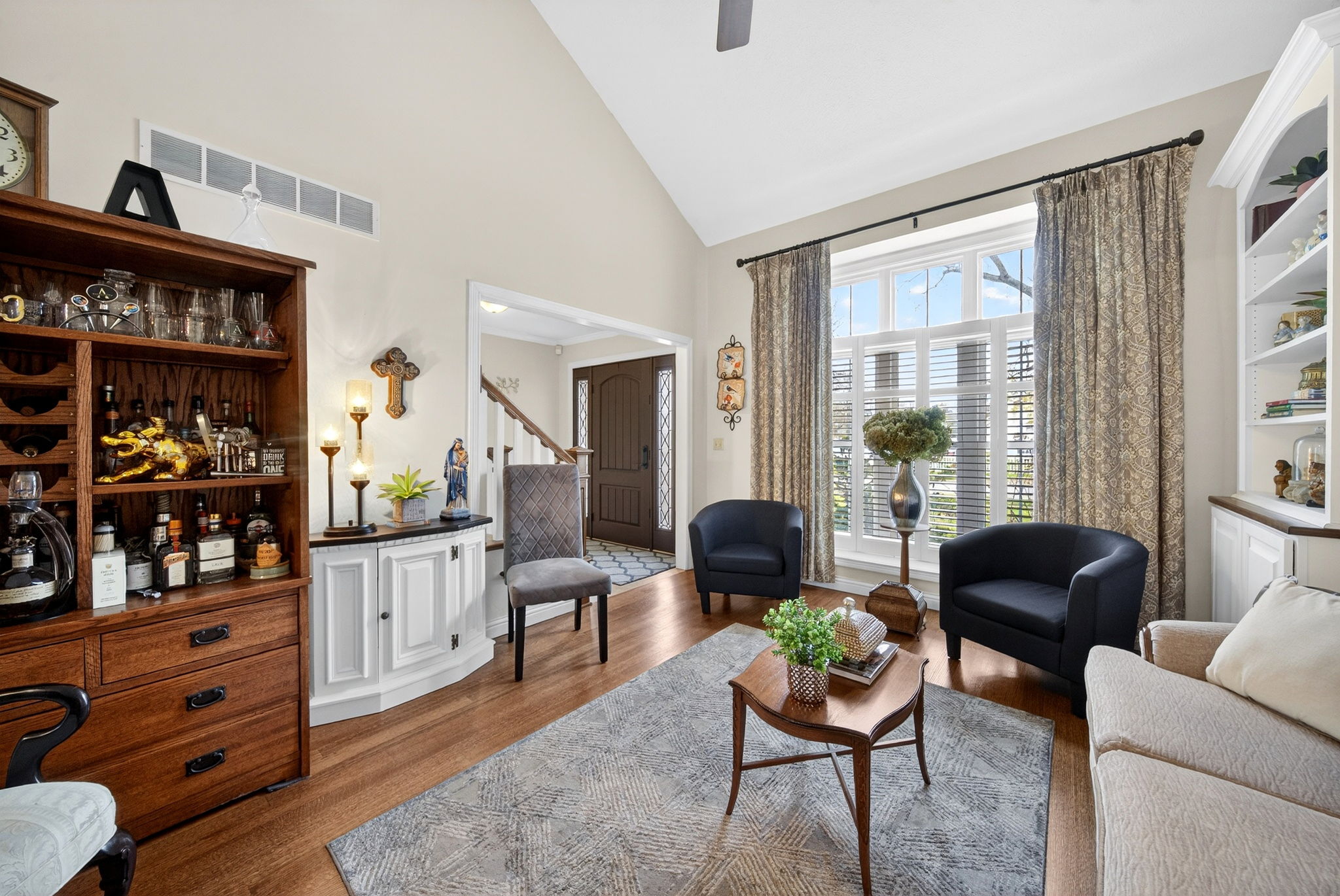 Timeless elegance meets modern comfort in this 4 bedroom, 3 1/2 bath home. You are greeted with elegant landscaping and stamped walkway that lead up to your stunning front door. A two-story foyer with hardwood stairs, black railing, and crown molding sets the tone, while the great room's cathedral ceiling and gas fireplace create a welcoming centerpiece.