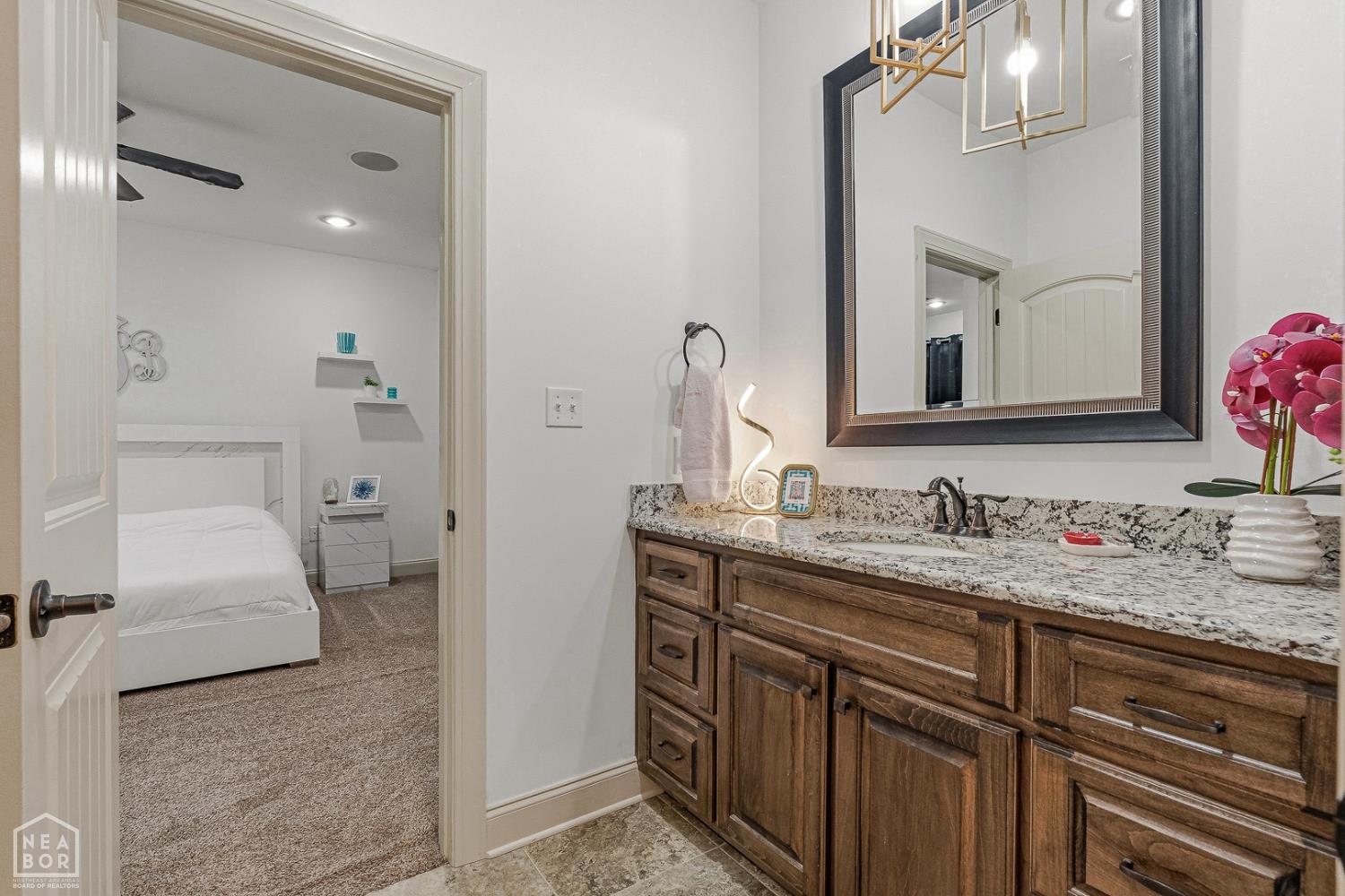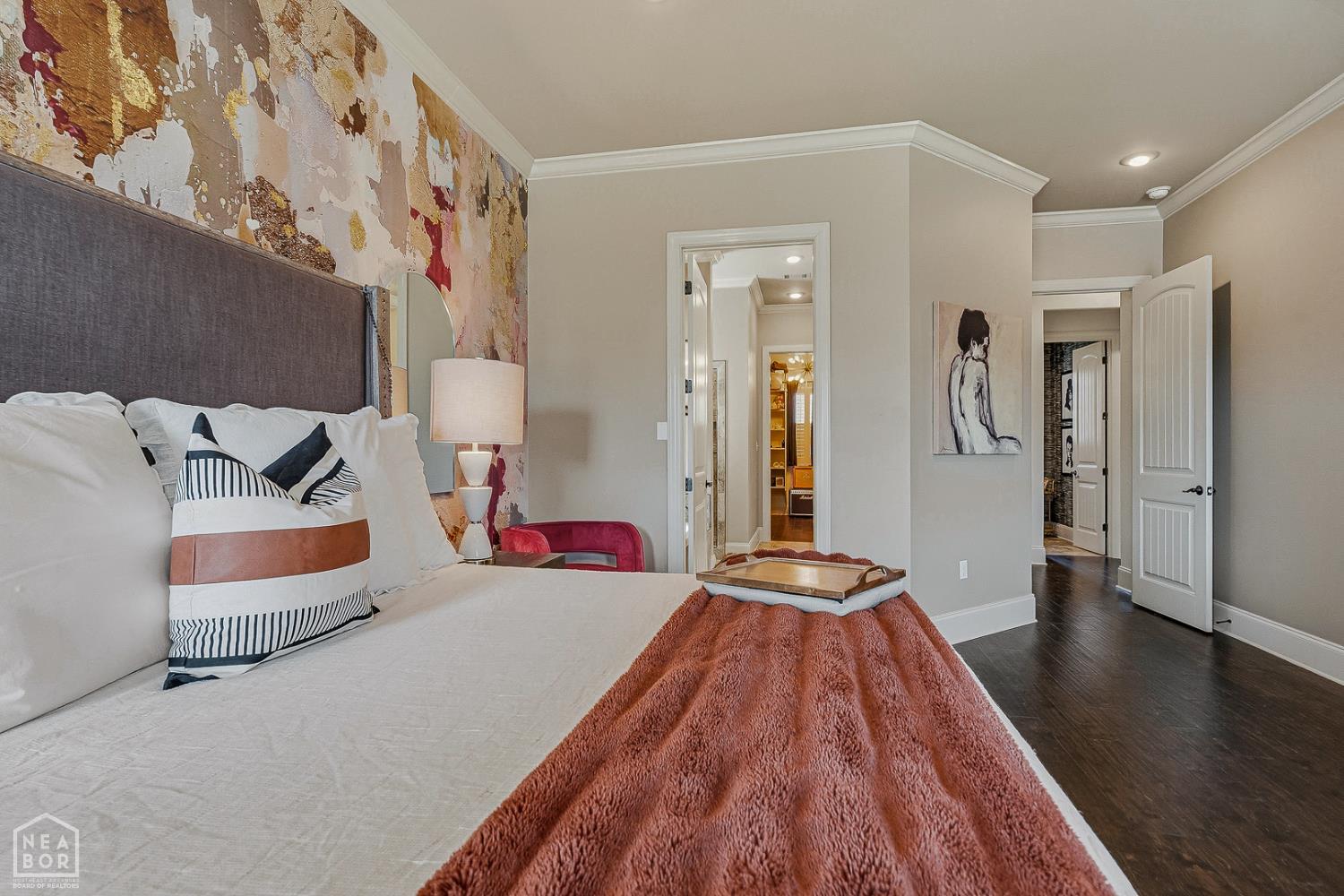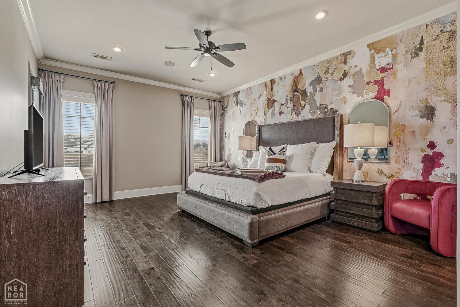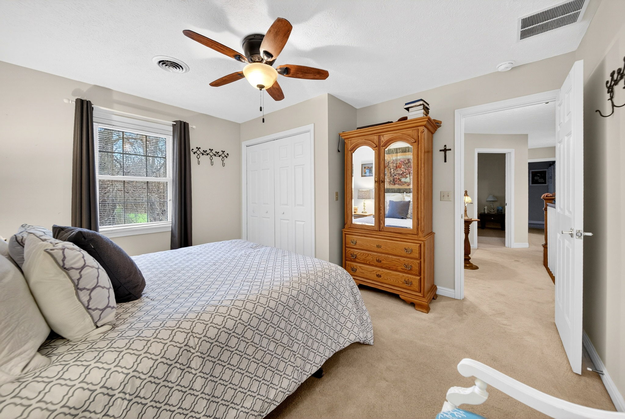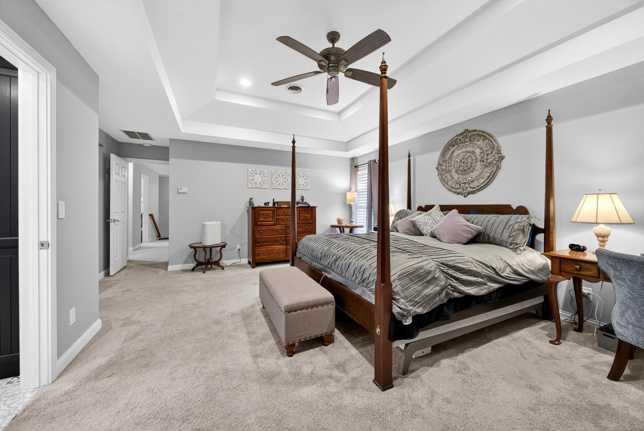 Timeless elegance meets modern comfort in this 4 bedroom, 3 1/2 bath home. You are greeted with elegant landscaping and stamped walkway that lead up to your stunning front door. A two-story foyer with hardwood stairs, black railing, and crown molding sets the tone, while the great room's cathedral ceiling and gas fireplace create a welcoming centerpiece.