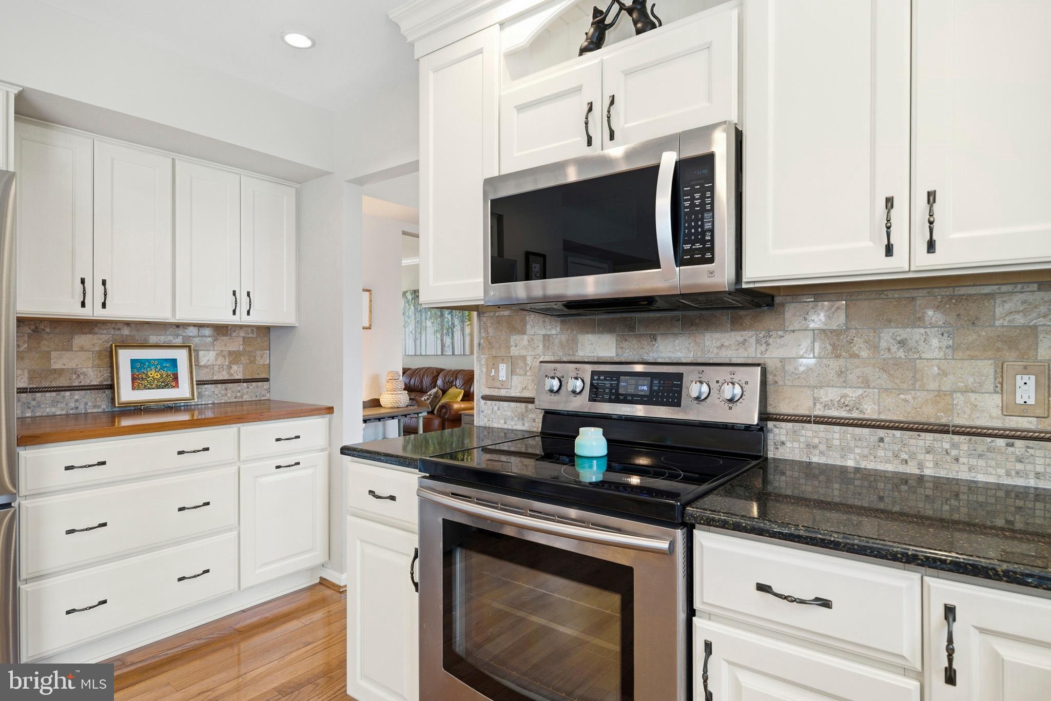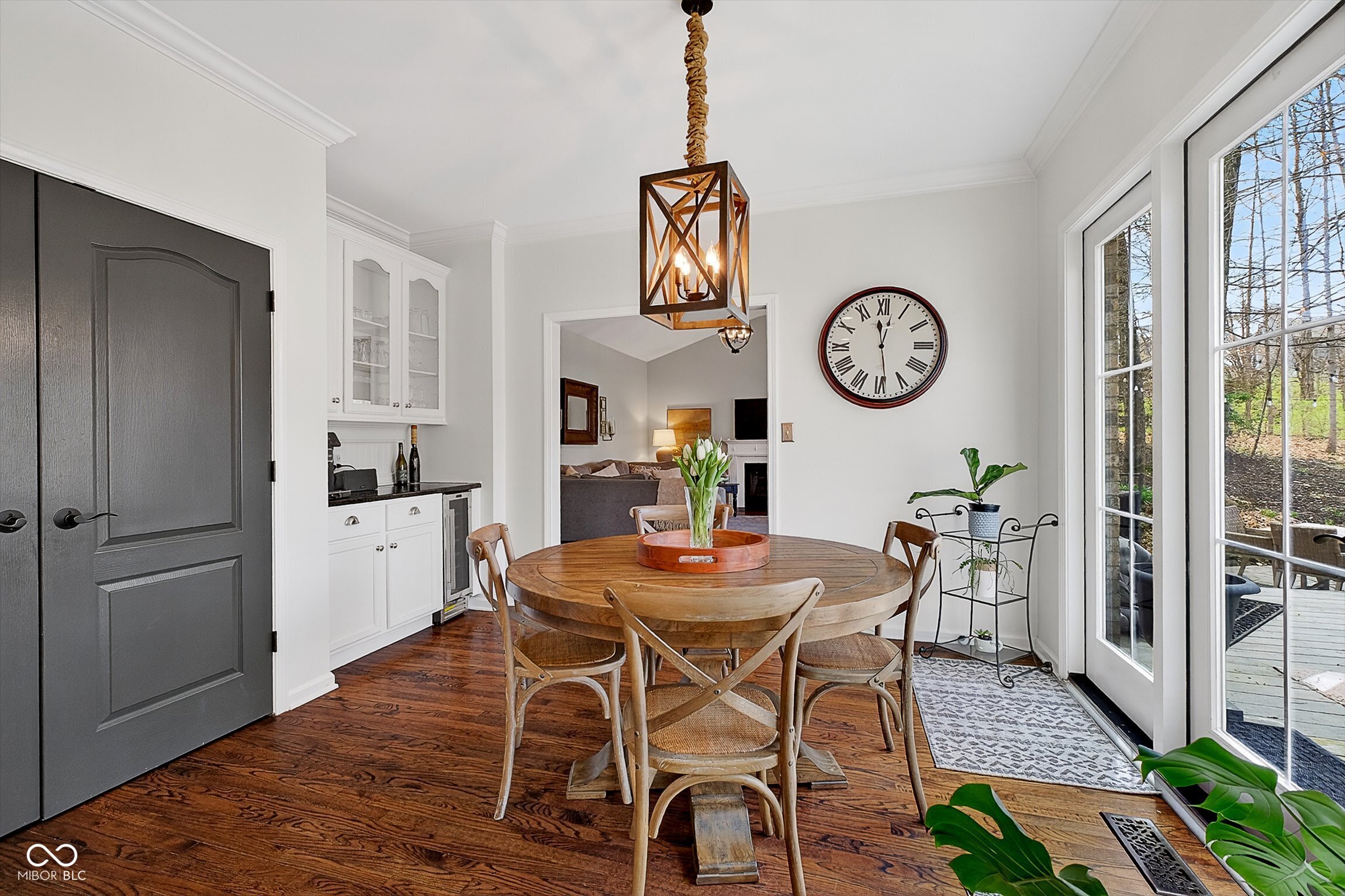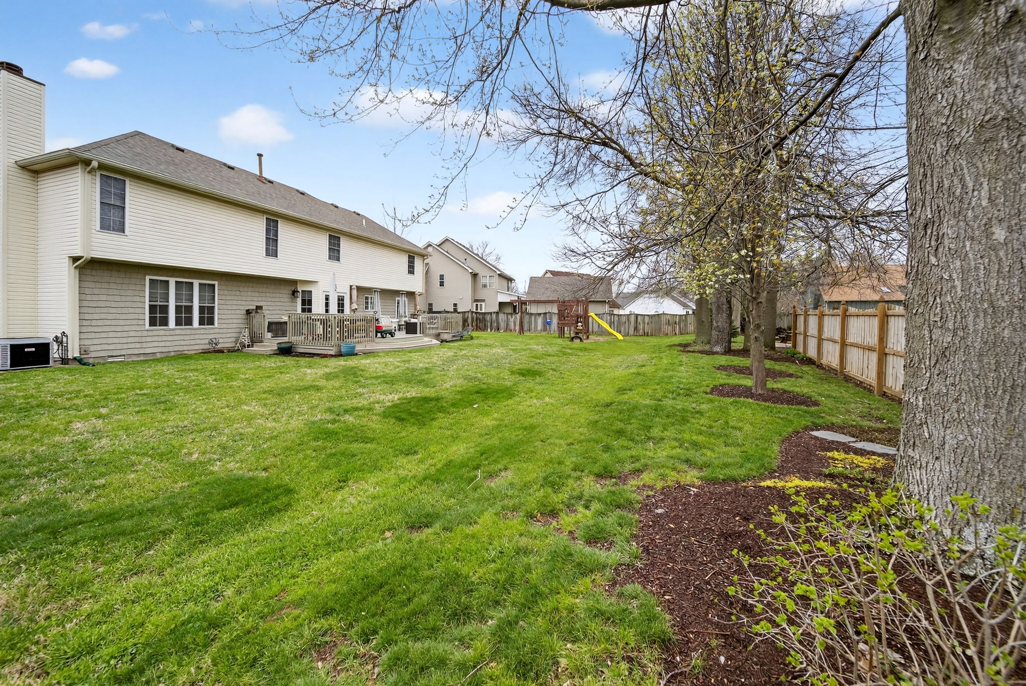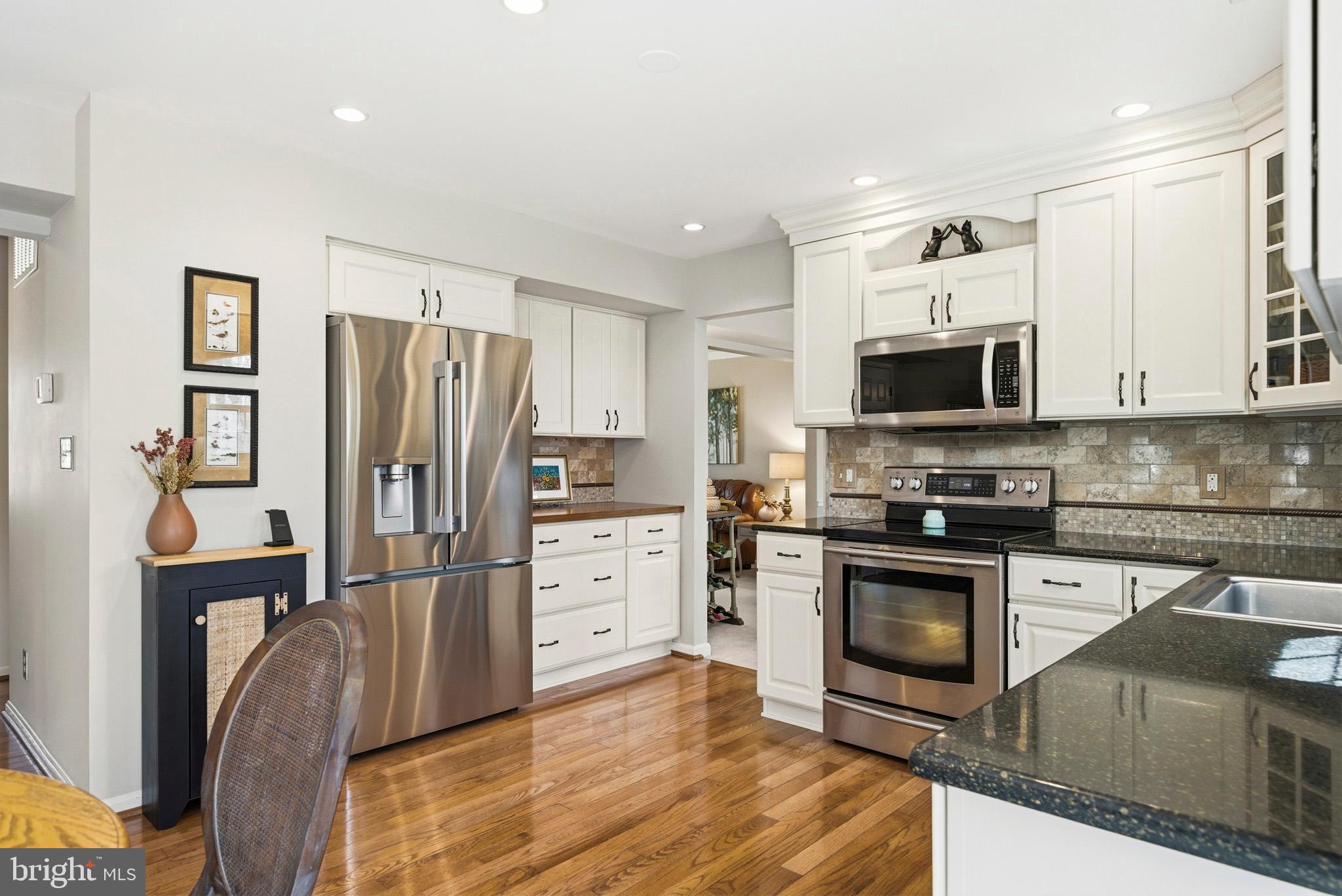 Timeless elegance meets modern comfort in this 4 bedroom, 3 1/2 bath home. You are greeted with elegant landscaping and stamped walkway that lead up to your stunning front door. A two-story foyer with hardwood stairs, black railing, and crown molding sets the tone, while the great room's cathedral ceiling and gas fireplace create a welcoming centerpiece. The formal living and dining rooms feature tray ceilings and custom moldings, perfect for entertaining. The kitchen is both stylish and functional, with white cabinetry, granite counters, stainless steel appliances, tile backsplash, a wood-topped island, pantry, and butler's pantry with wine fridge. A bright office with French doors, drop zone off the garage, and a large bonus room upstairs (ideal as a 5th bedroom) add versatility. The primary suite offers a cathedral ceiling, jetted garden tub, tiled shower, double sinks, recessed lighting, and a custom walk-in closet. Finished basement boasts a large family room, recreation area, wet bar, built-ins, surround sound, full bath, and ample storage. Outdoor spaces include a deck, stamped concrete patio, and serene wooded backyard.