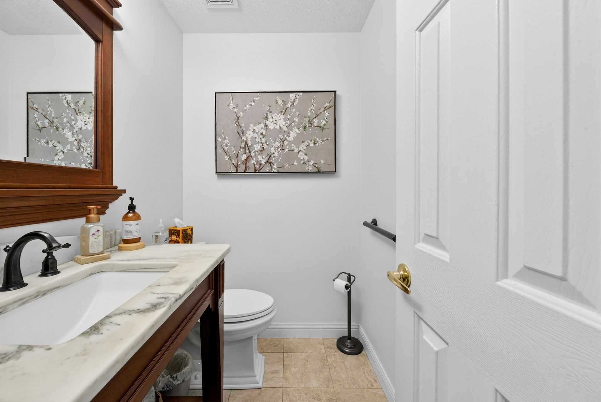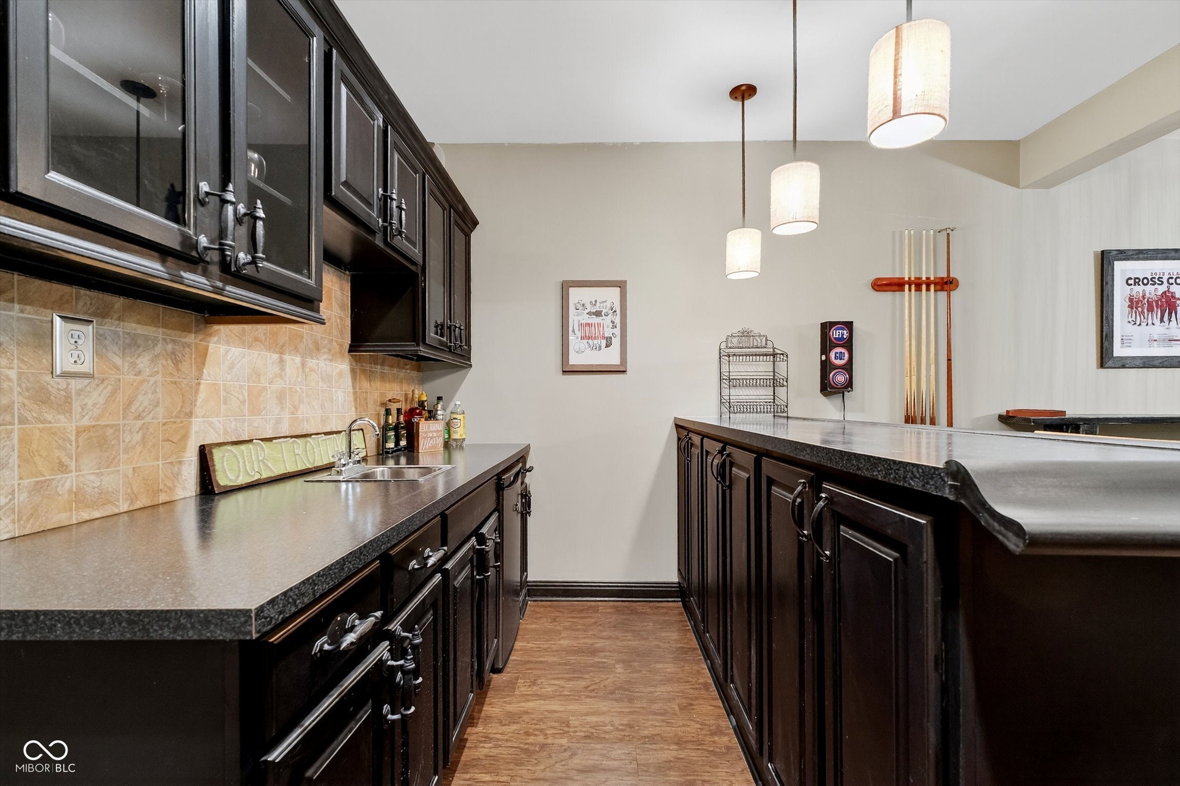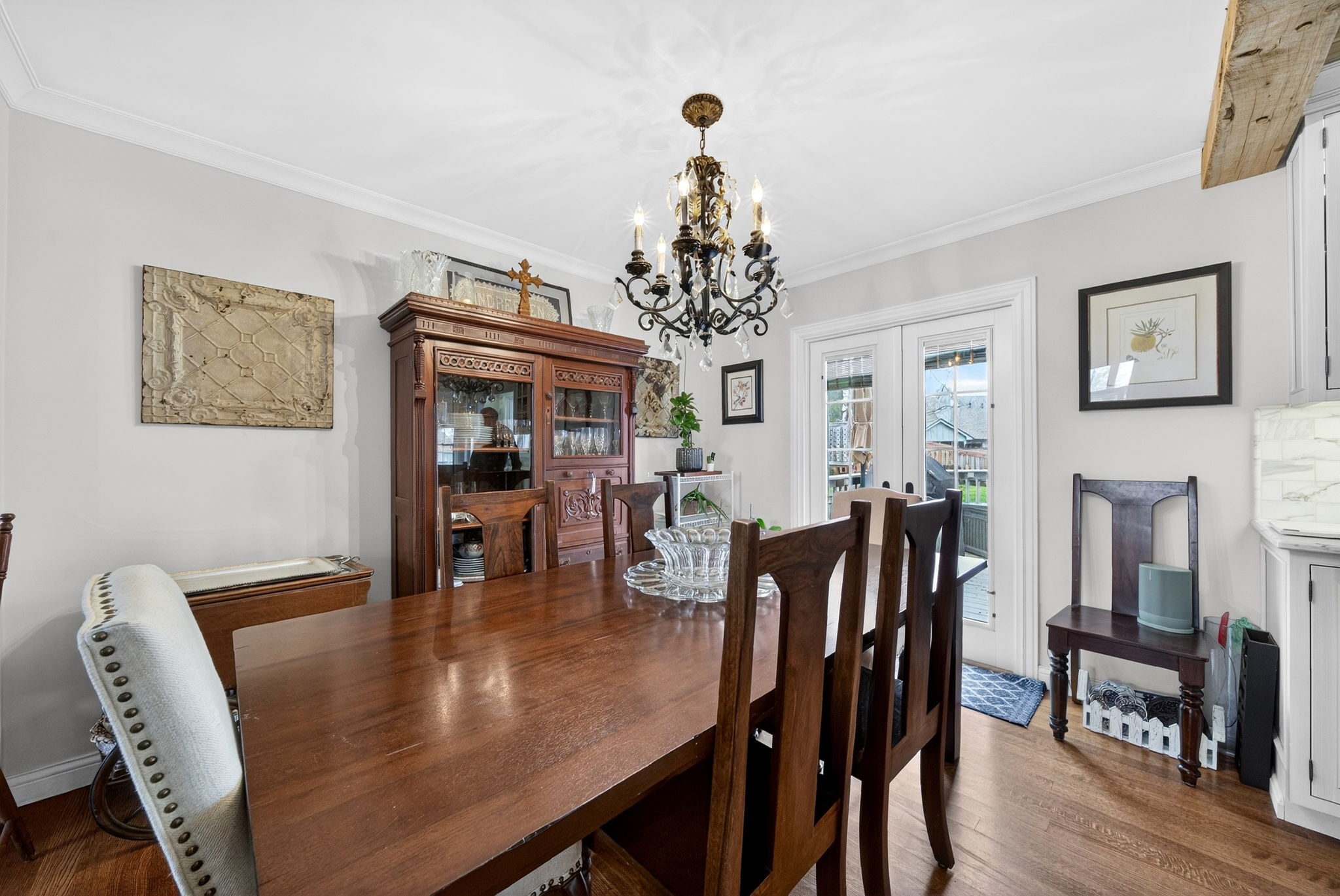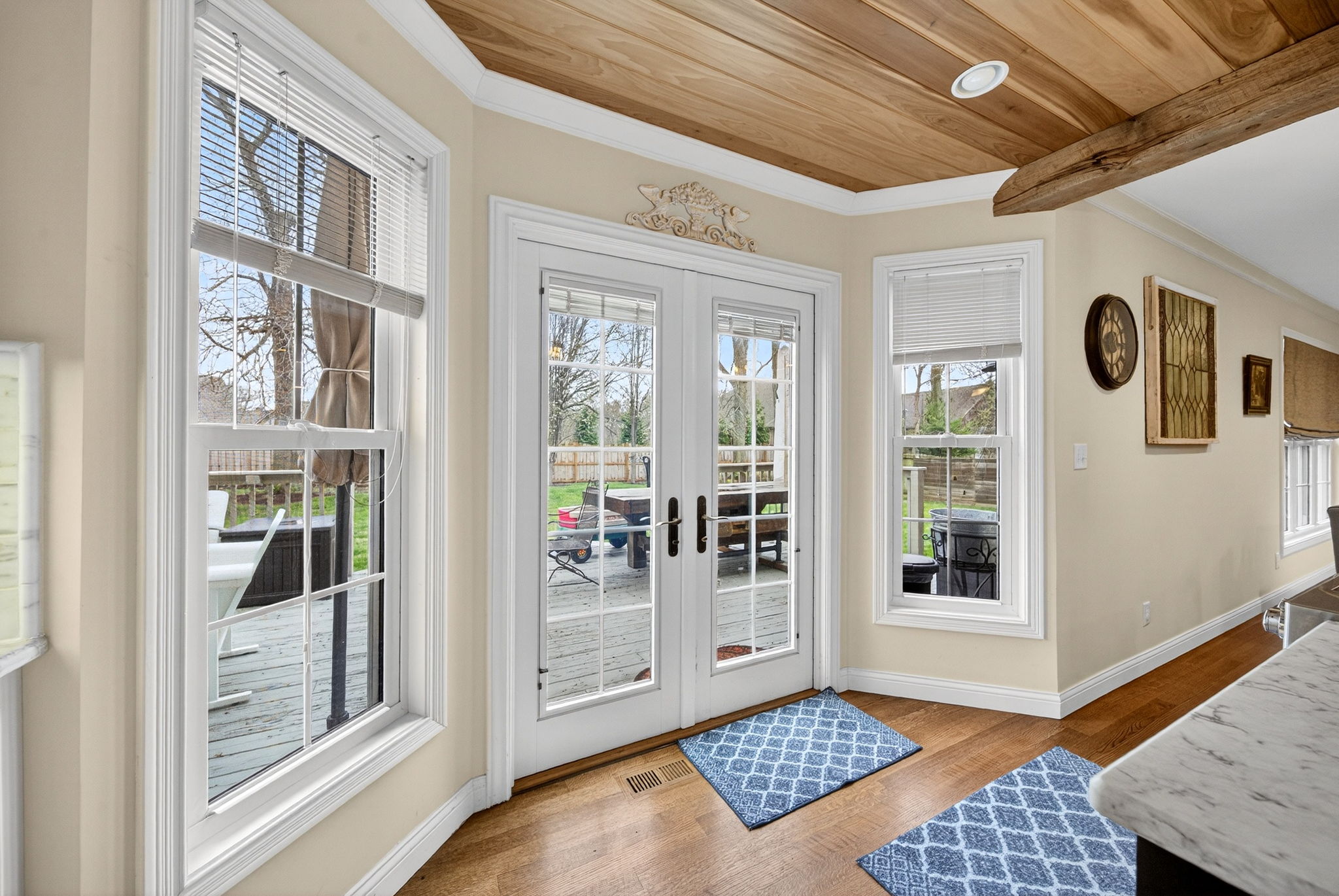 Timeless elegance meets modern comfort in this 4 bedroom, 3 1/2 bath home. You are greeted with elegant landscaping and stamped walkway that lead up to your stunning front door. A two-story foyer with hardwood stairs, black railing, and crown molding sets the tone, while the great room's cathedral ceiling and gas fireplace create a welcoming centerpiece. The formal living and dining rooms feature tray ceilings and custom moldings, perfect for entertaining. The kitchen is both stylish and functional, with white cabinetry, granite counters, stainless steel appliances, tile backsplash, a wood-topped island, pantry, and butler's pantry with wine fridge. A bright office with French doors, drop zone off the garage, and a large bonus room upstairs (ideal as a 5th bedroom) add versatility. The primary suite offers a cathedral ceiling, jetted garden tub, tiled shower, double sinks, recessed lighting, and a custom walk-in closet. Finished basement boasts a large family room, recreation area, wet bar, built-ins, surround sound, full bath, and ample storage. Outdoor spaces include a deck, stamped concrete patio, and serene wooded backyard.